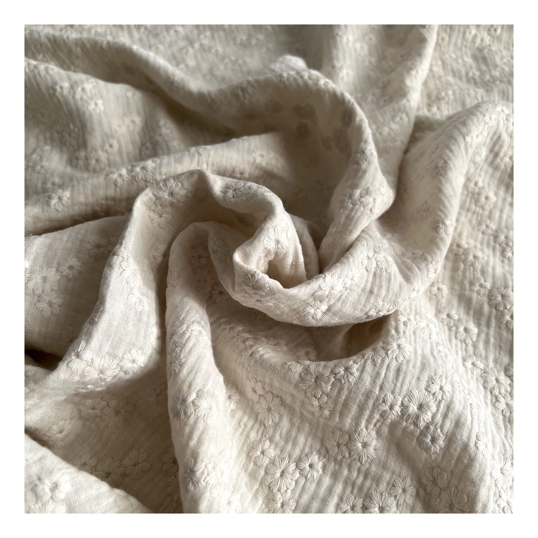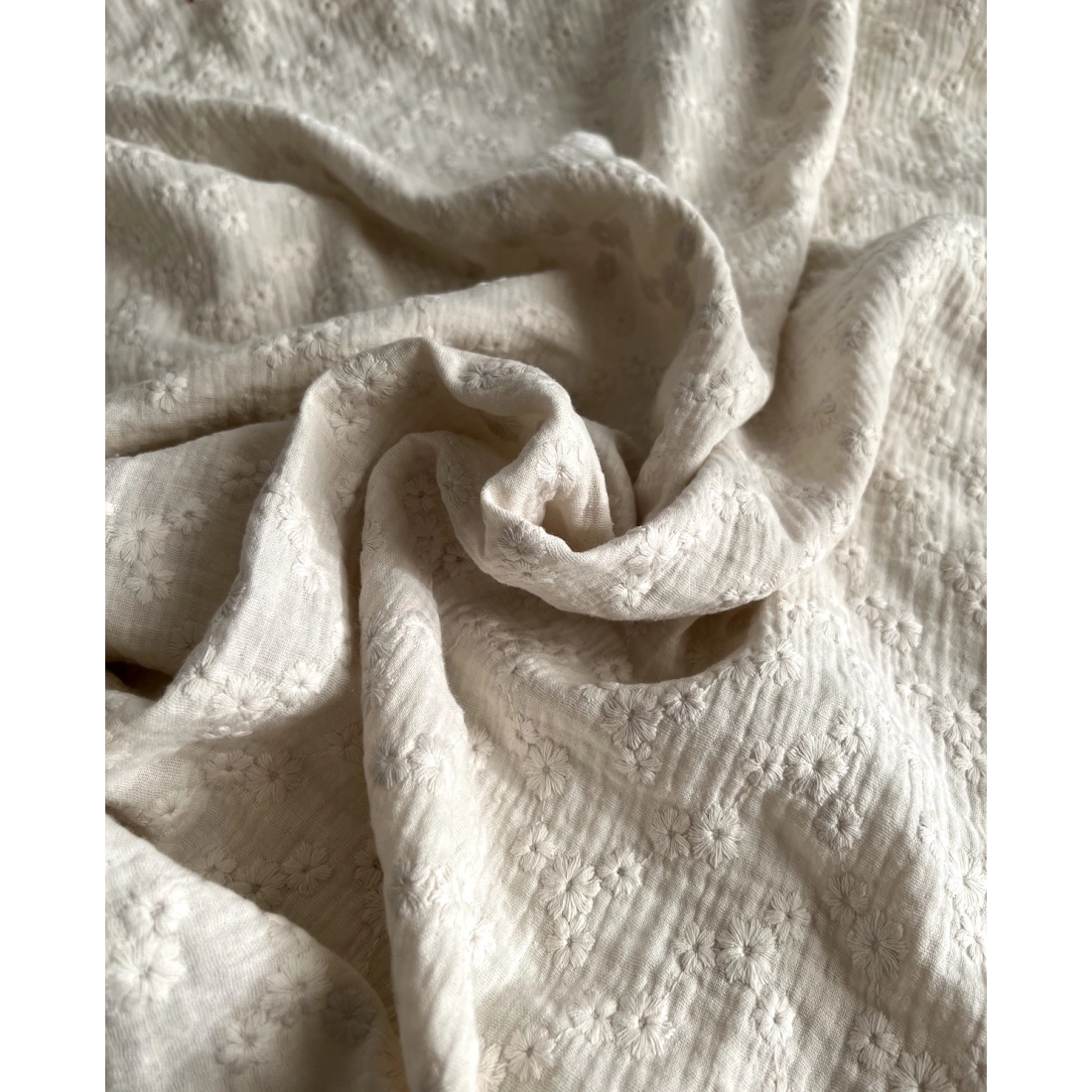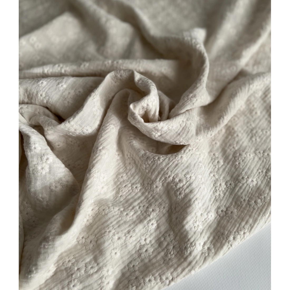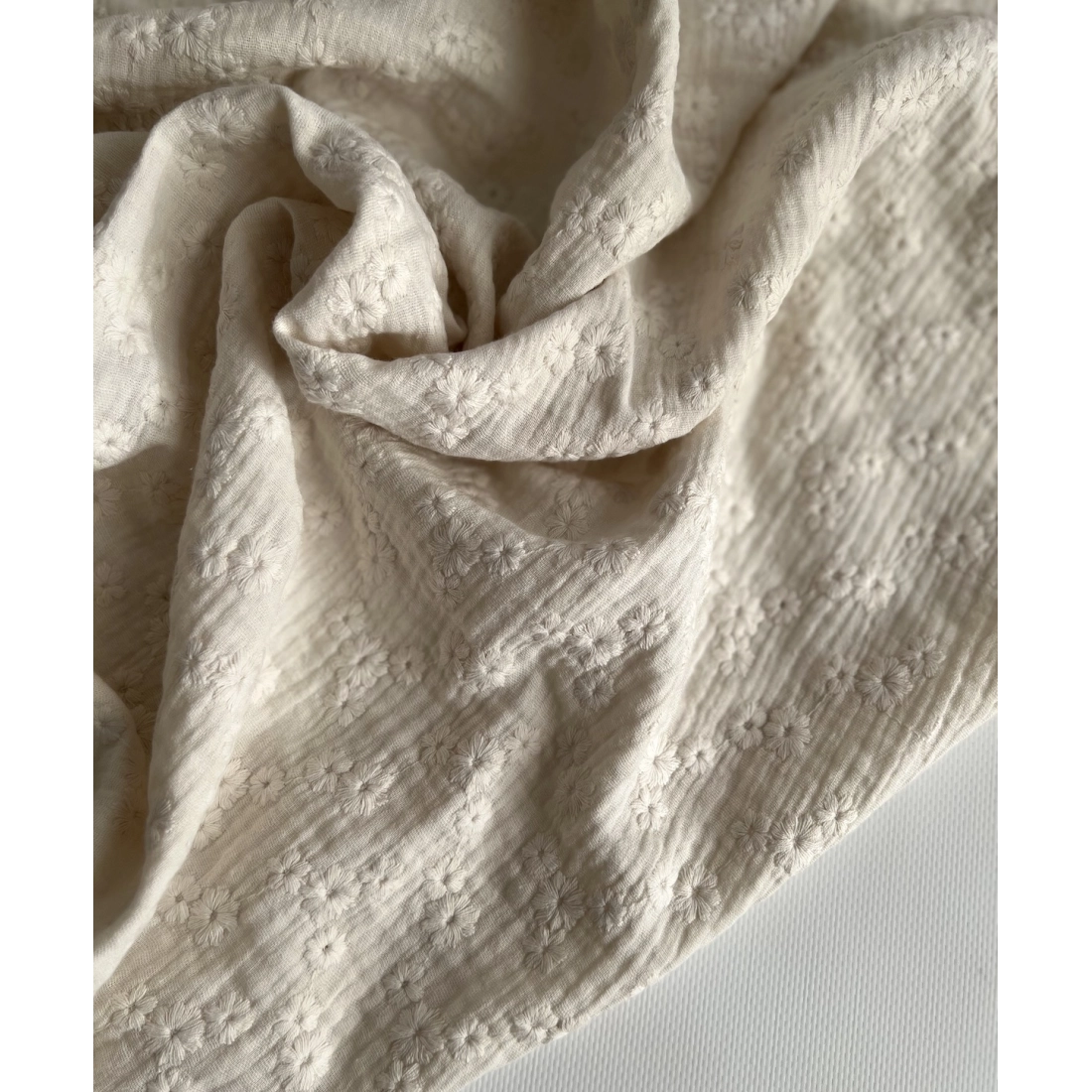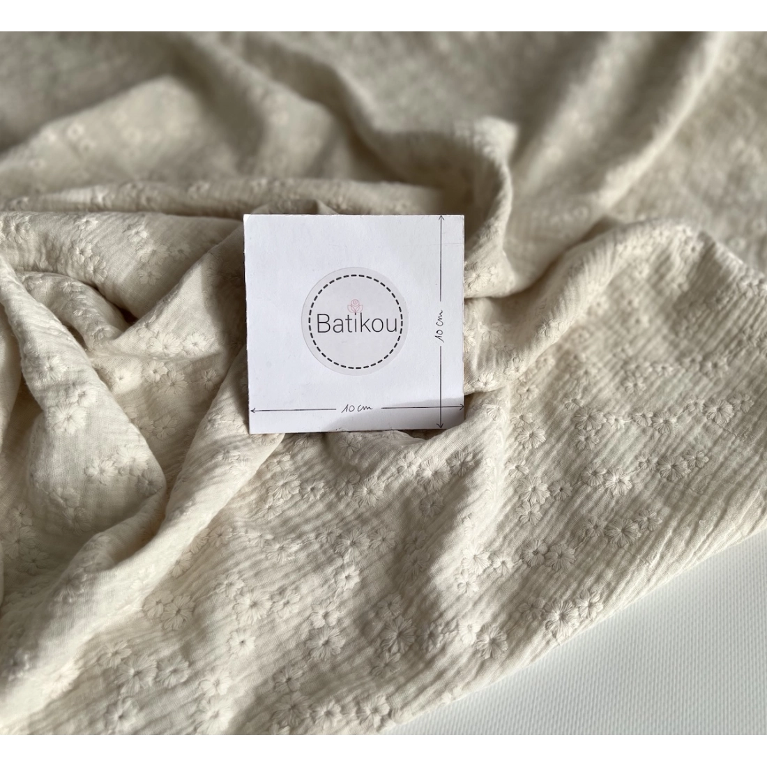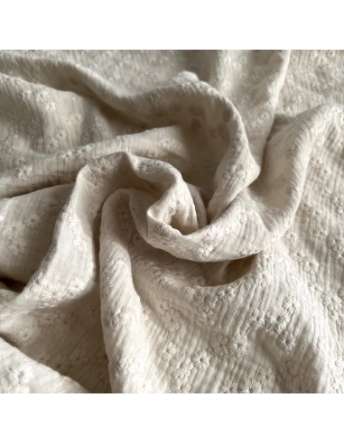 Double gaze de coton brodée ton sur ton vendue à la coupe