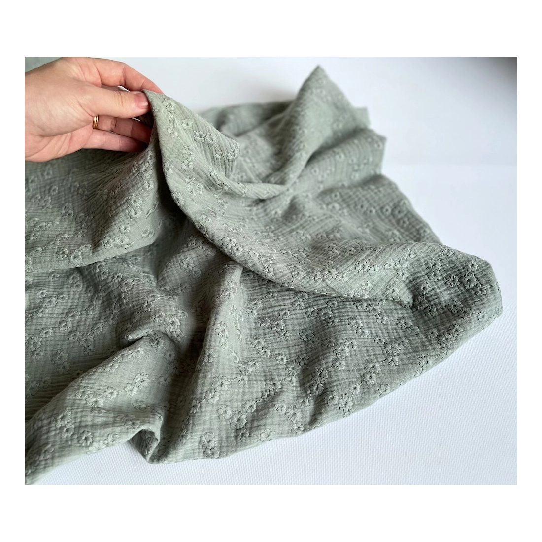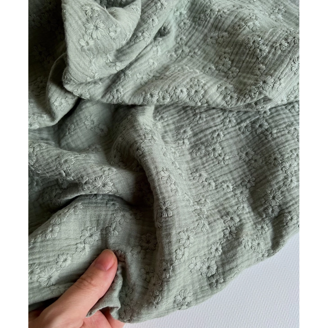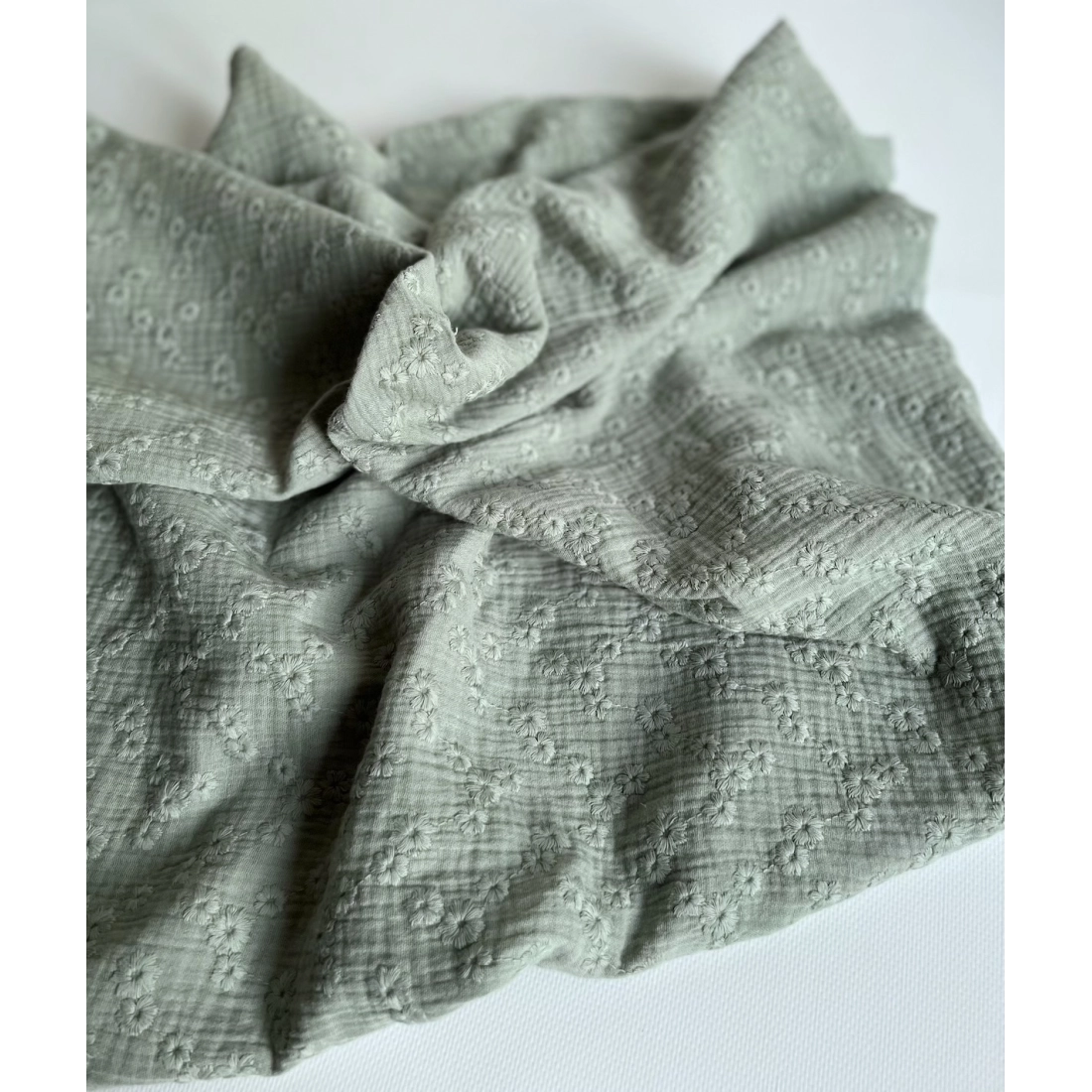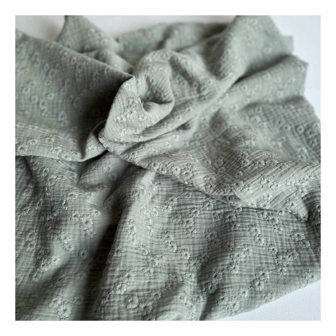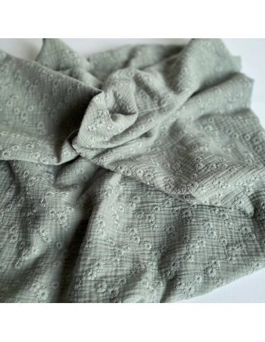 Double gaze de coton Esmée brodée coloris vert de gris