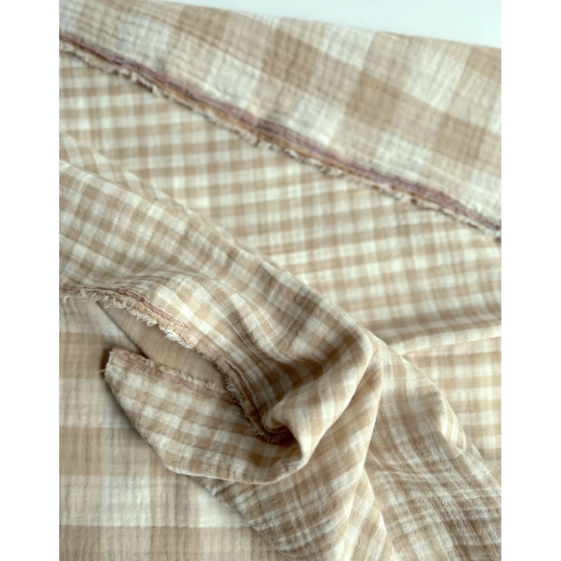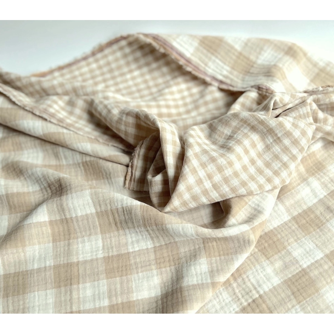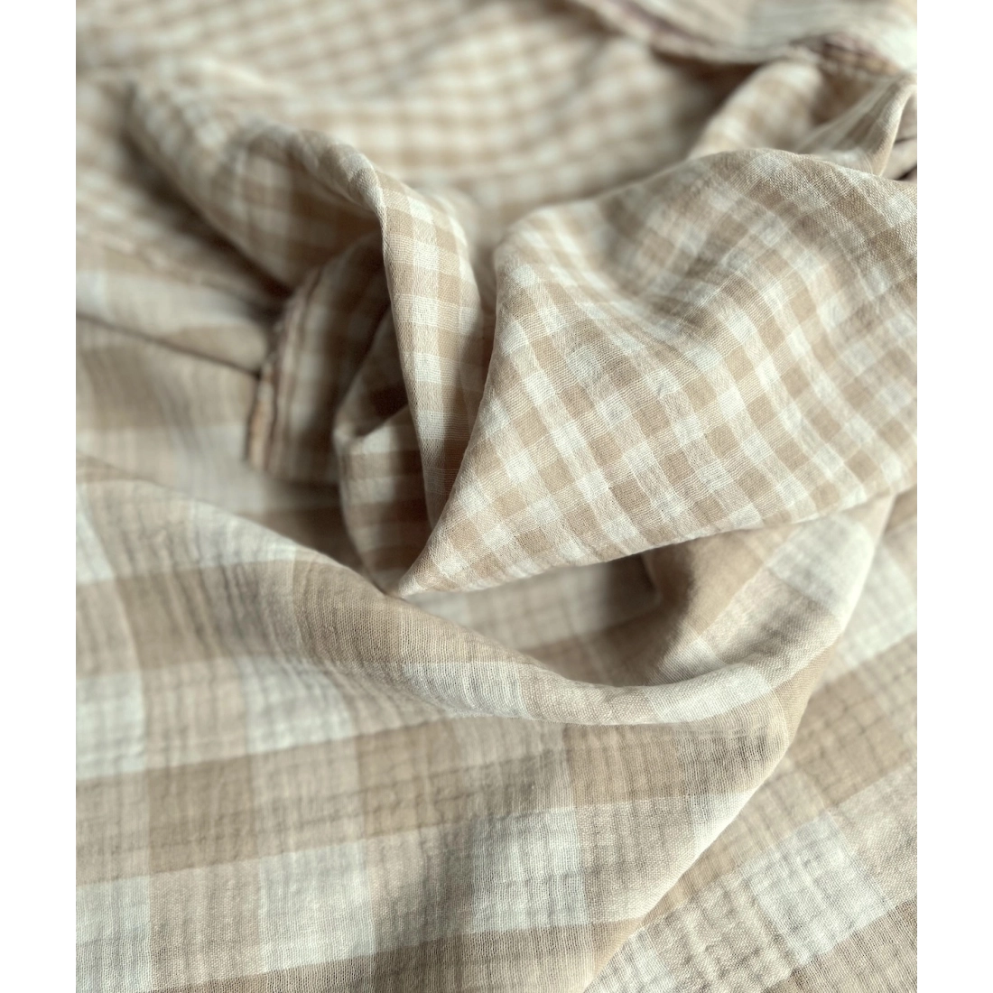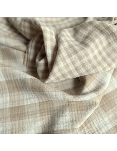 Double gaze de coton vichy réversible écru / sable