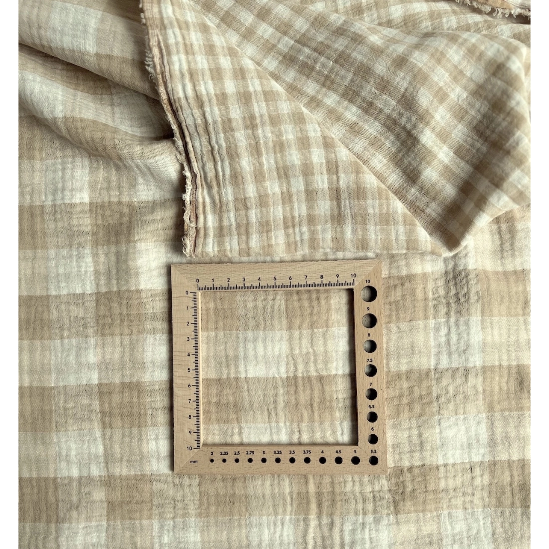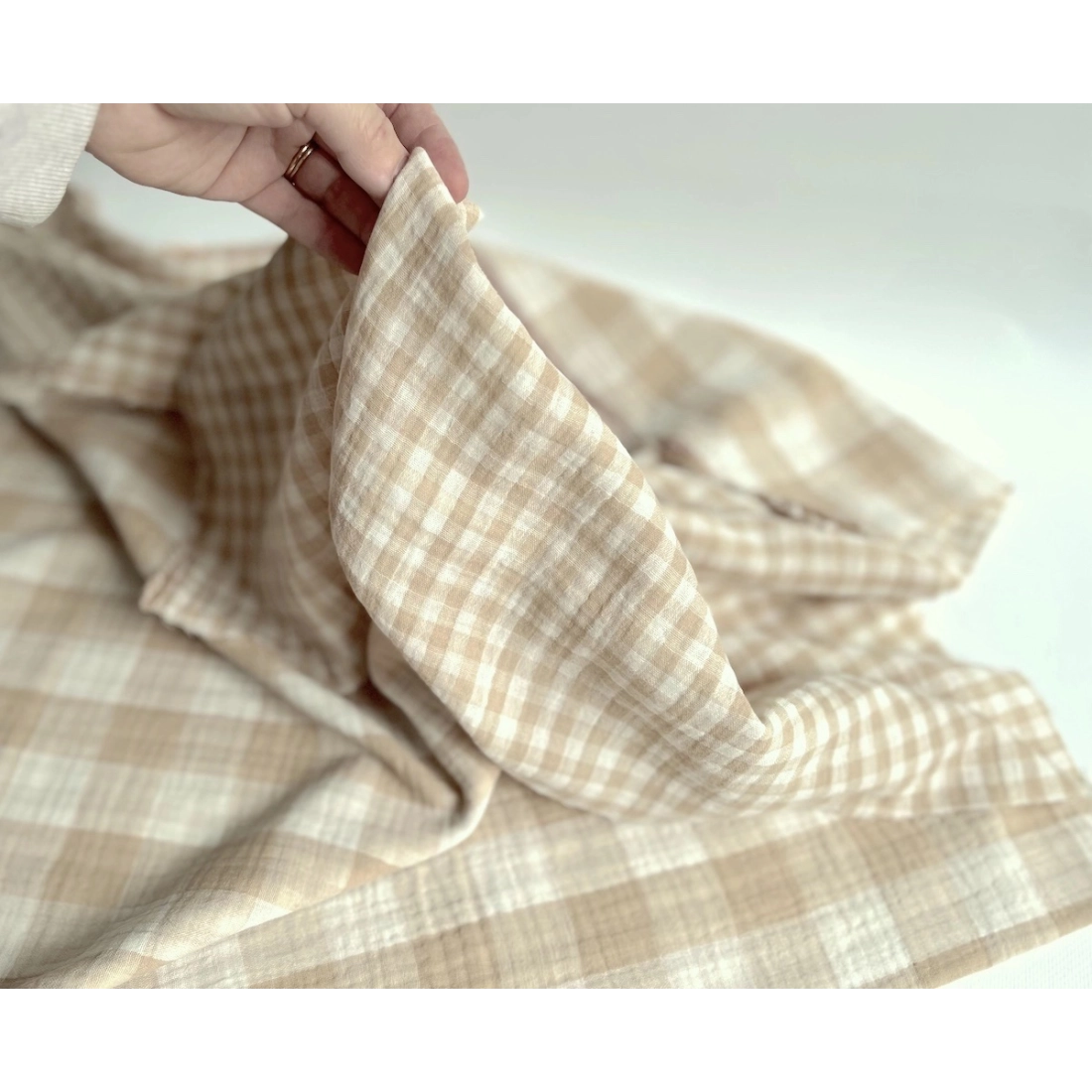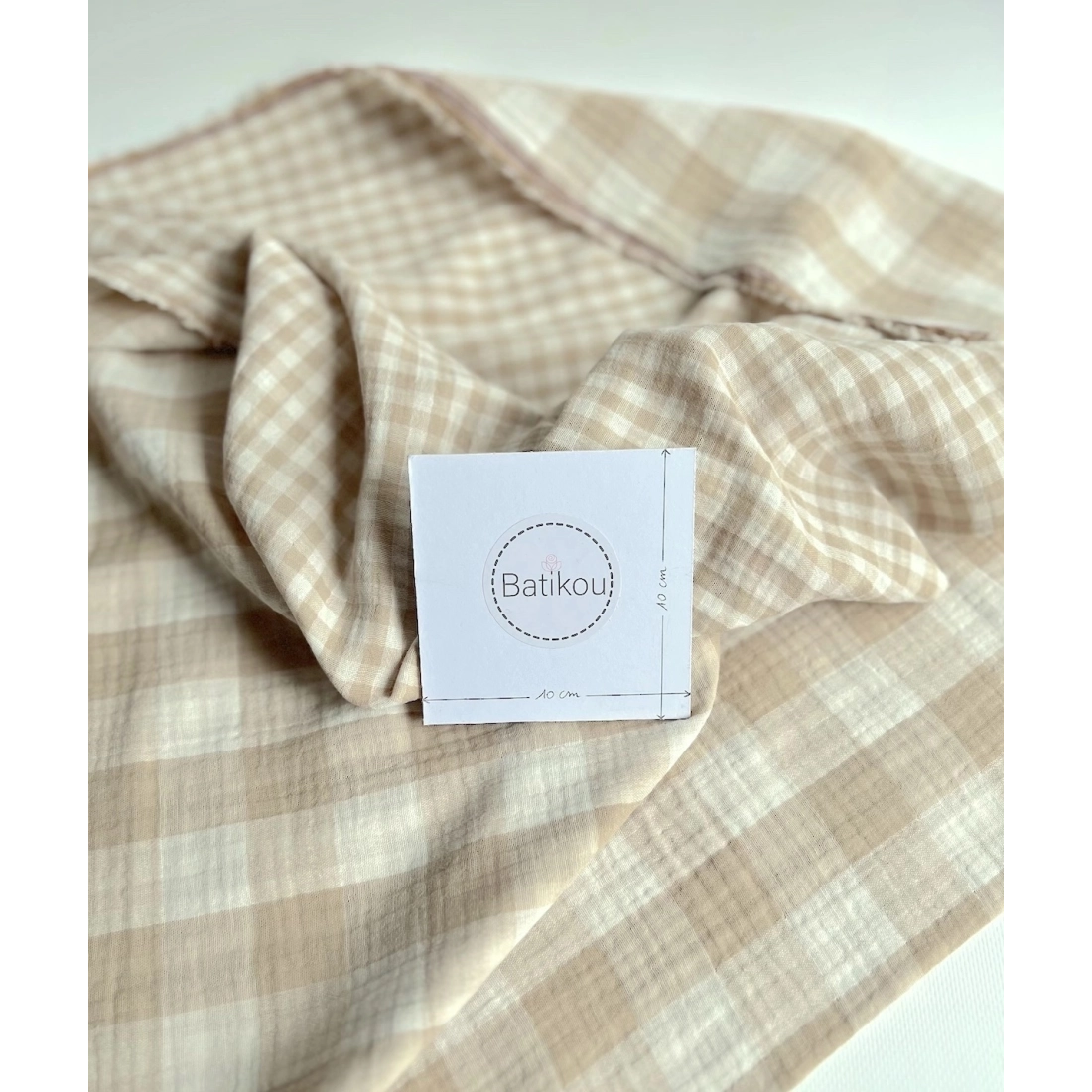 Double gaze de coton vichy réversible écru / sable