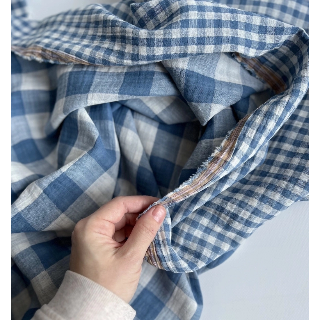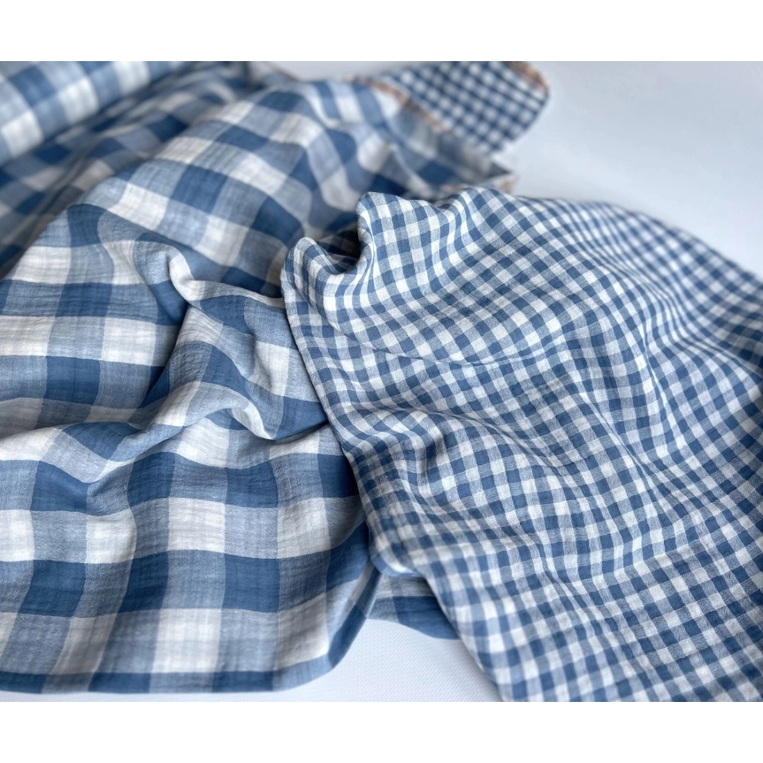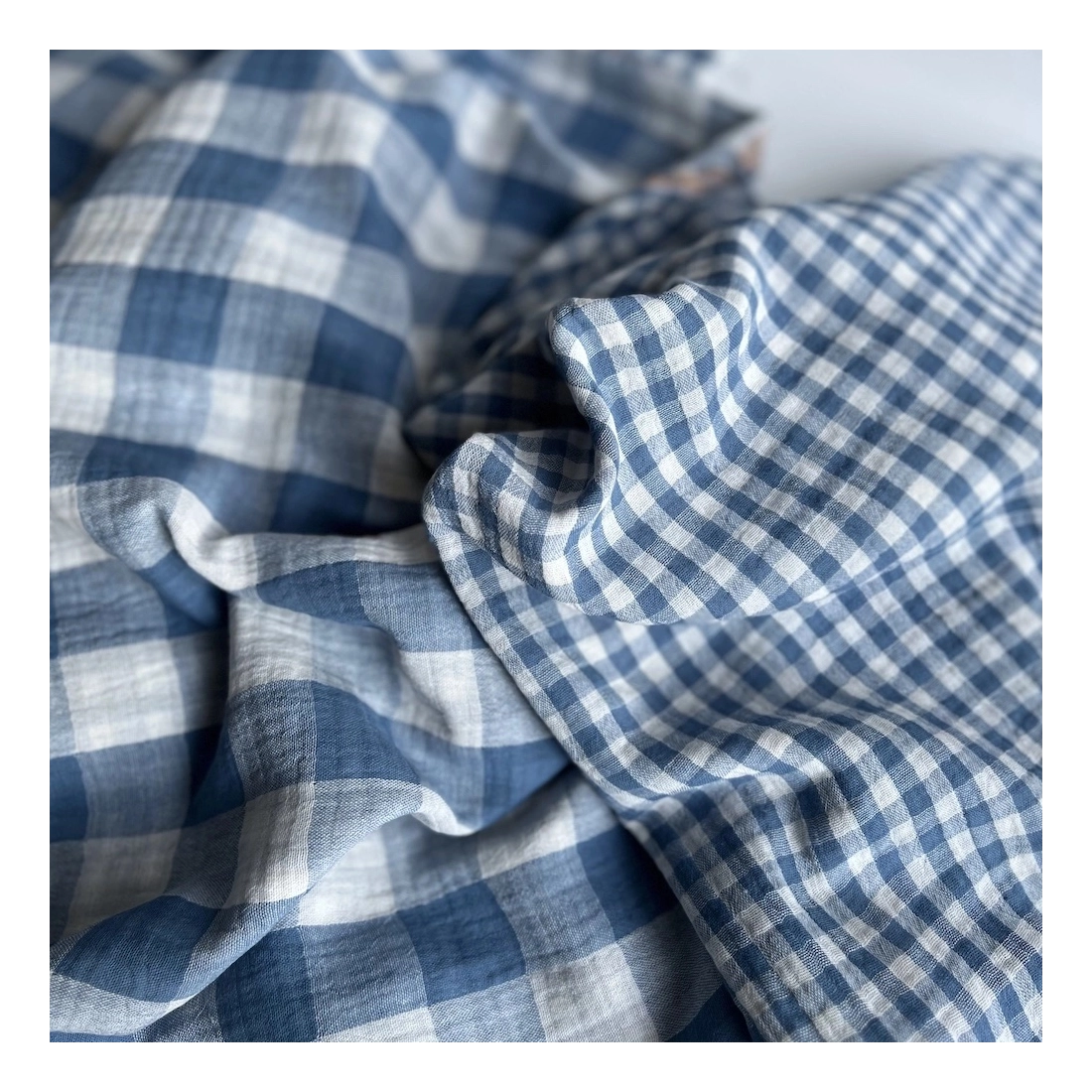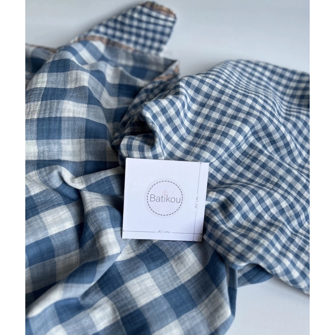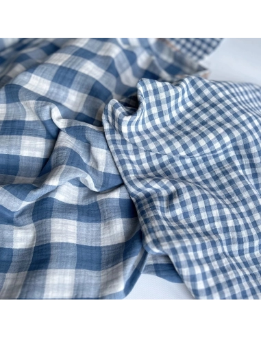 Double gaze de coton vichy réversible Bleu jean / blanc