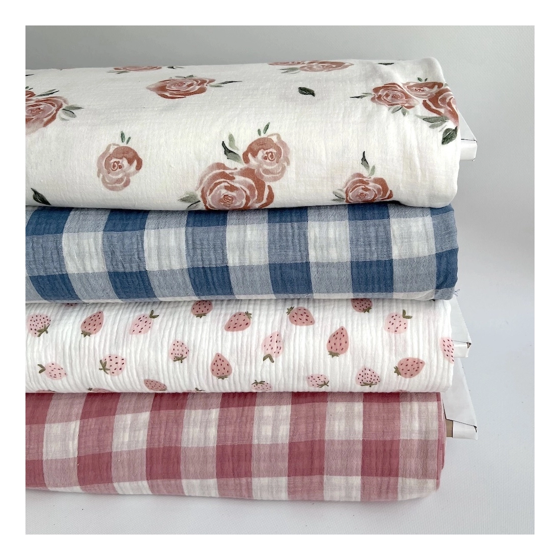 Double gaze de coton imprimée vendue à la coupe