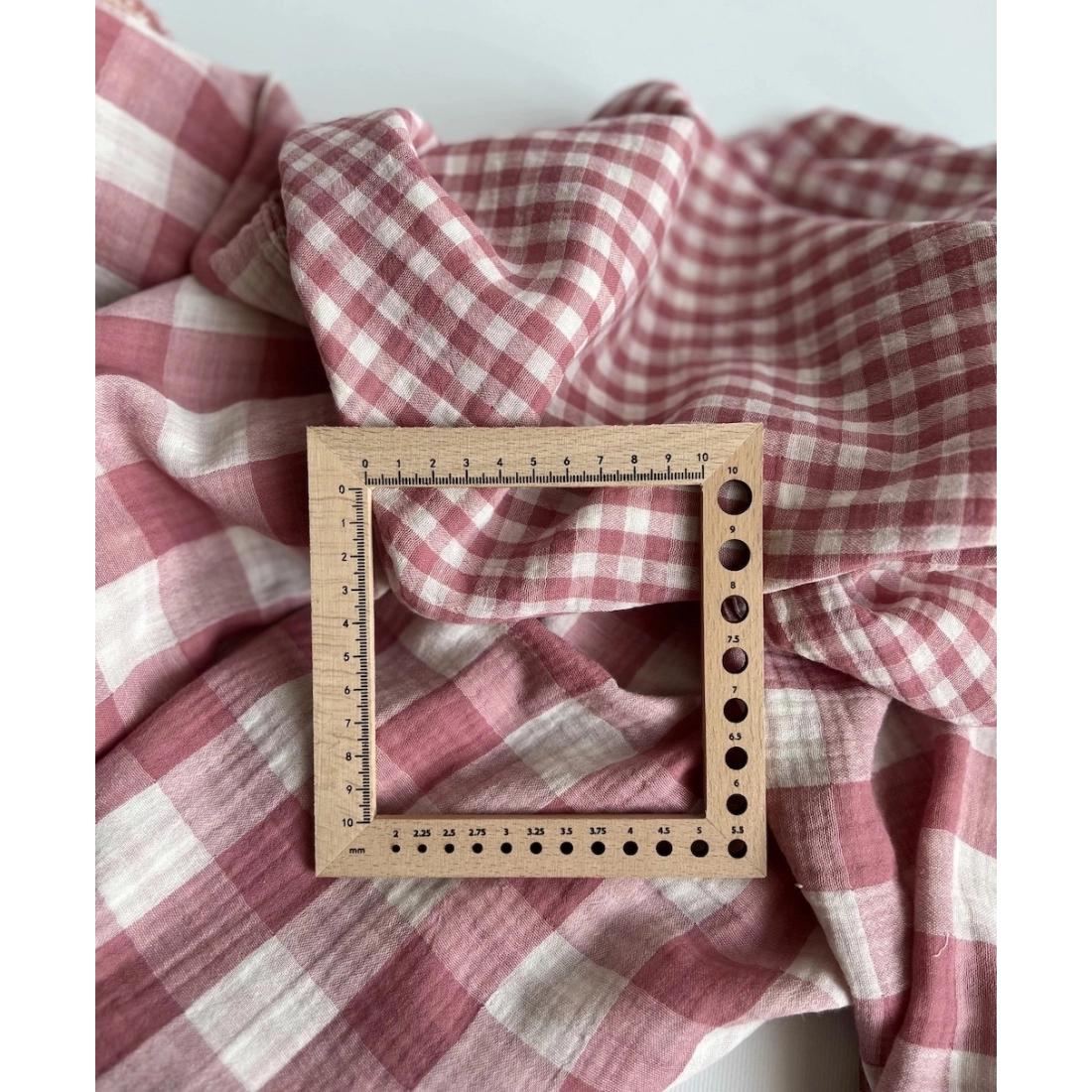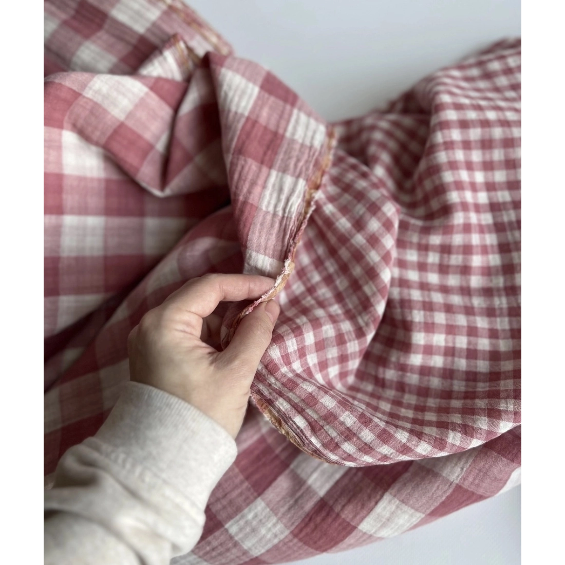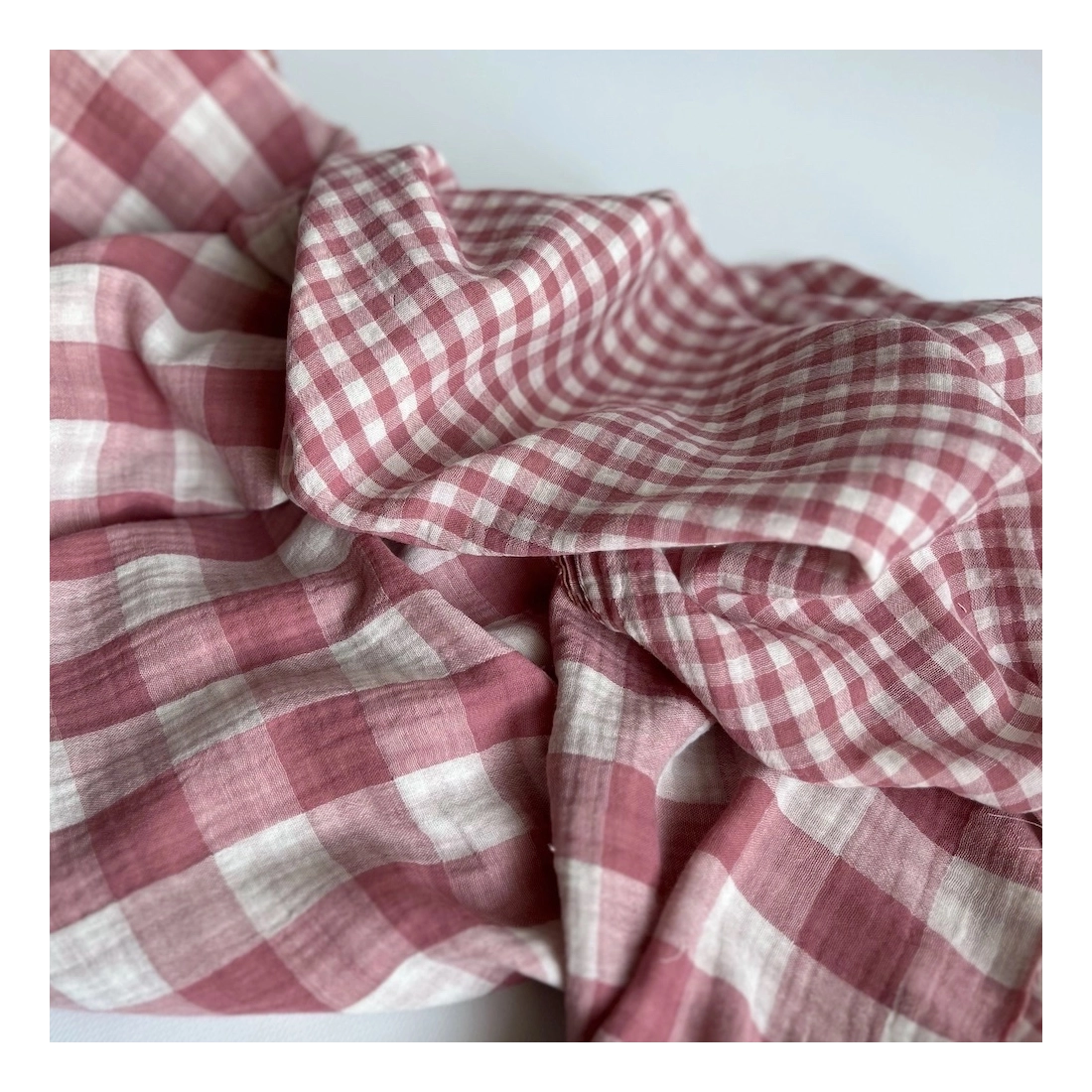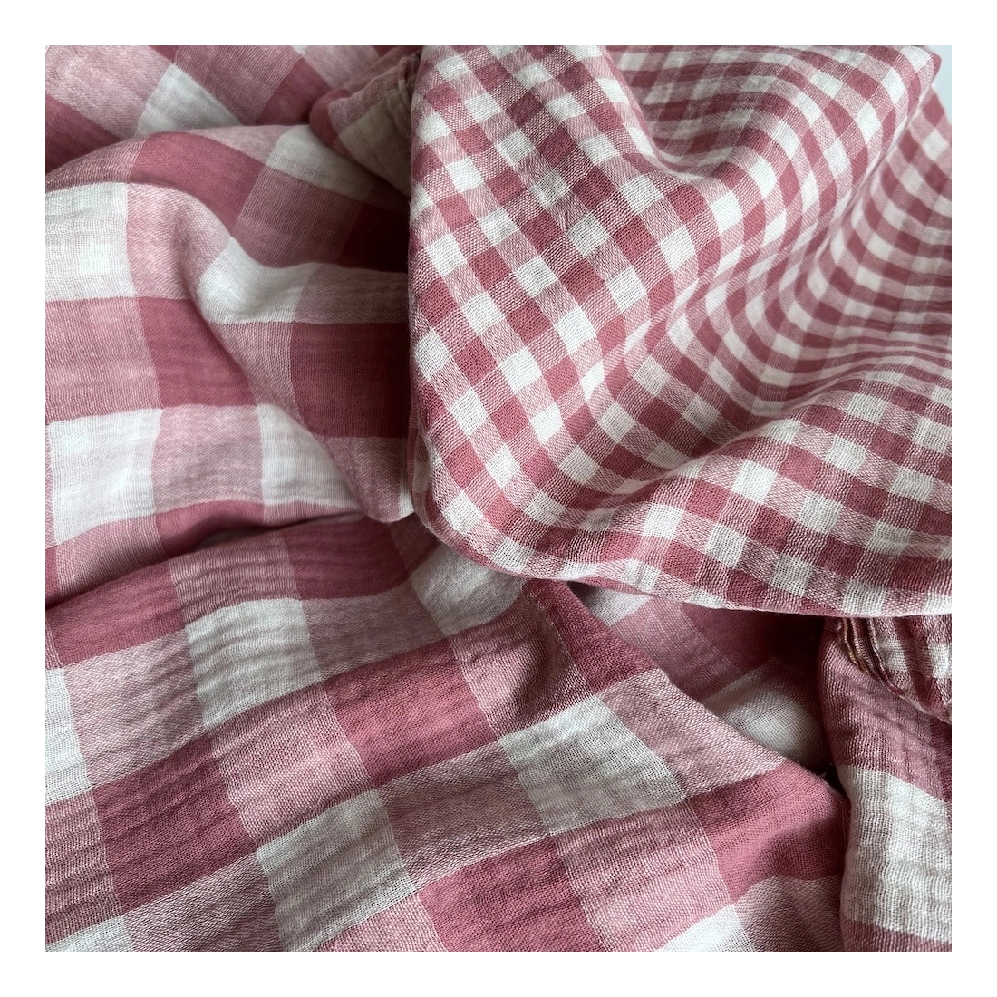 Double gaze de coton vichy réversible framboise / blanc