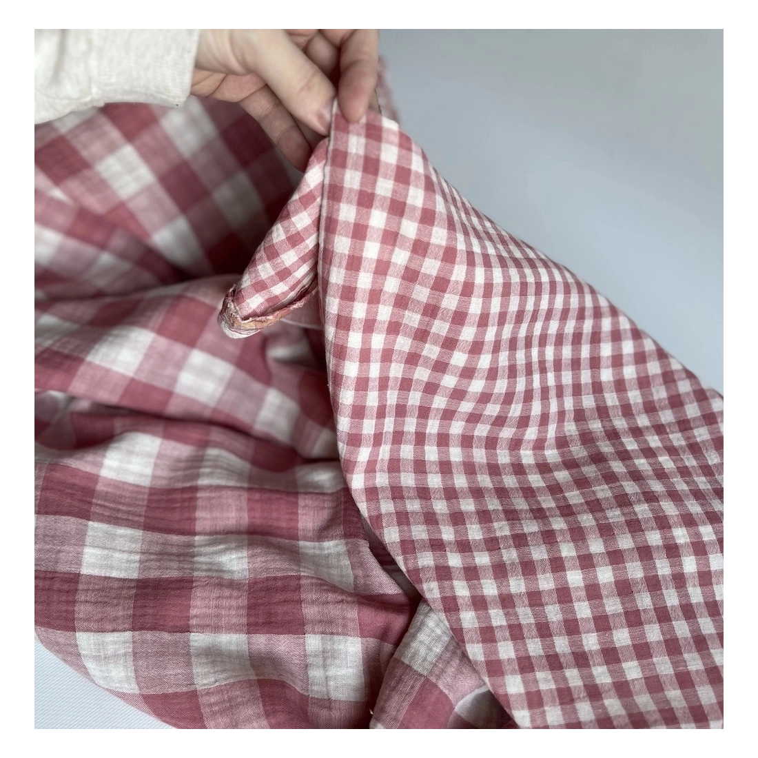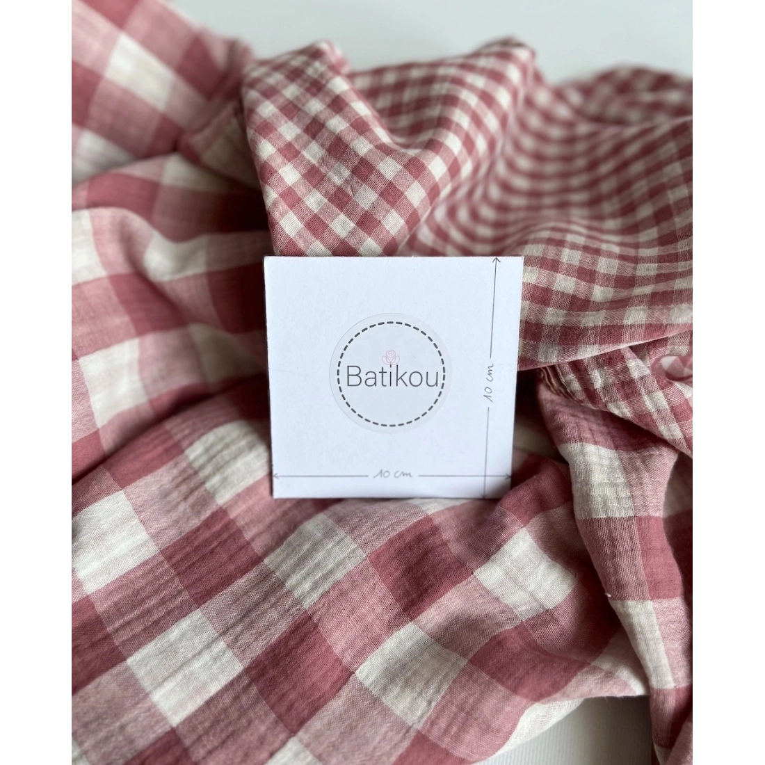 Double gaze de coton vichy réversible blanc / bourgogne
