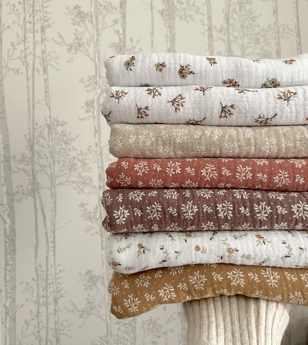 Madeleine - Double gaze de coton fond écru motif fleuri