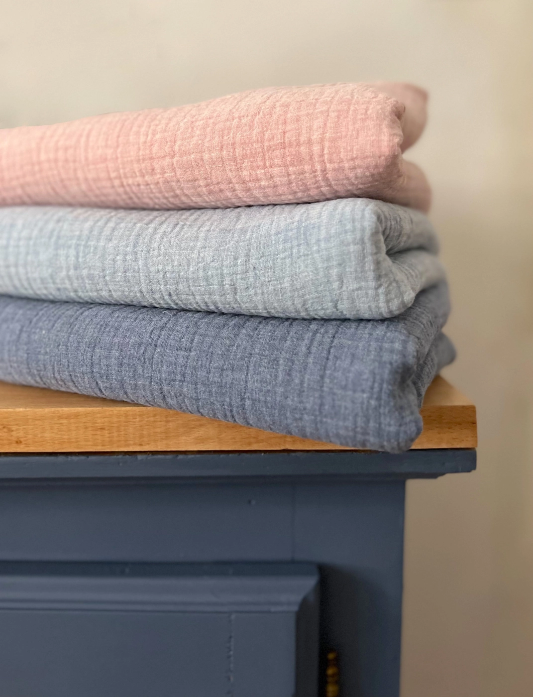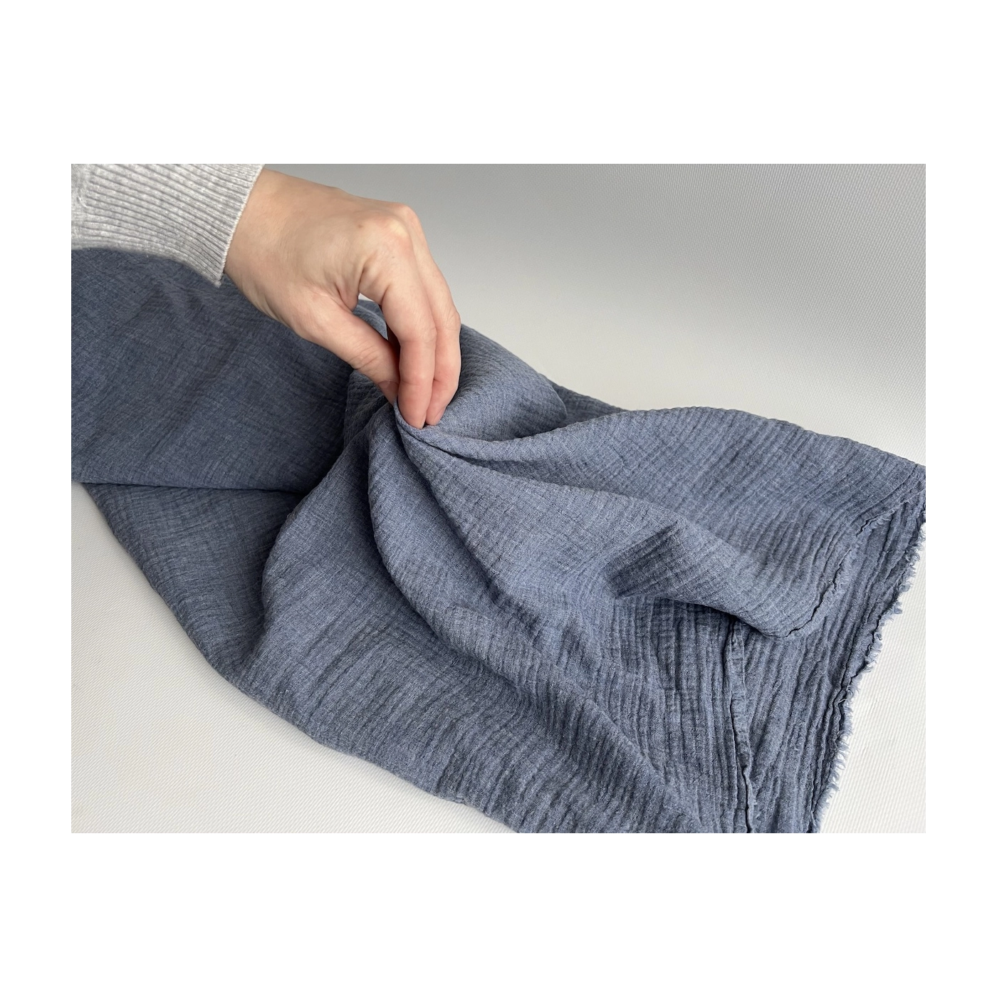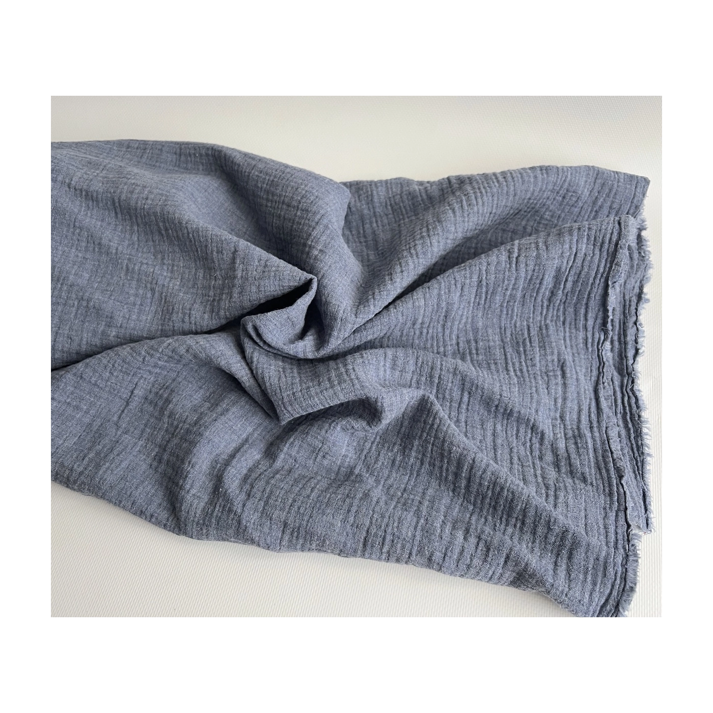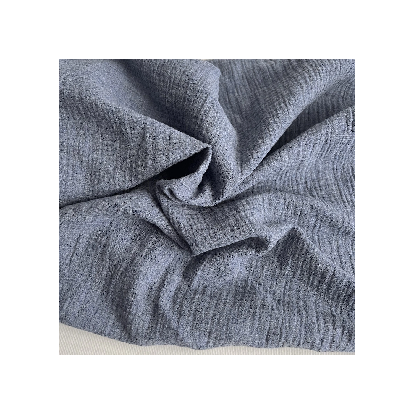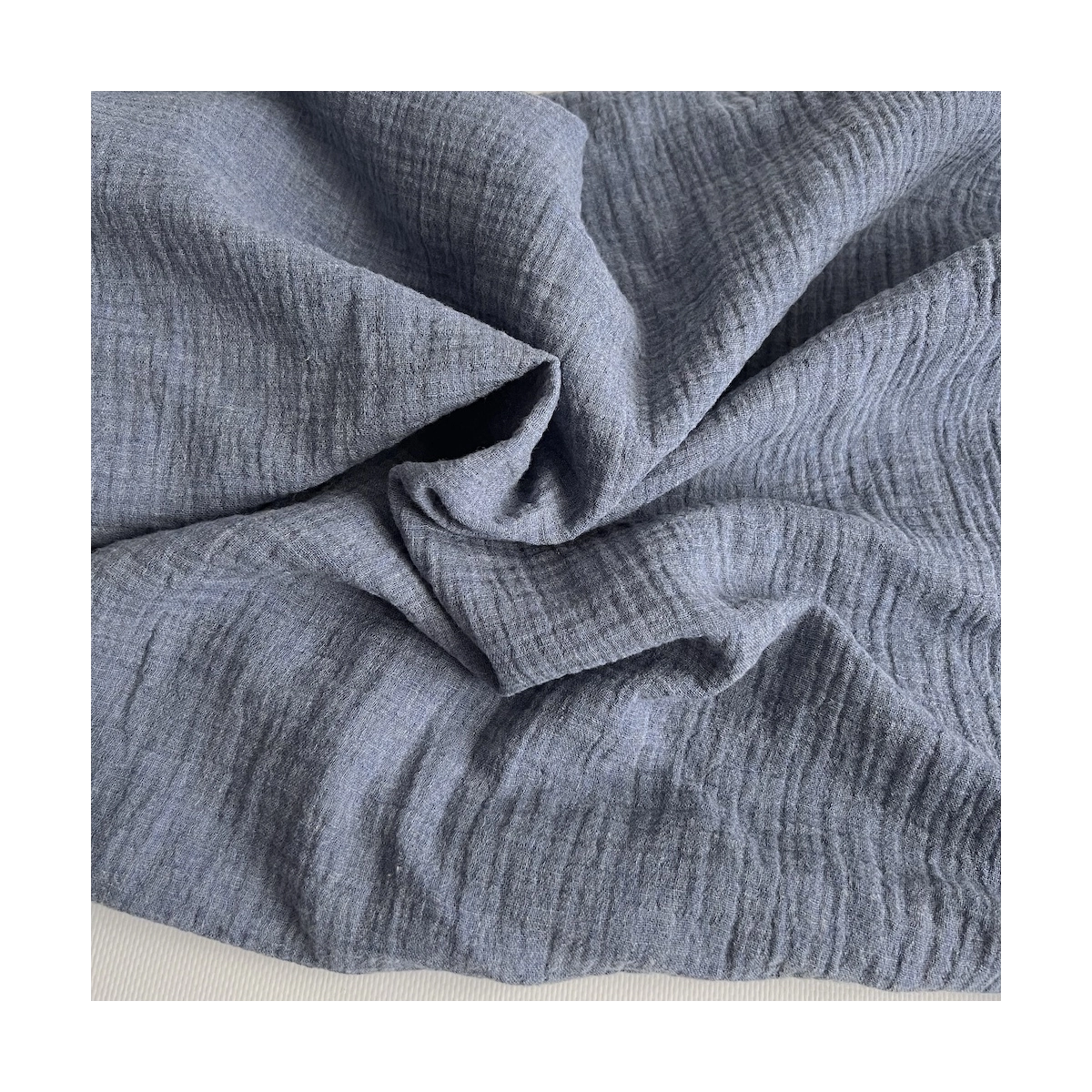 Double gaze de coton BIO chiné coloris bleu denim