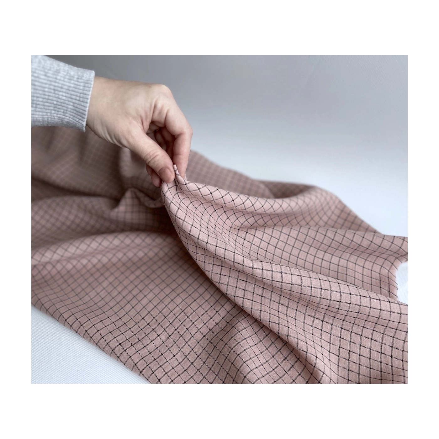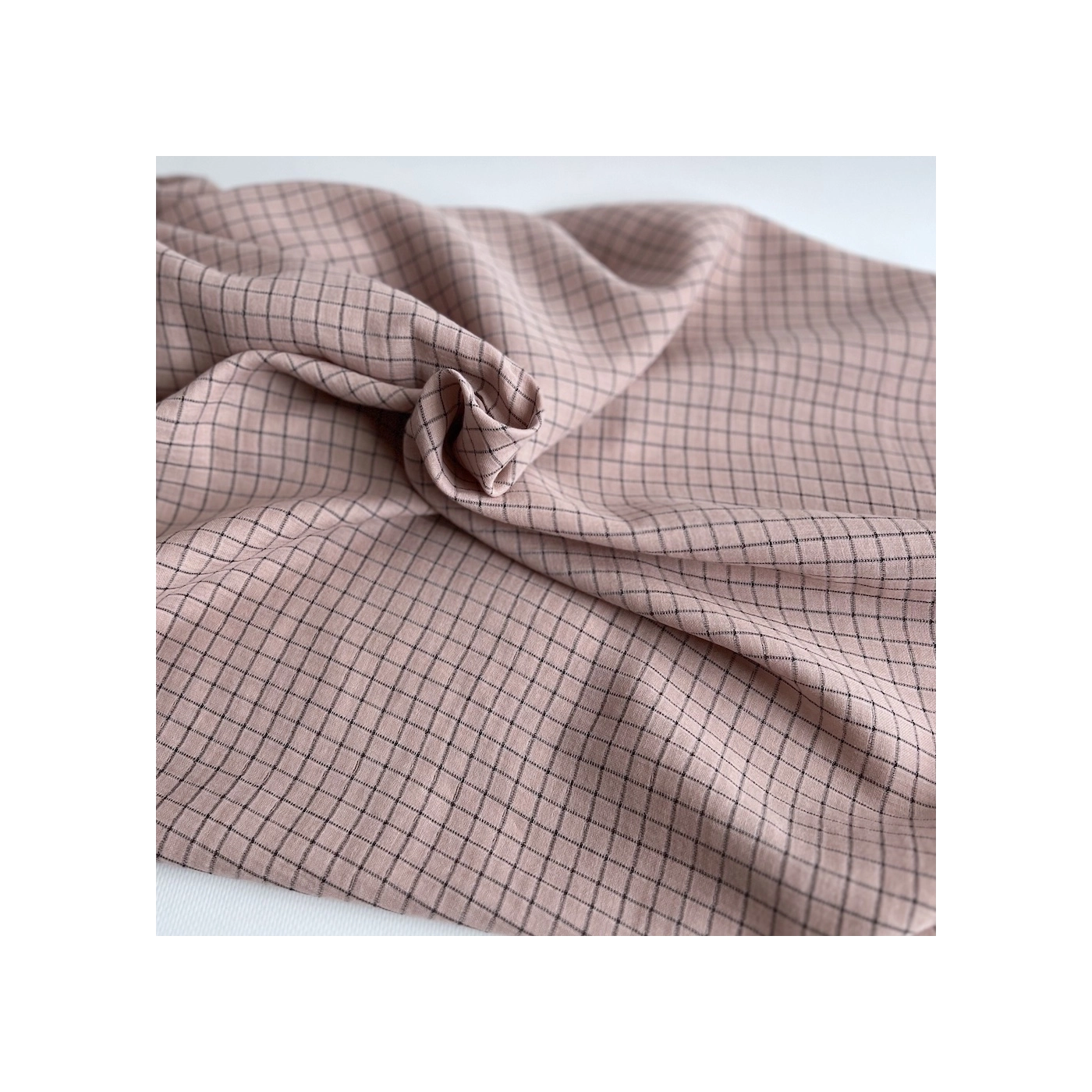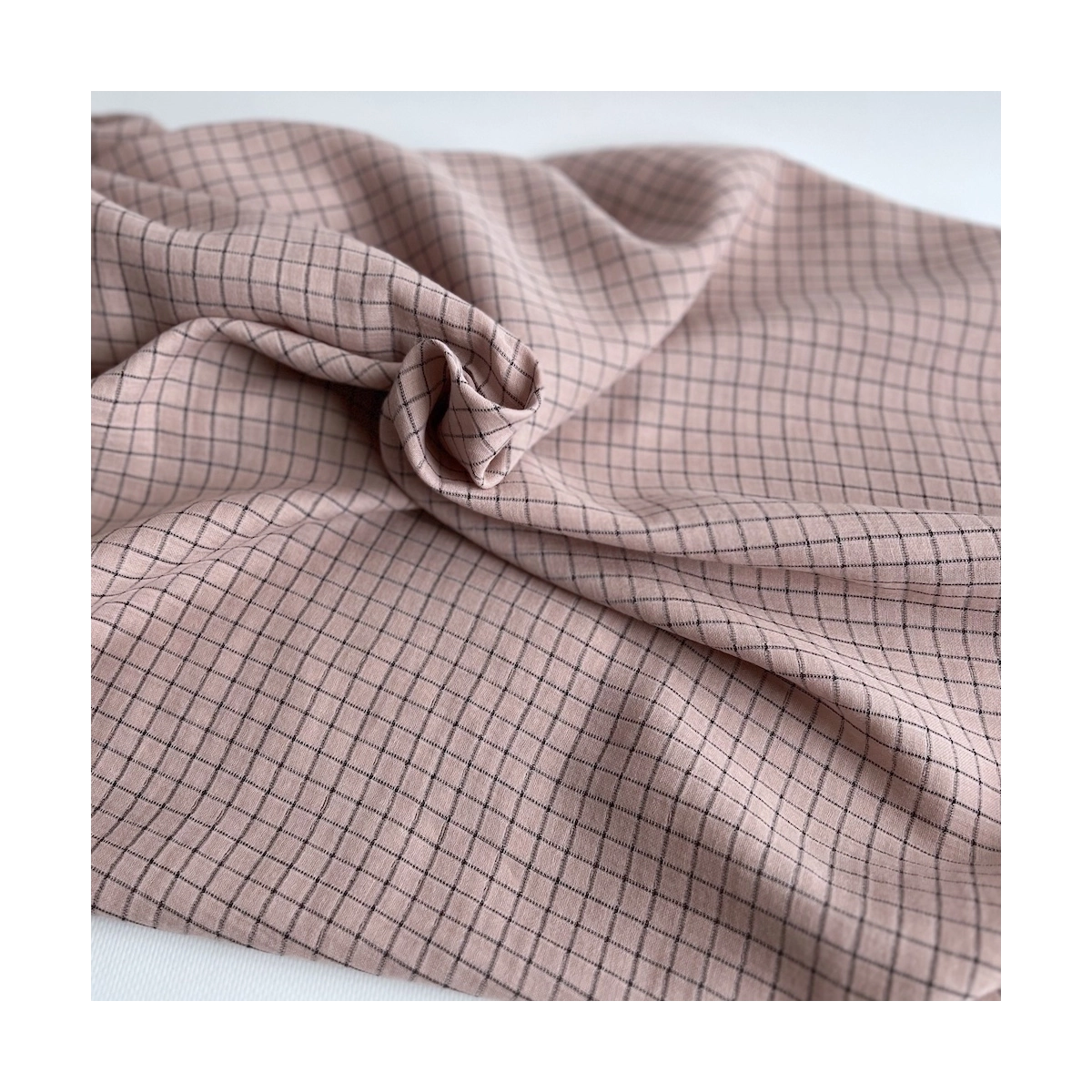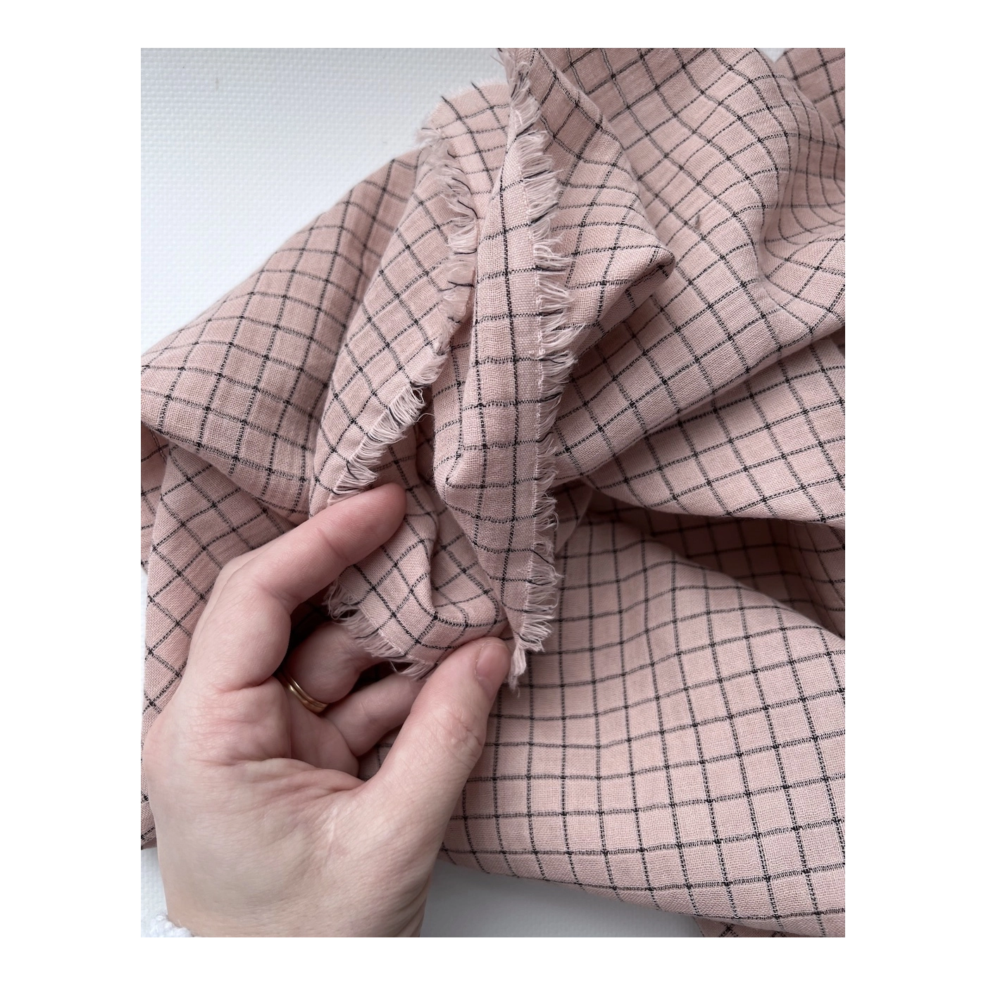 Theo - Gaze de coton lisse tissage carreaux coloris rose thé