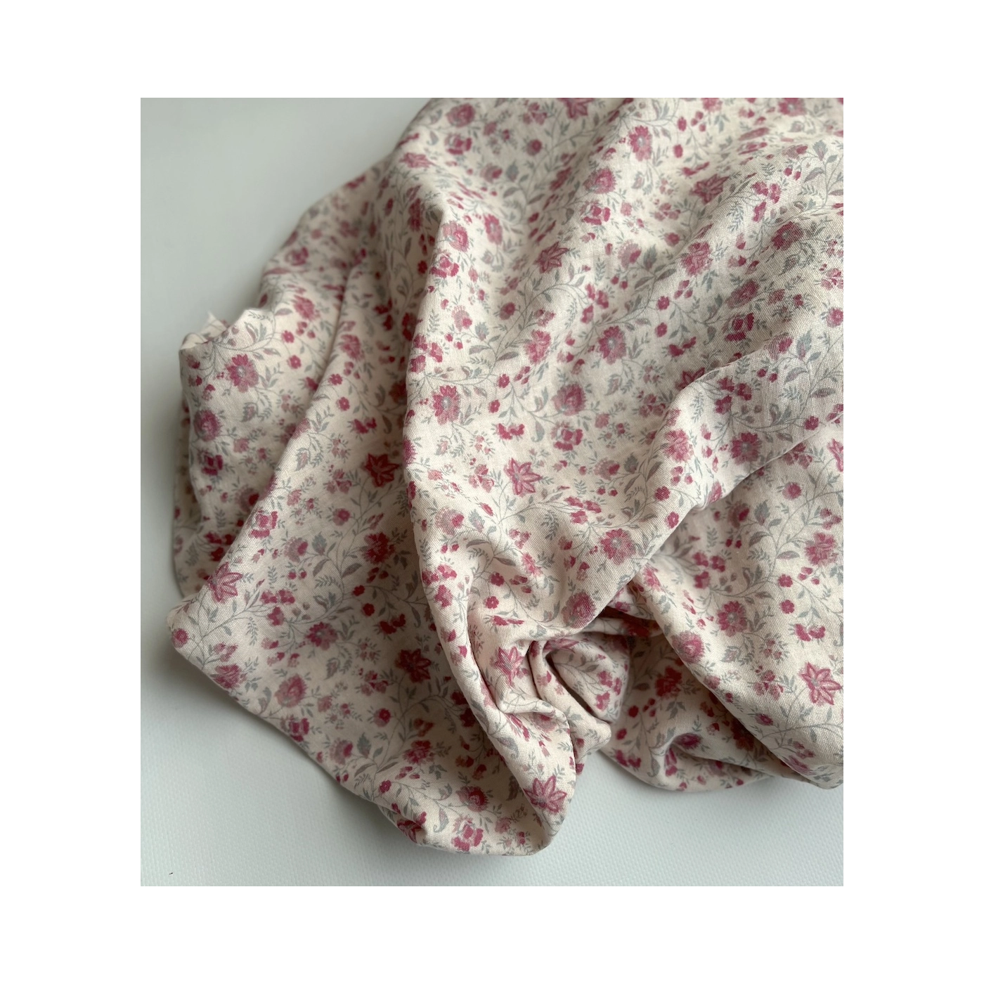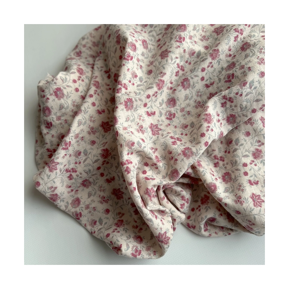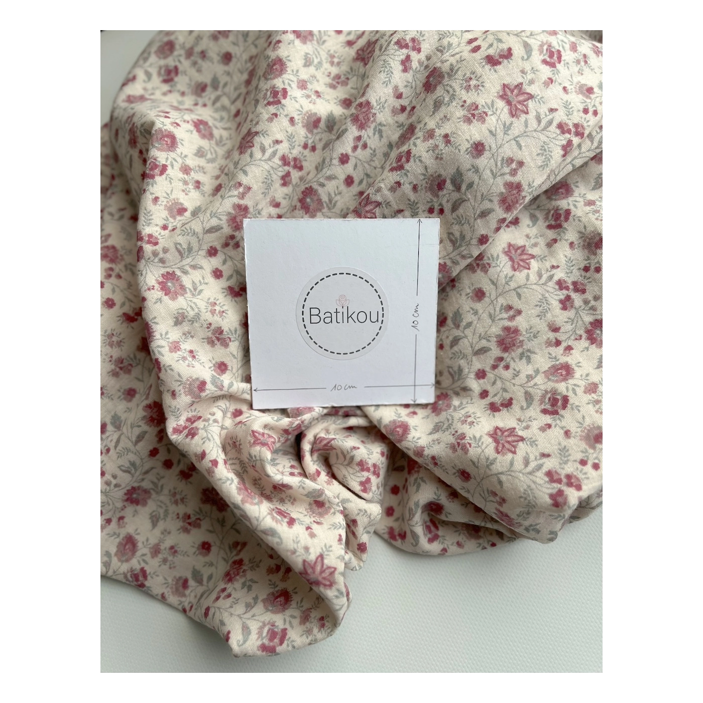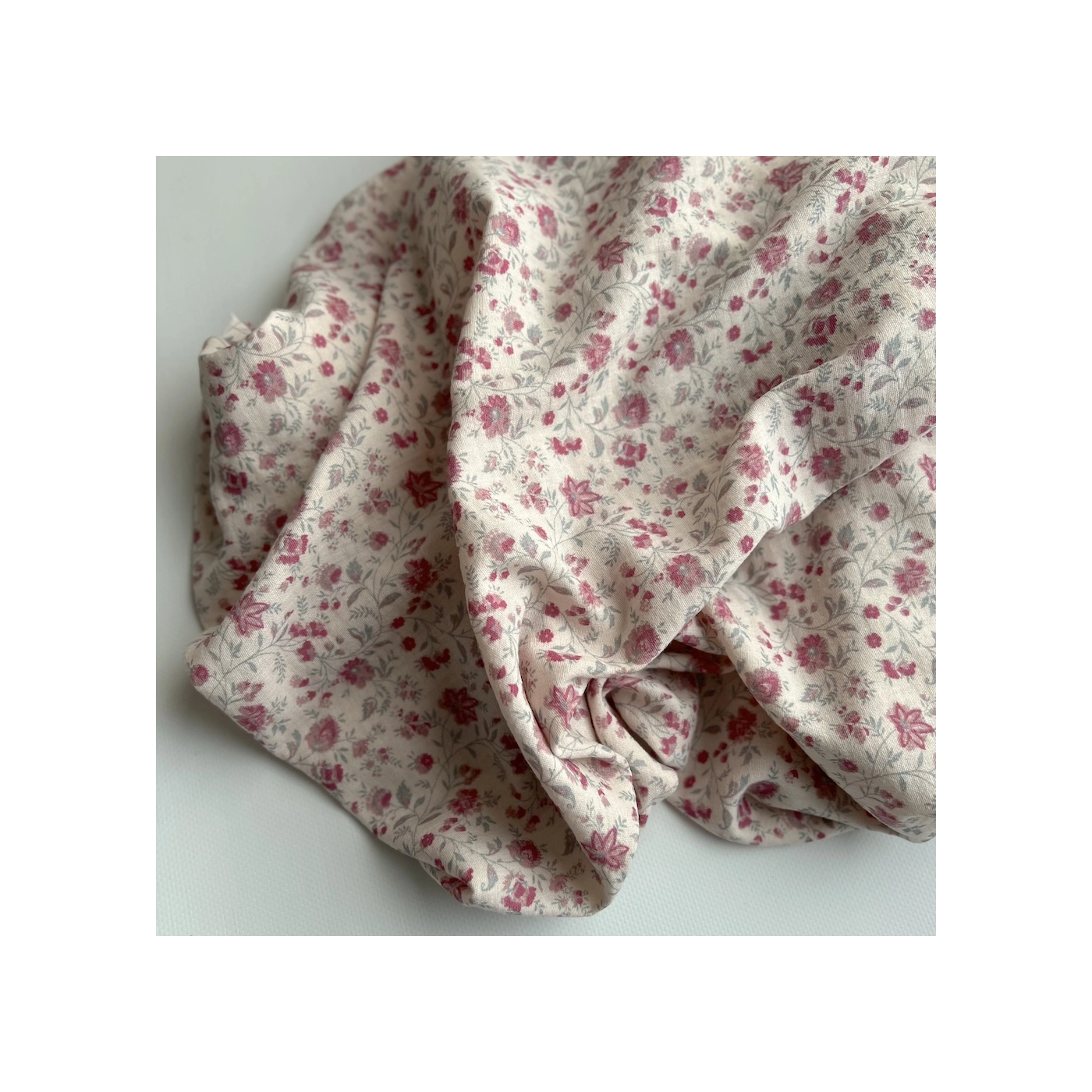 Jaya - Double gaze de coton coloris fond rose poudré imprimé fleuri