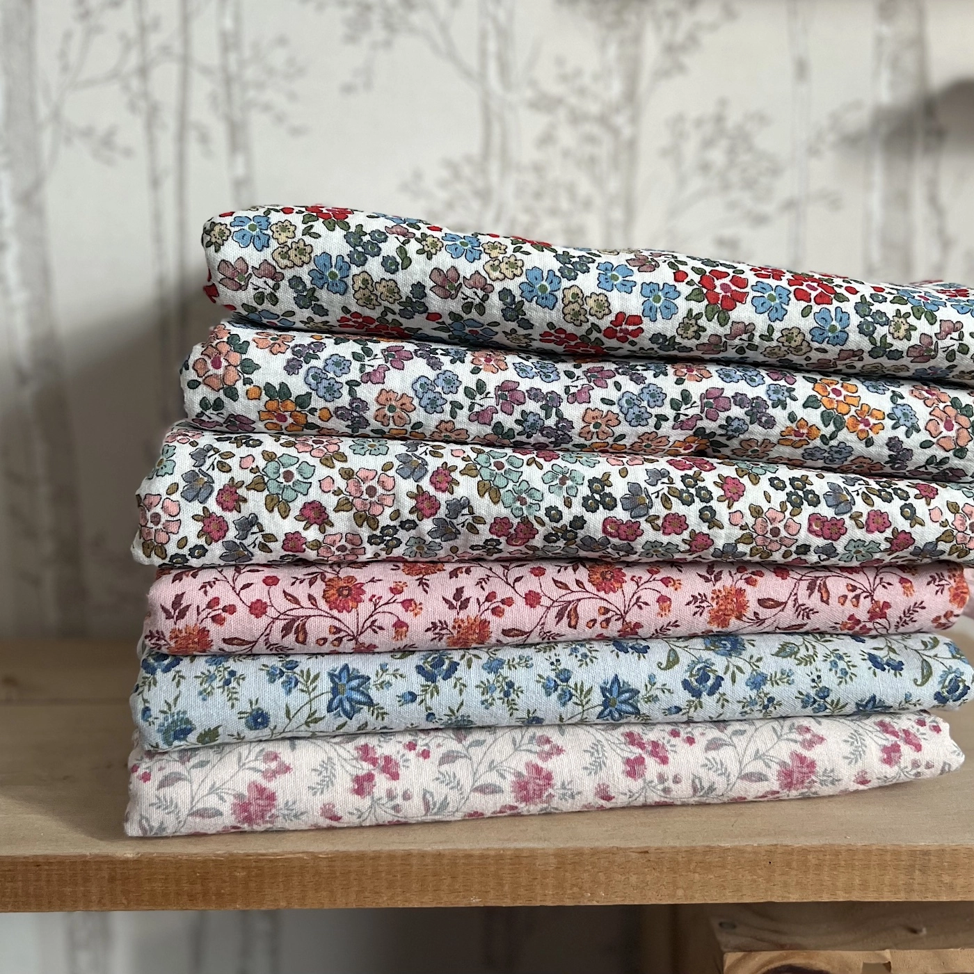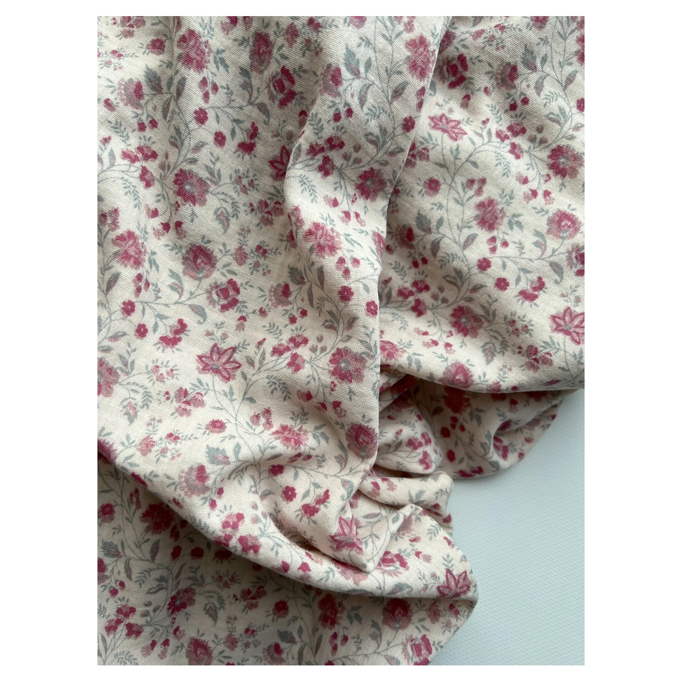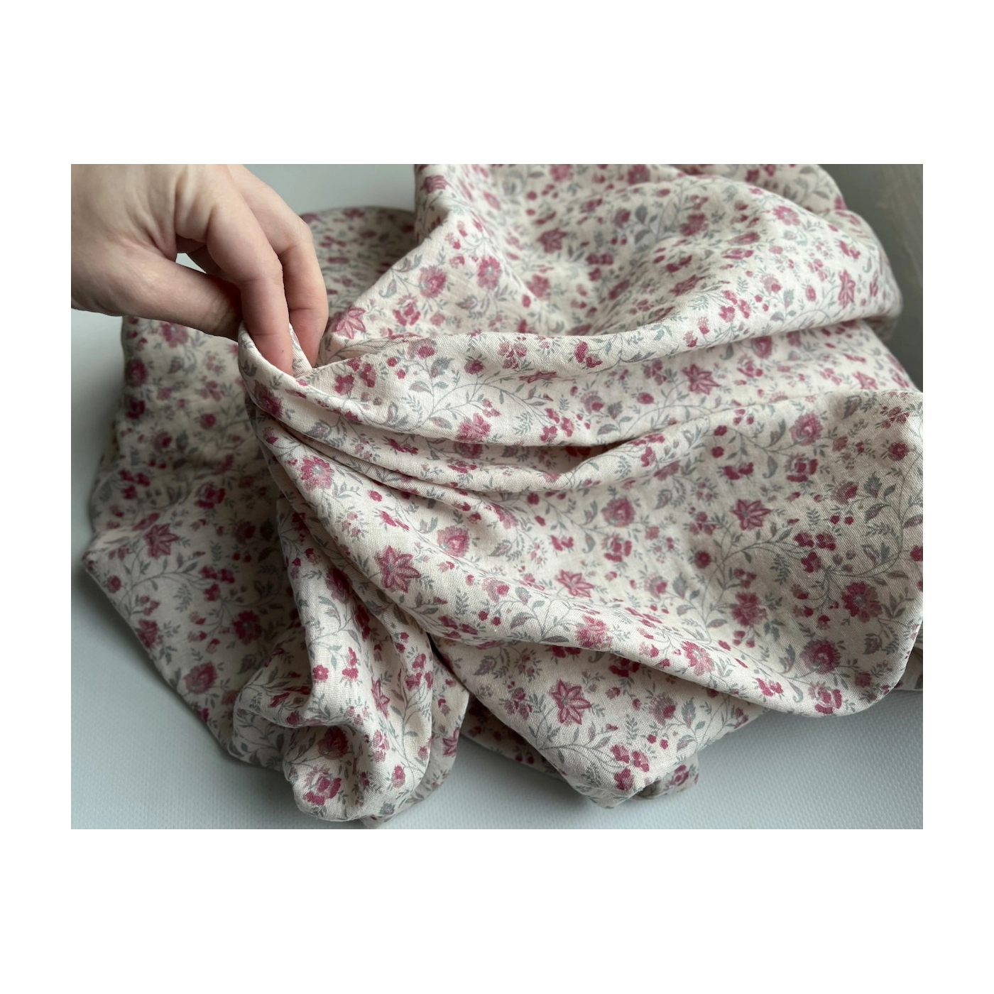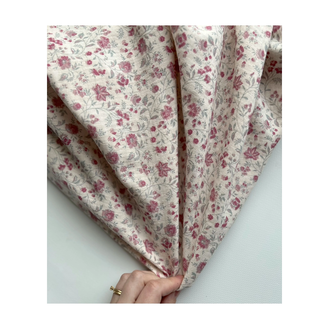 Jaya - Double gaze de coton coloris fond rose poudré imprimé fleuri