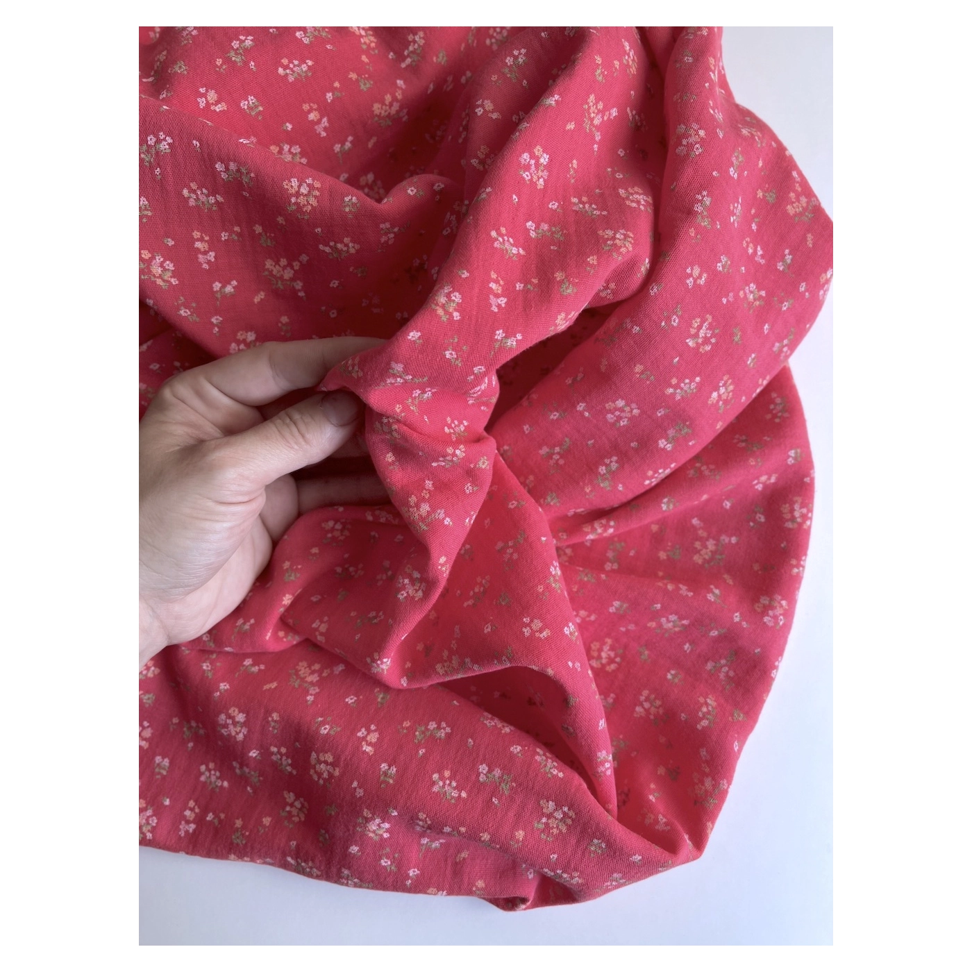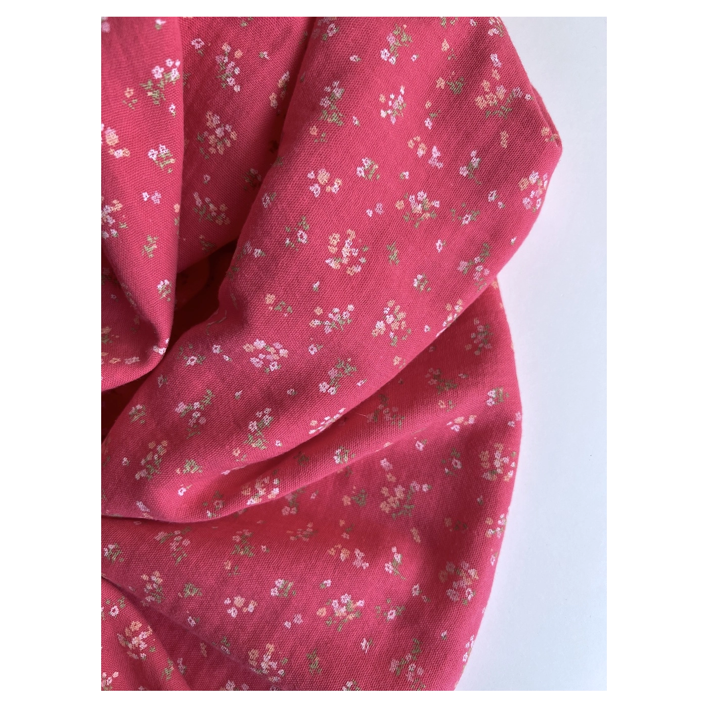 Margot - Double gaze de coton coloris fond framboise imprimé fleuri