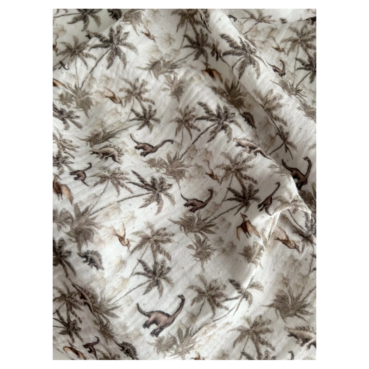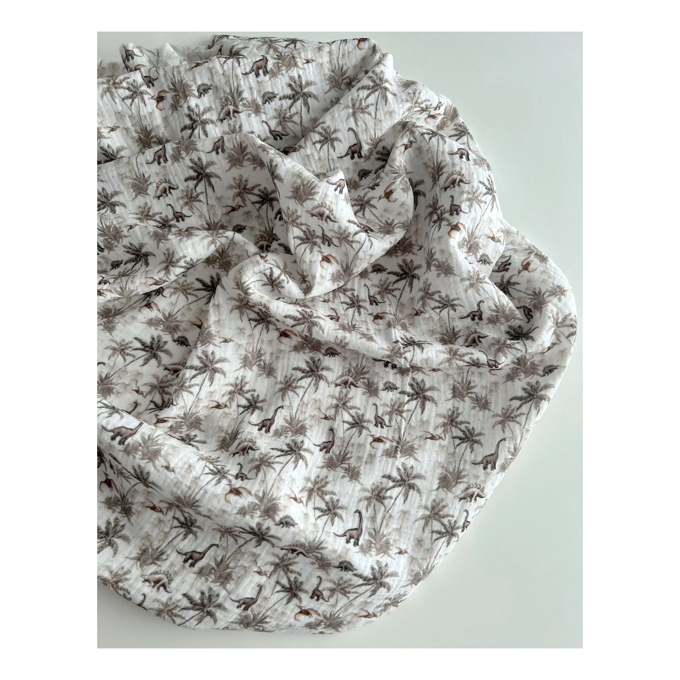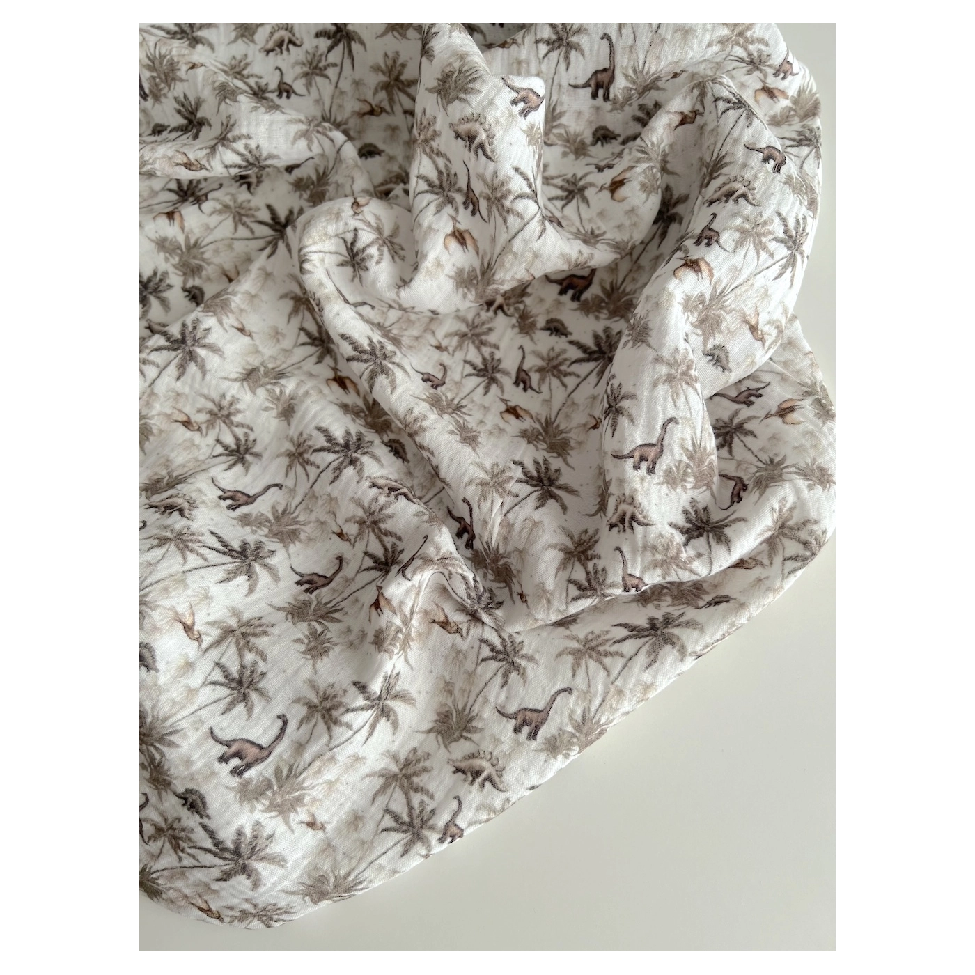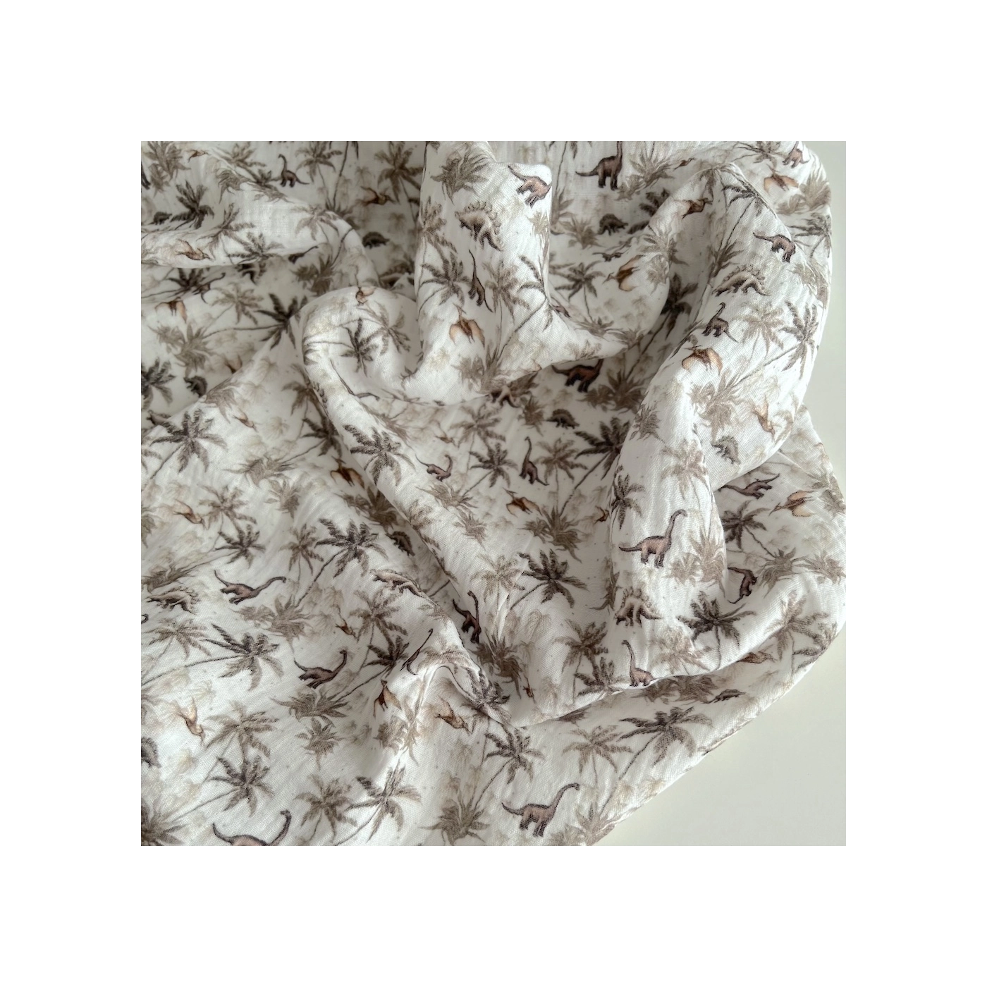 Dino - Double gaze de coton imprimé dinosaures taupe / kaki