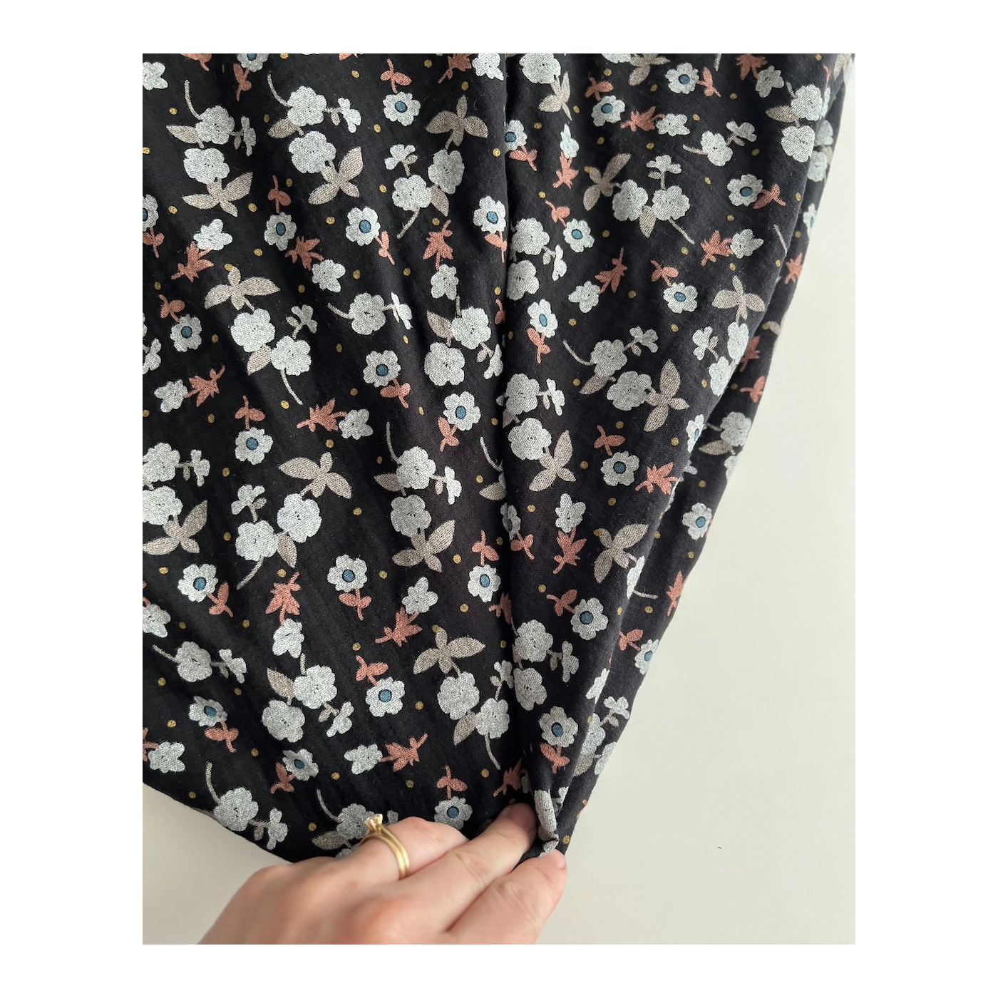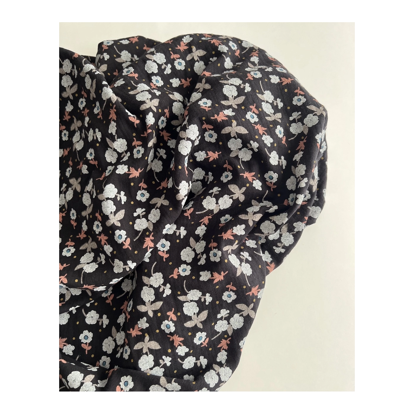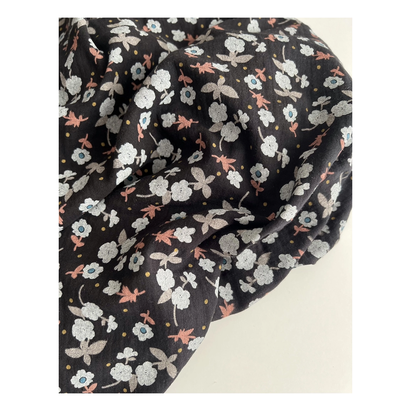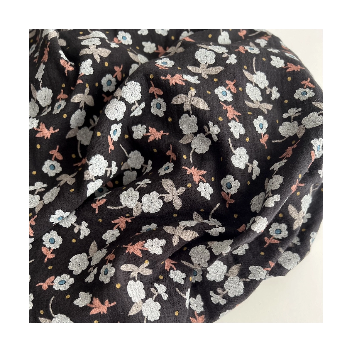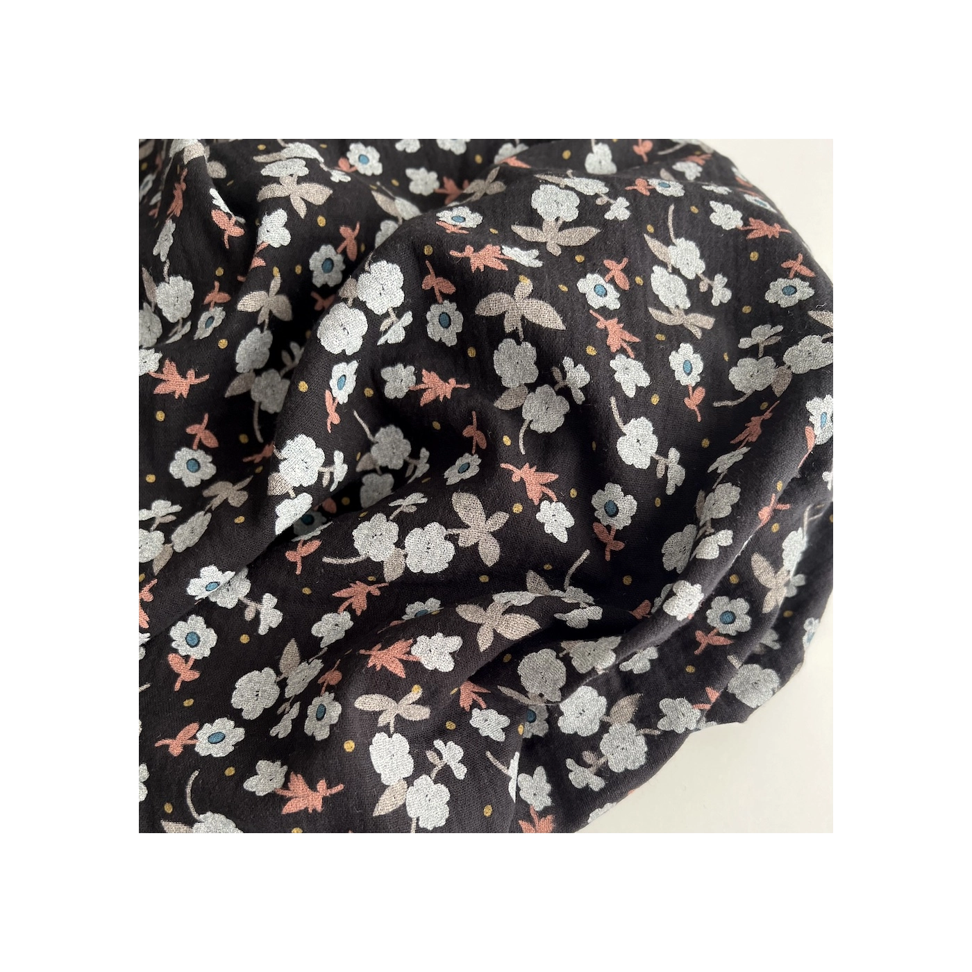 Olivia - Double gaze de coton coloris fond noir imprimé fleuri