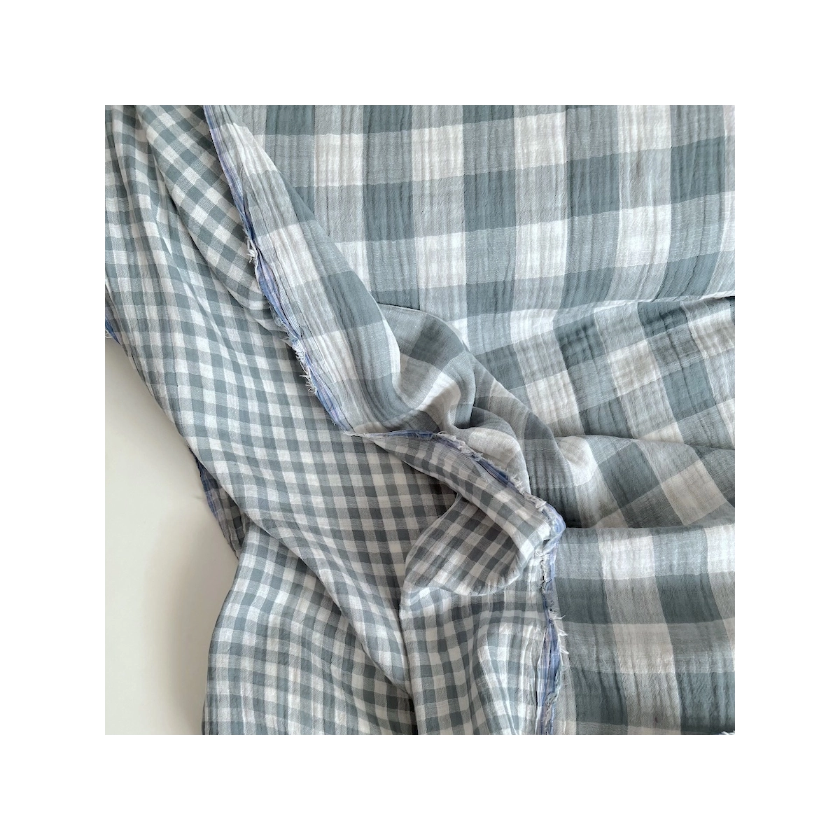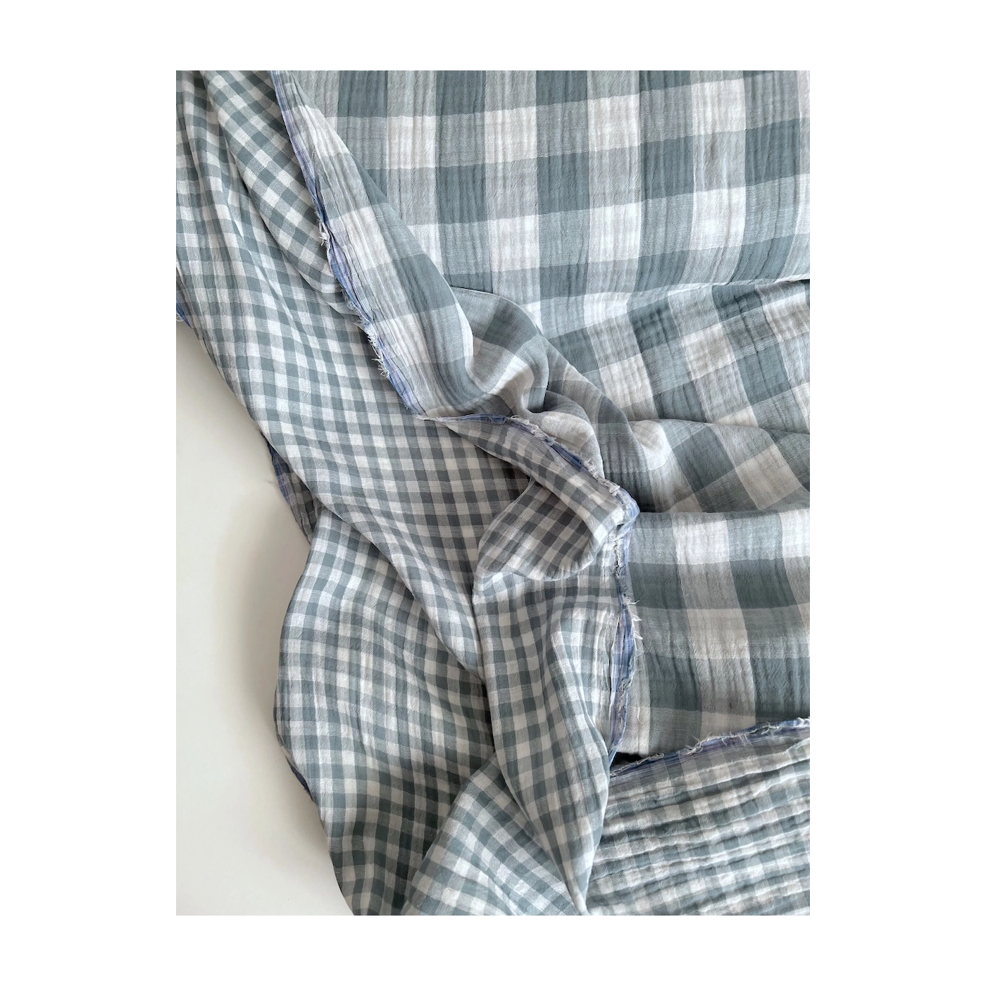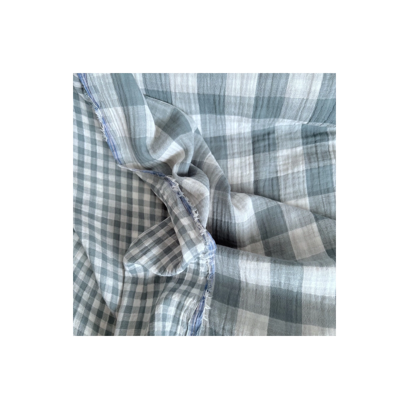 Double gaze de coton vichy réversible sauge / blanc