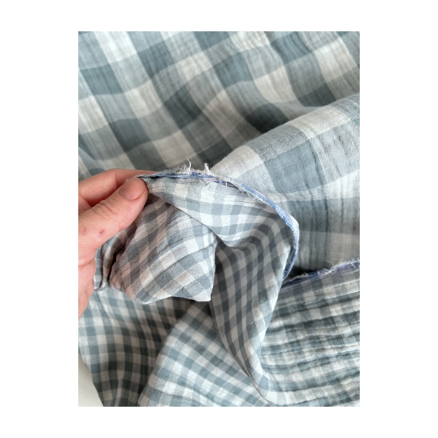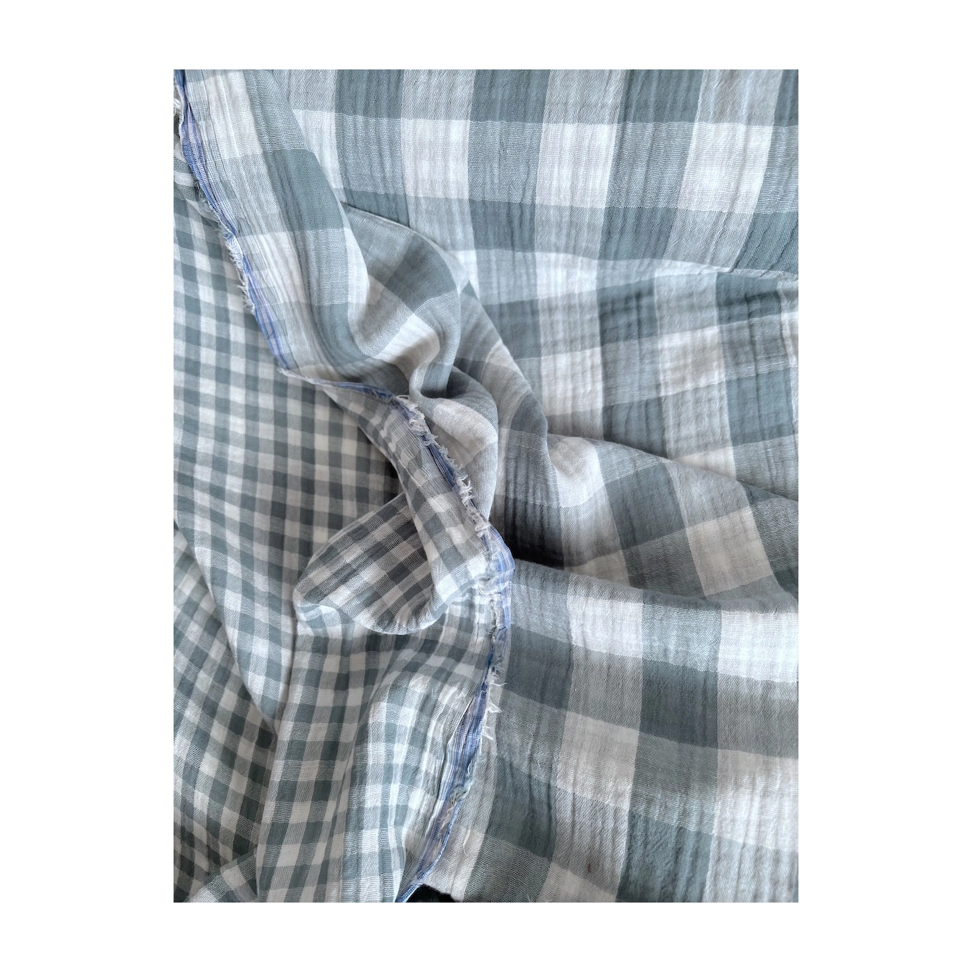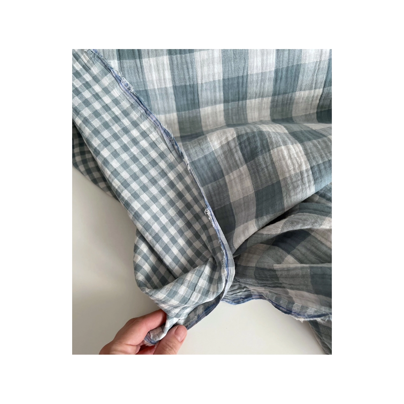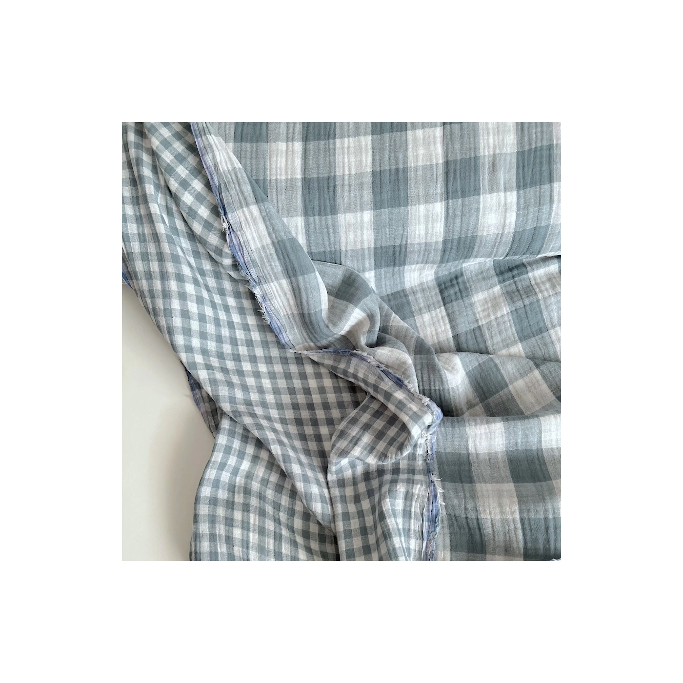Double gaze de coton vichy réversible sauge / blanc