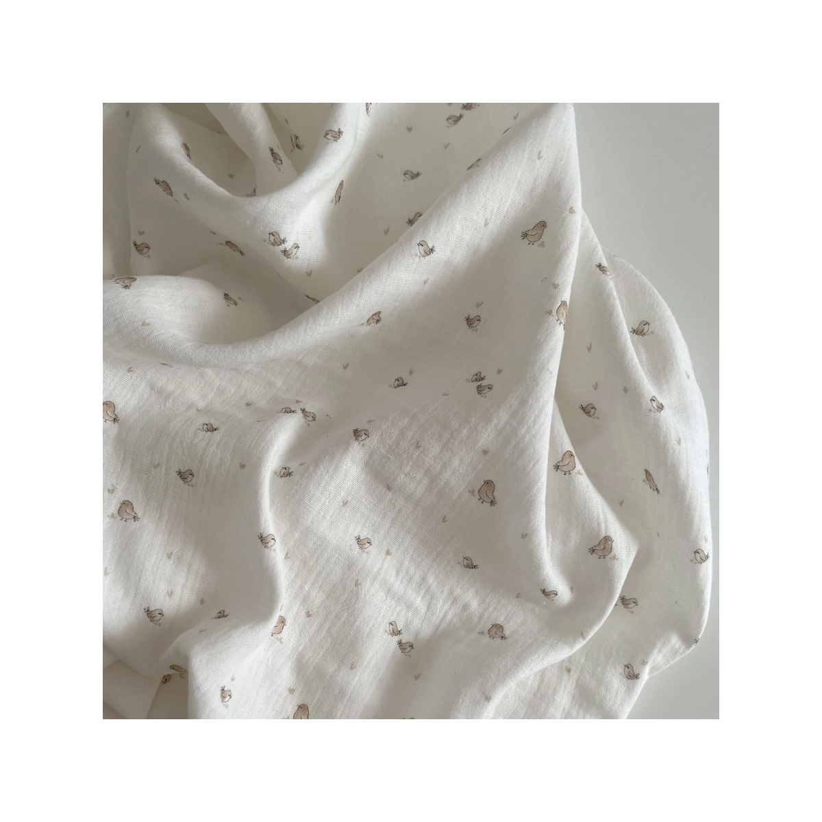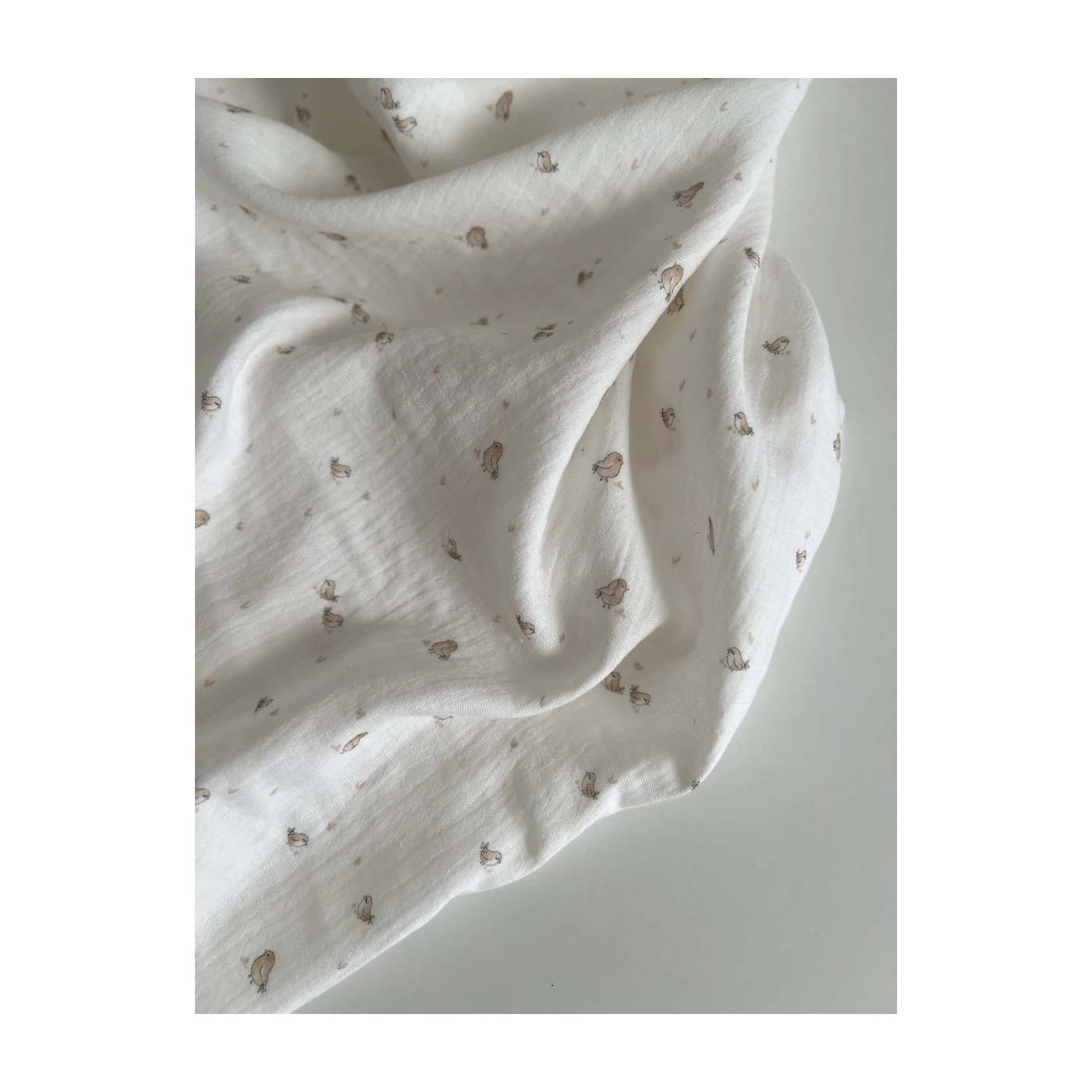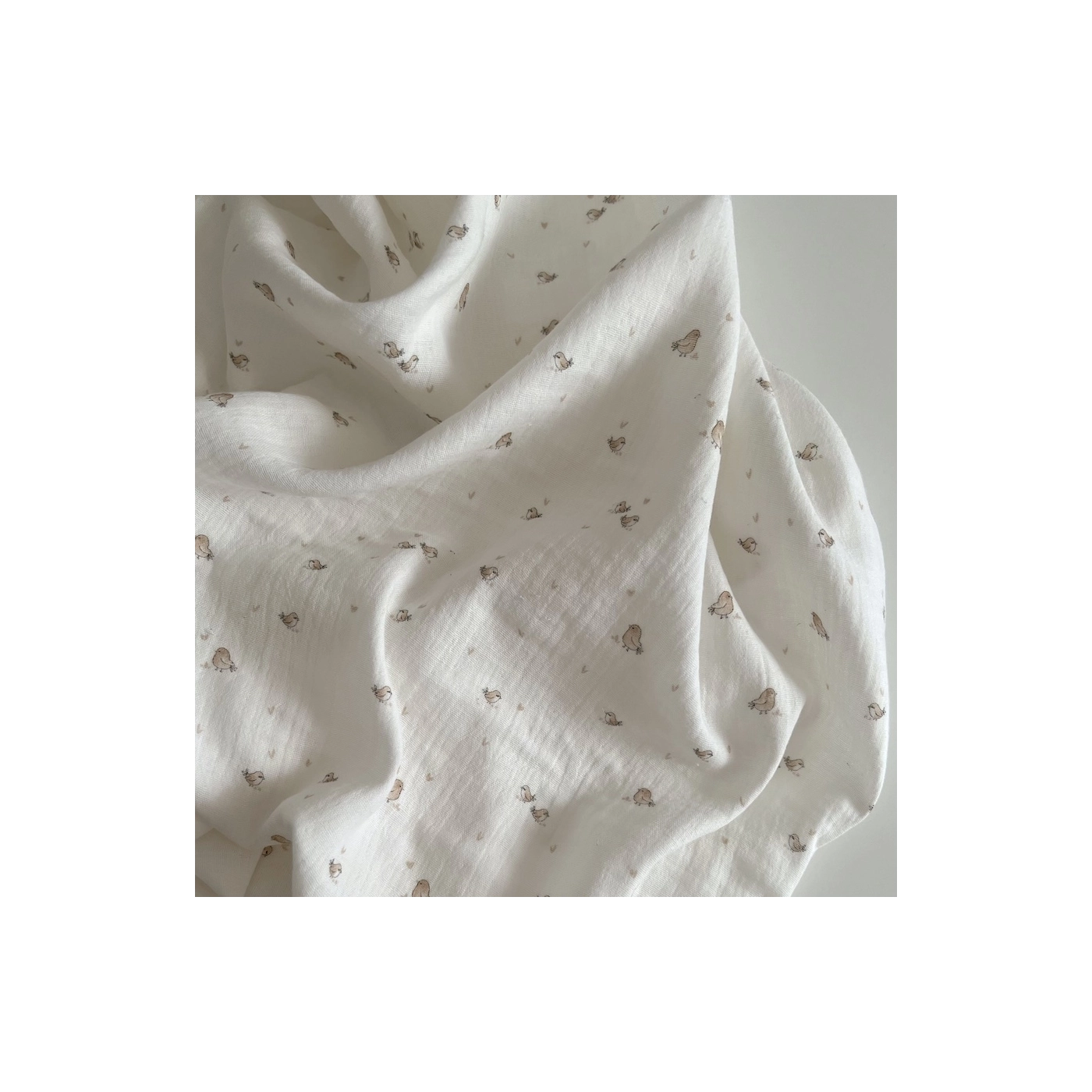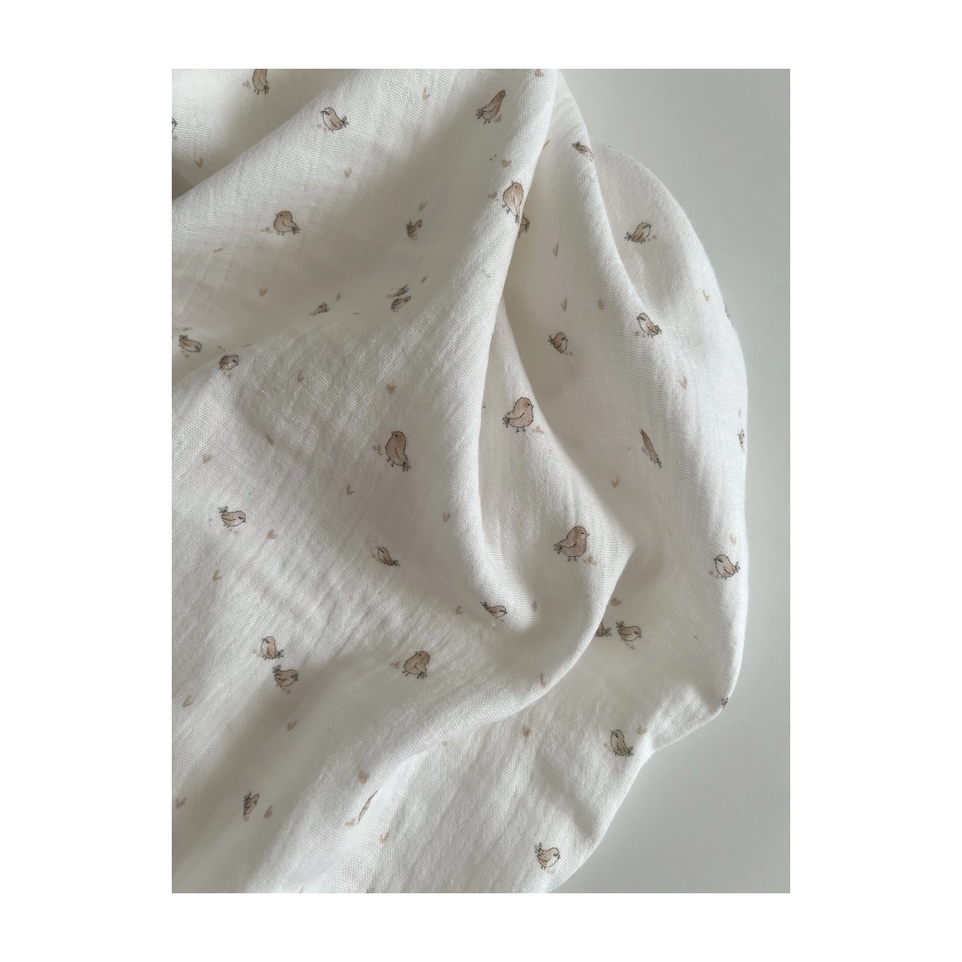 Charly - Double gaze de coton blanc lait motif petits oiseaux beige