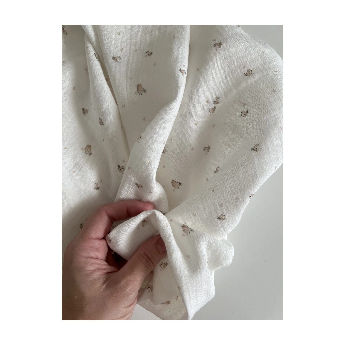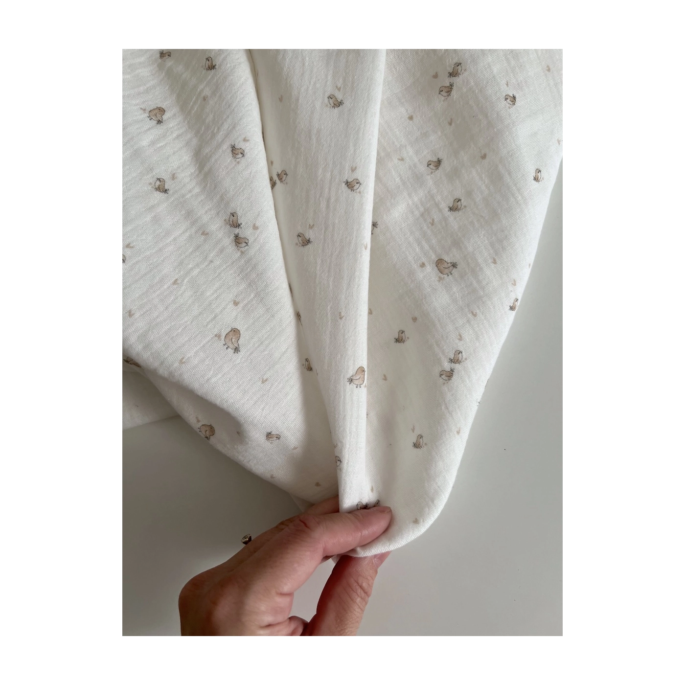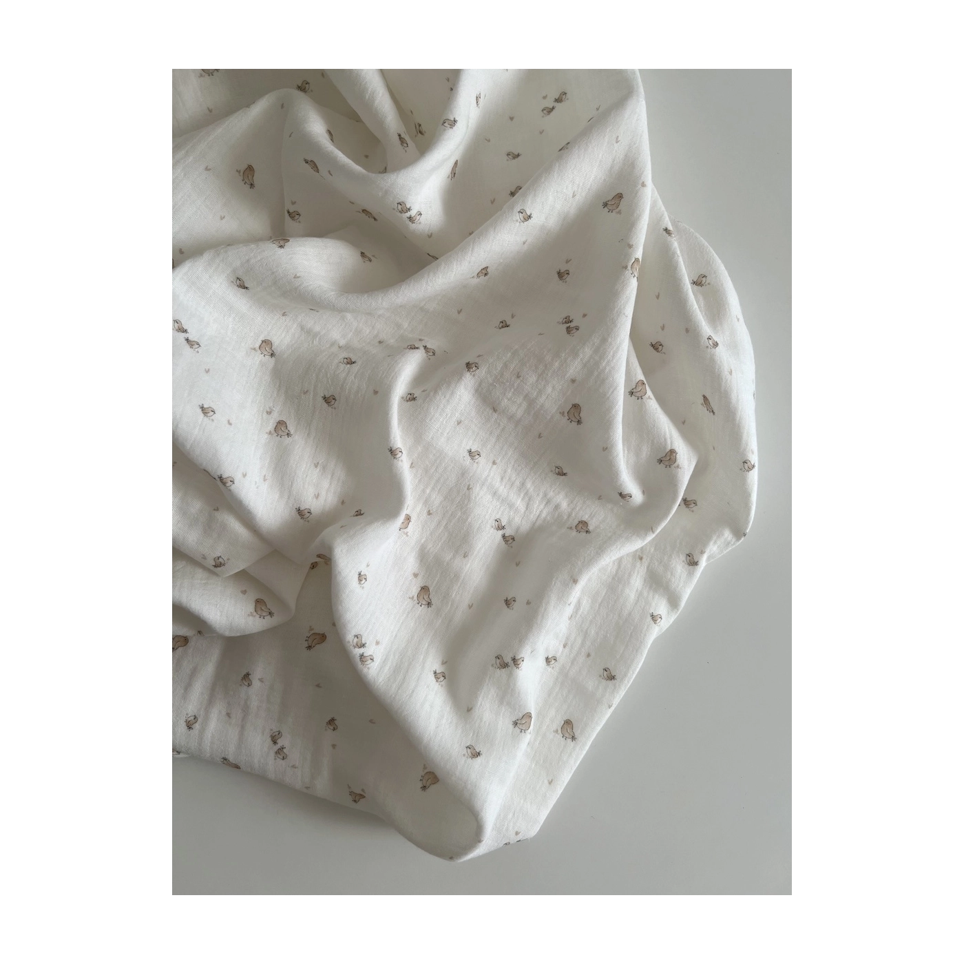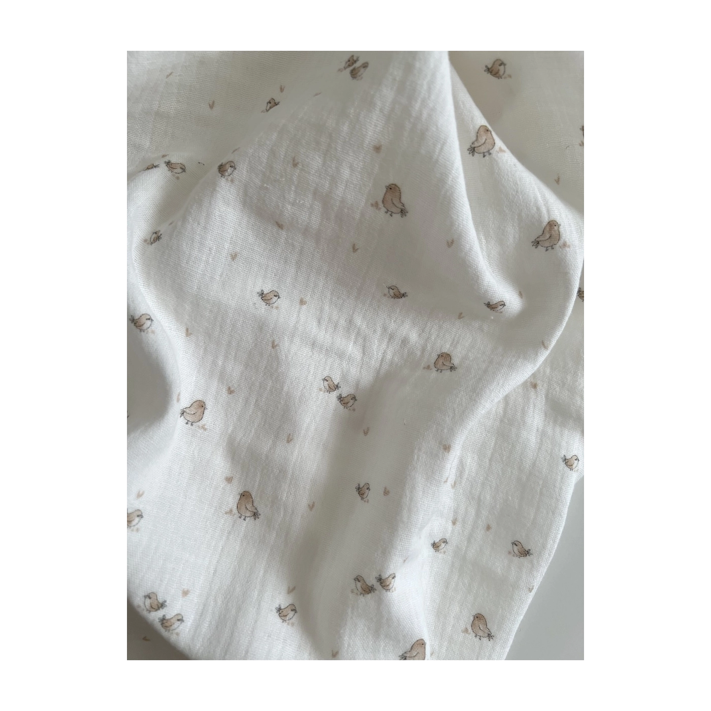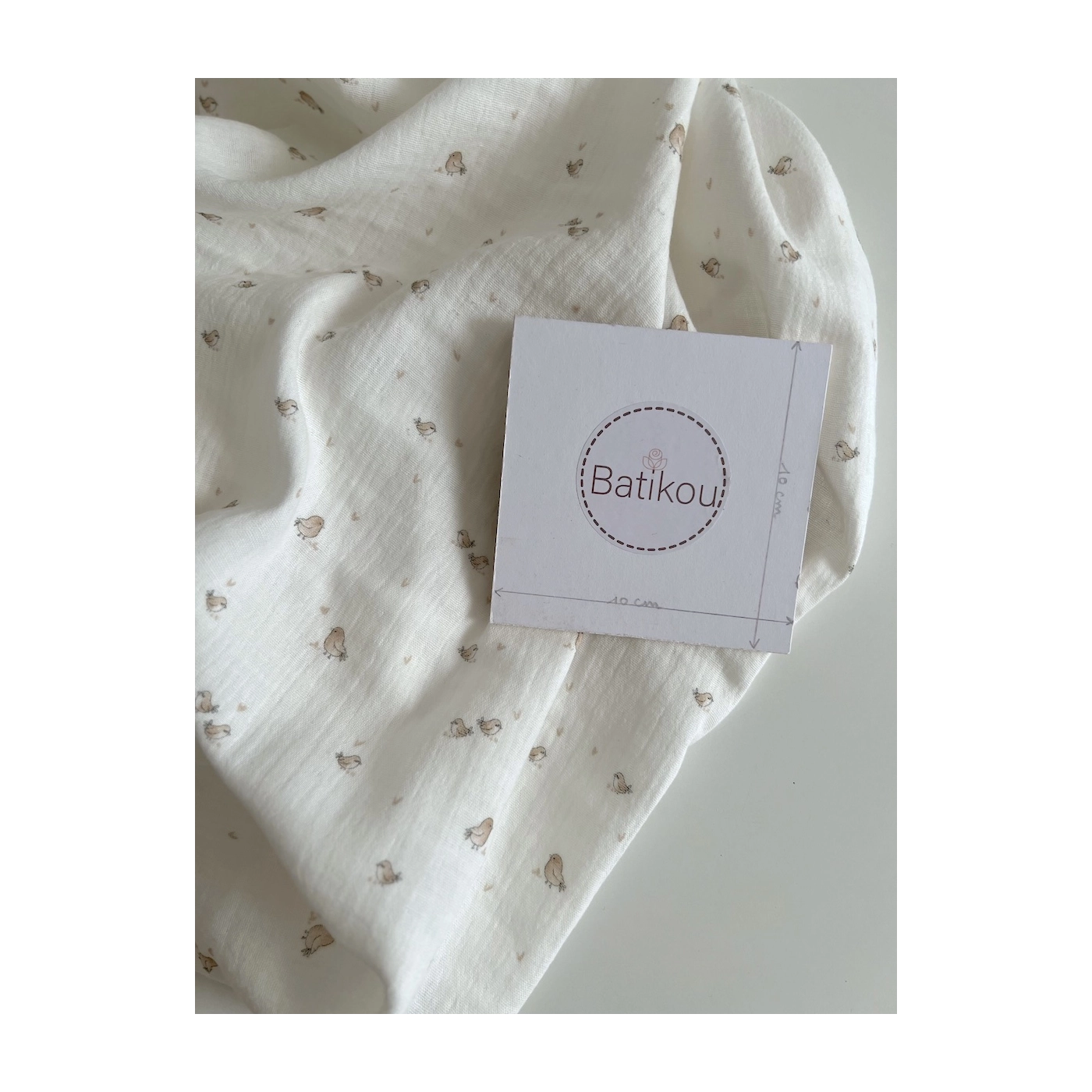 Charly - Double gaze de coton blanc lait motif petits oiseaux beige