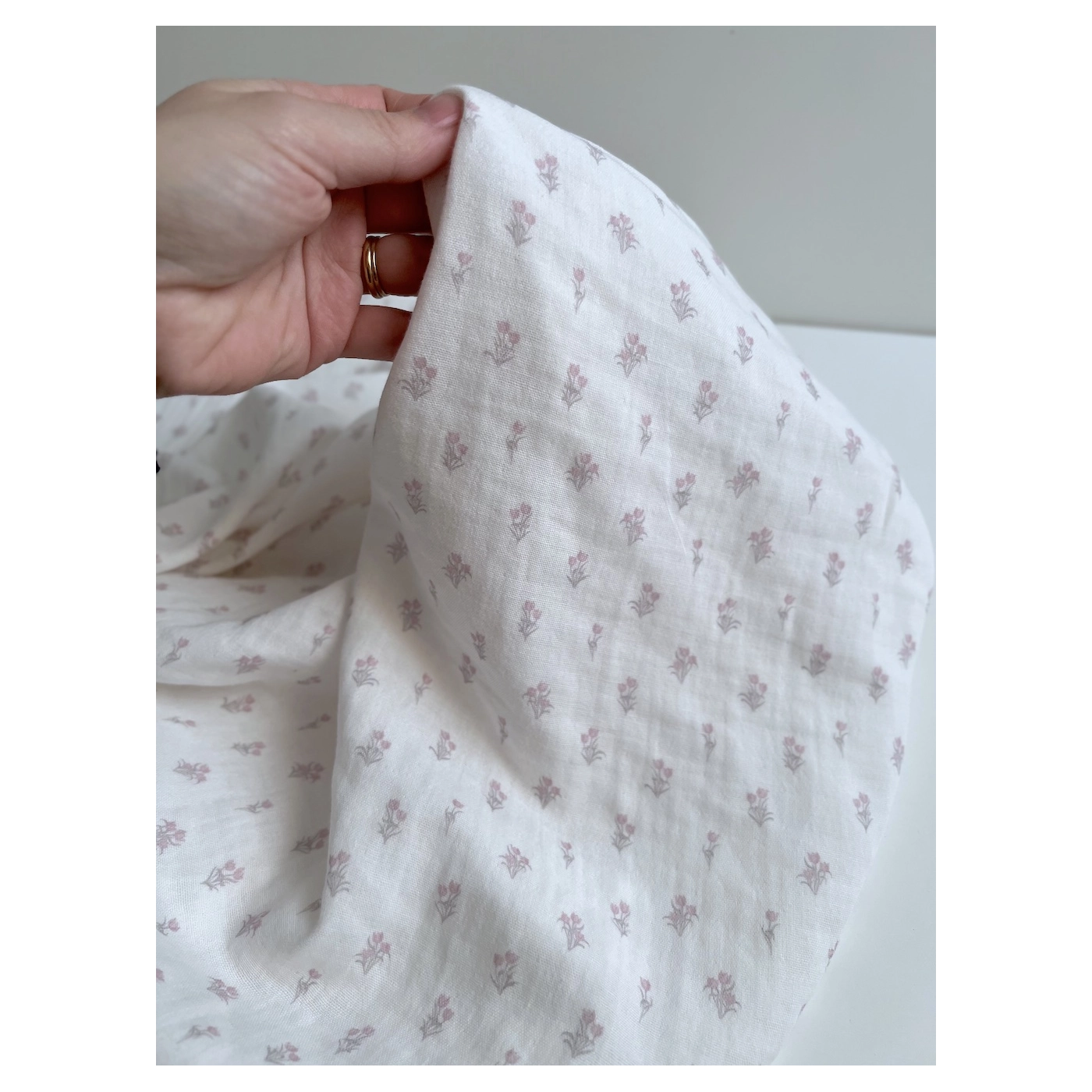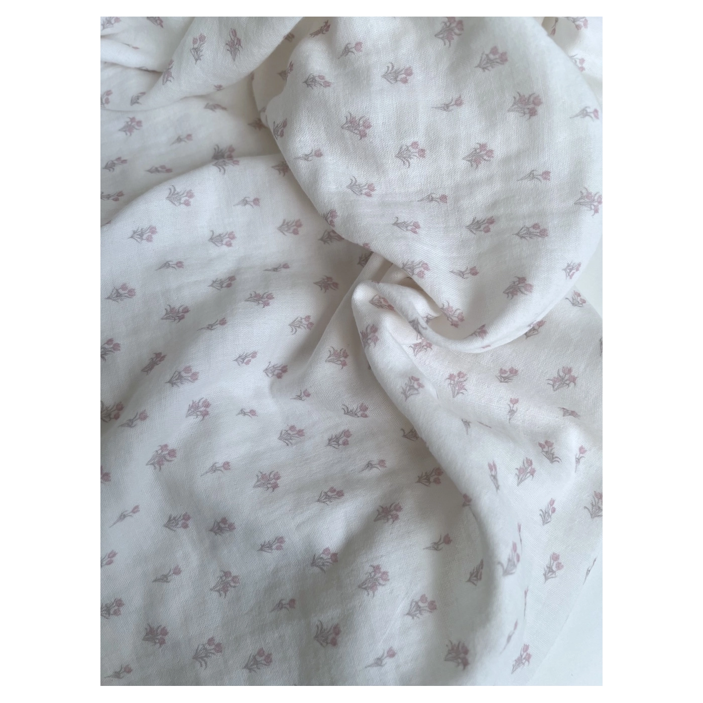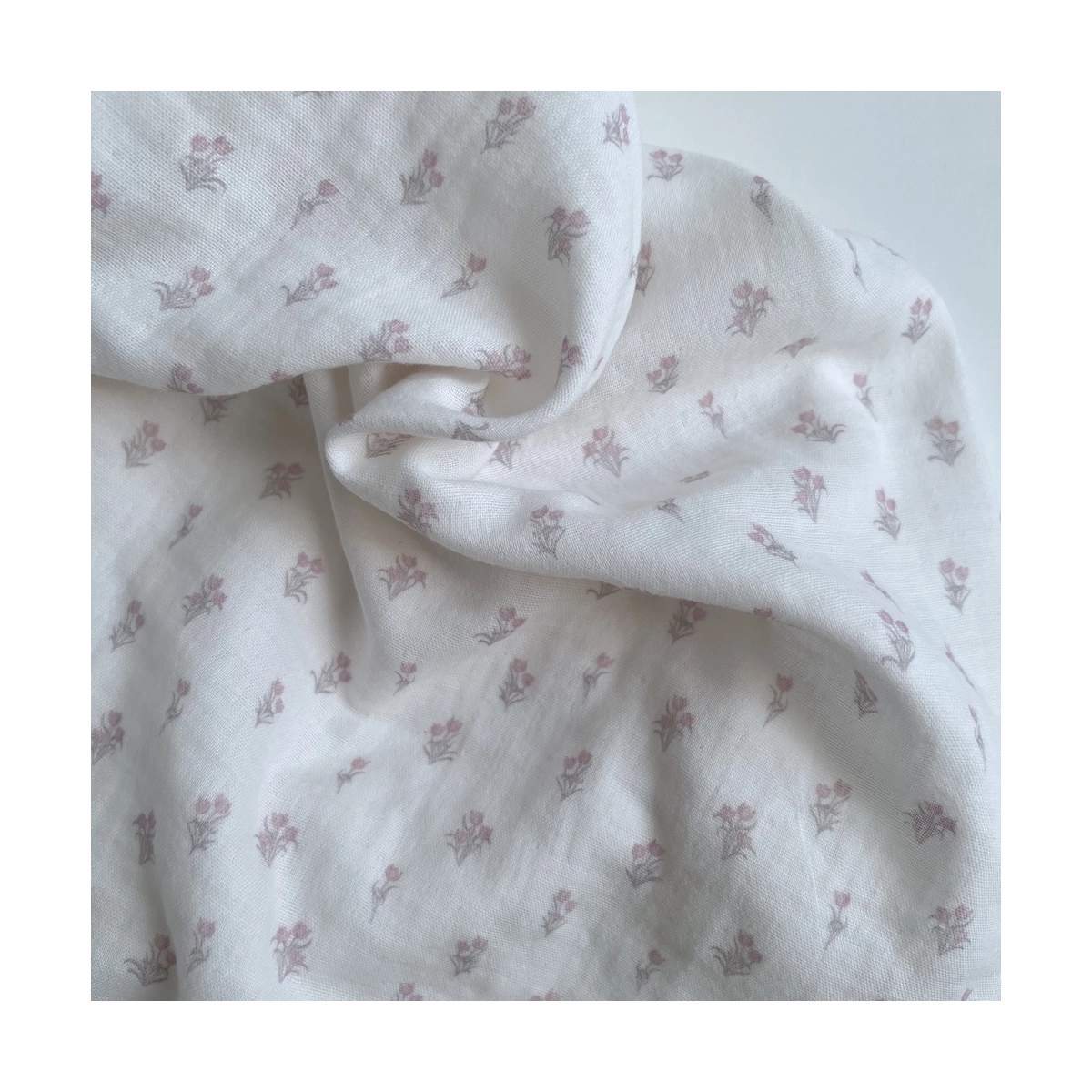 Madeleine - Double gaze de coton BIO à motif petites tulipes