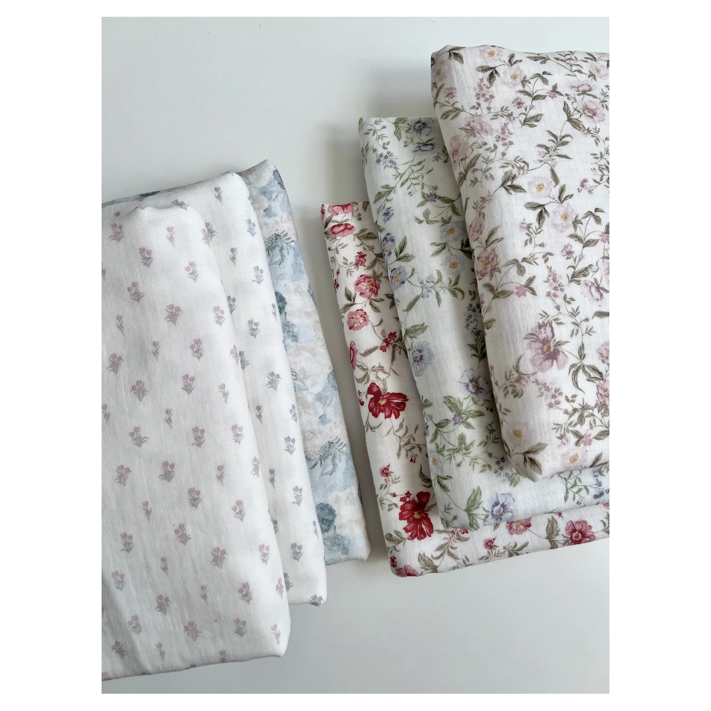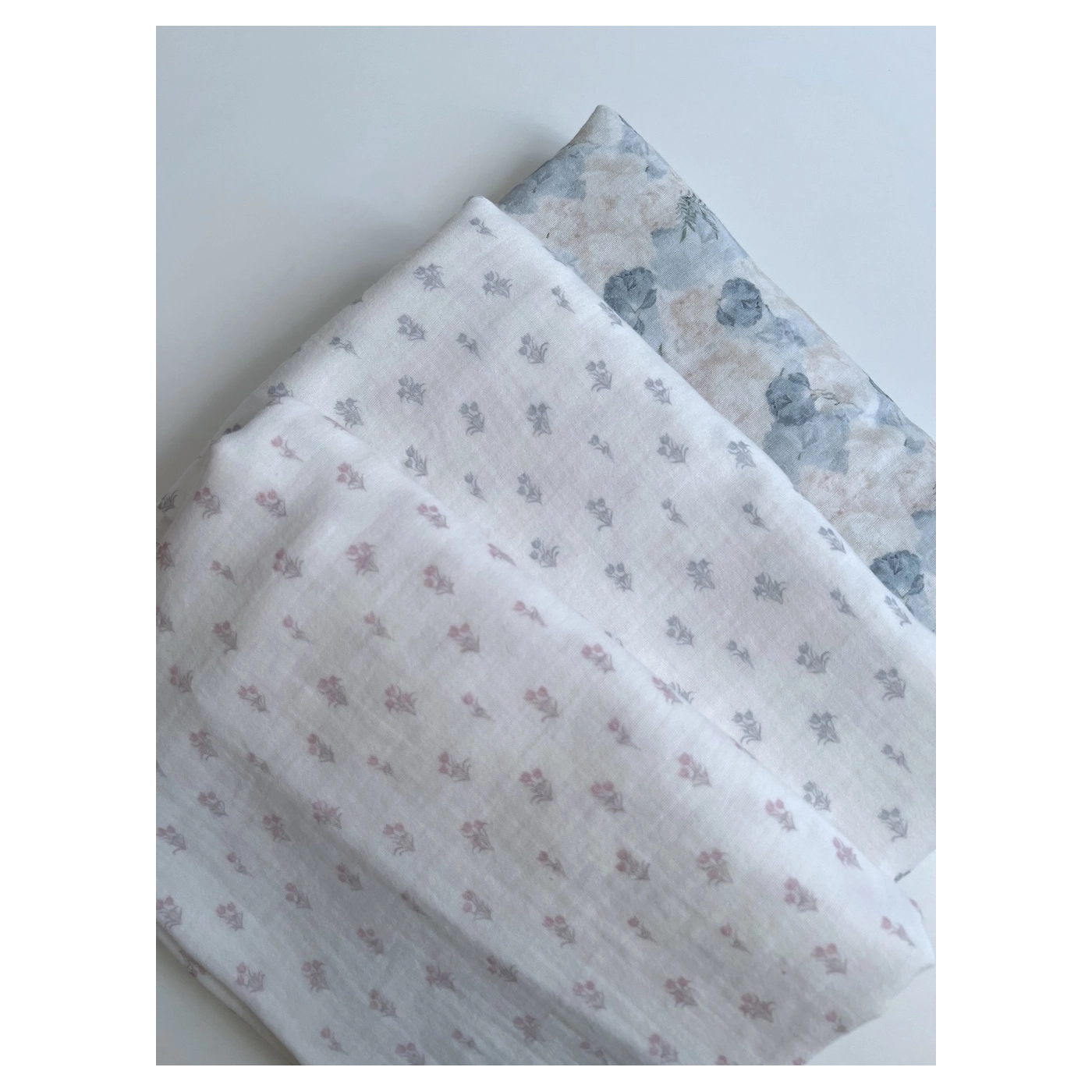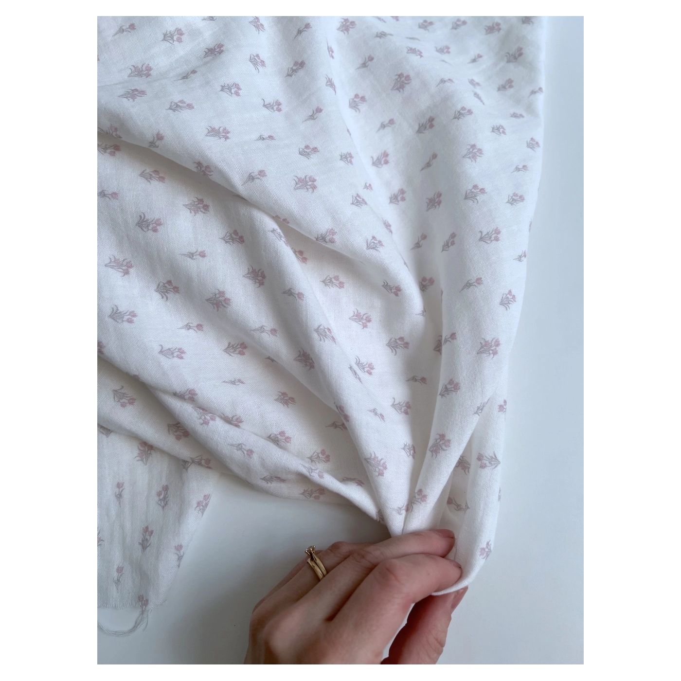 Madeleine - Double gaze de coton BIO à motif petites tulipes