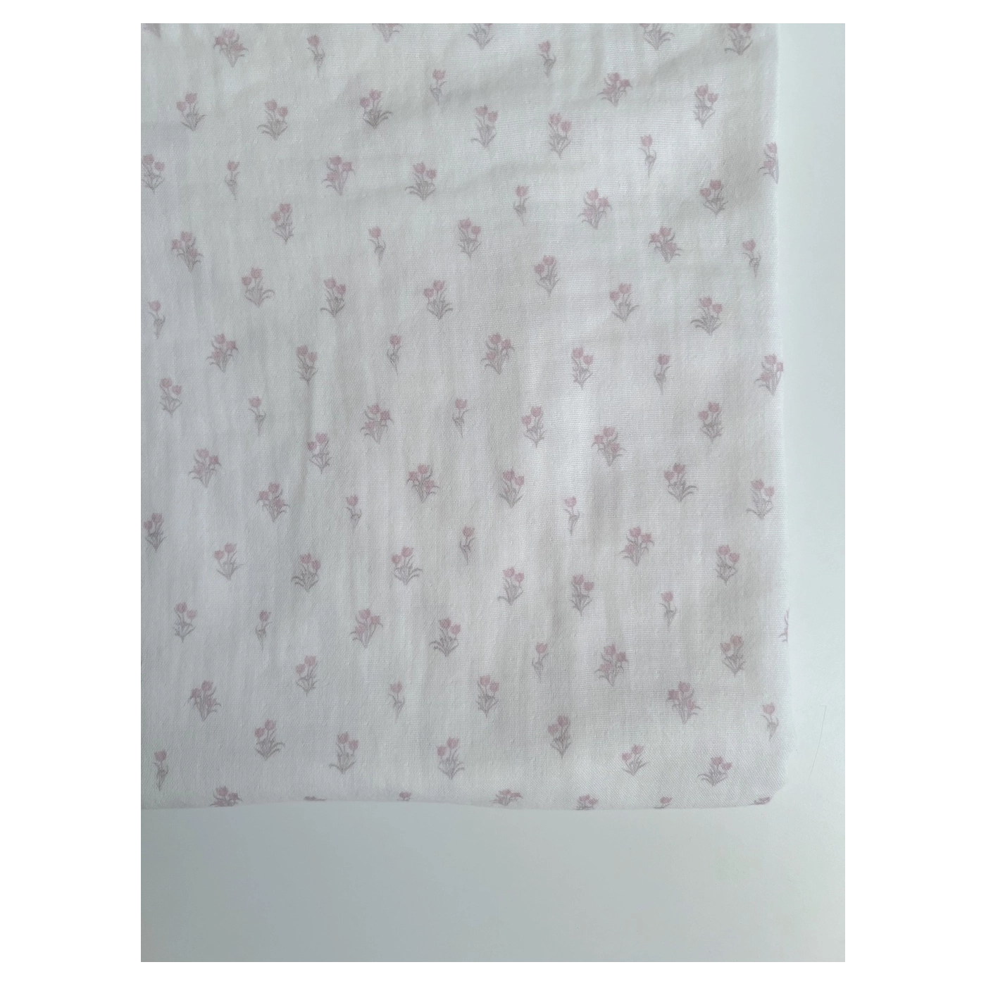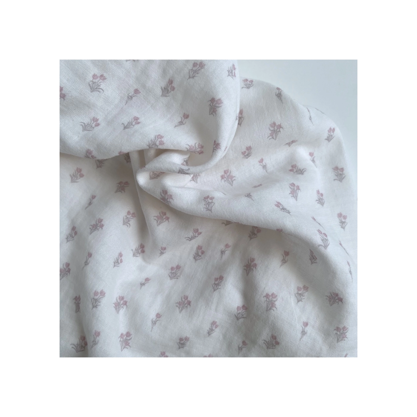 Madeleine - Double gaze de coton BIO blanc motif tulipes rose poudré