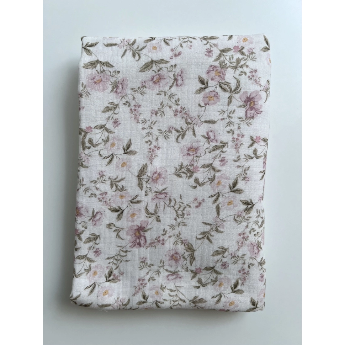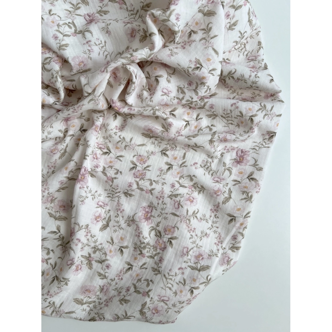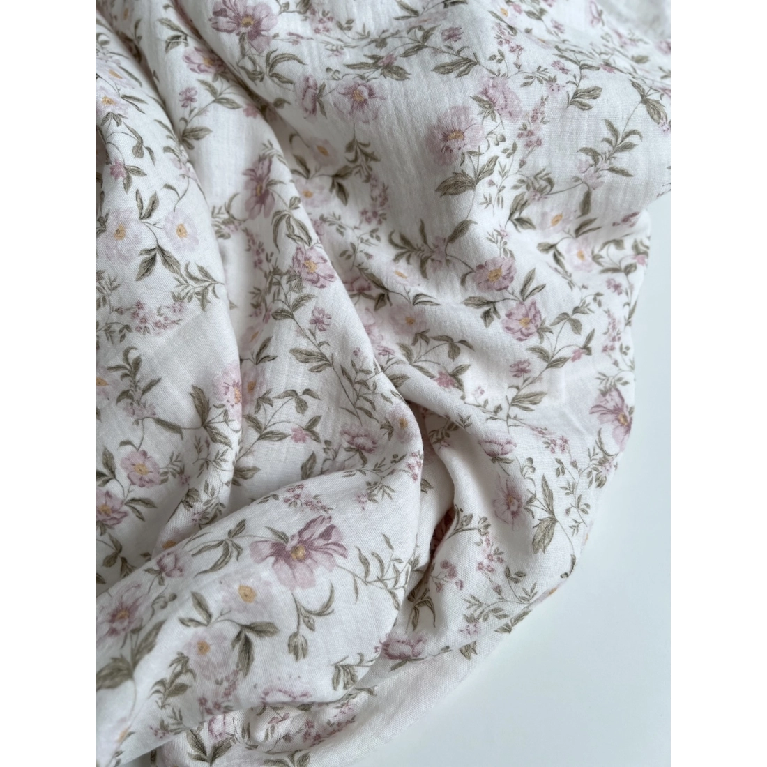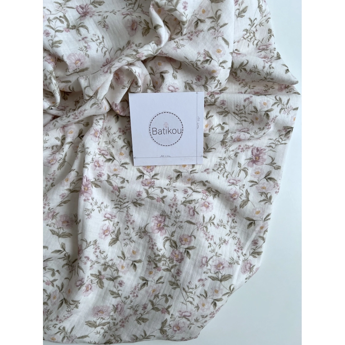 Romy - Double gaze de coton BIO blanc motif rose poudré et vert