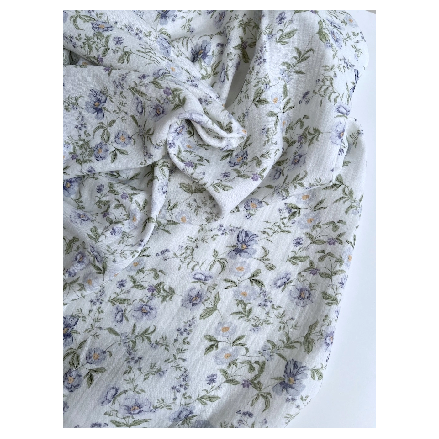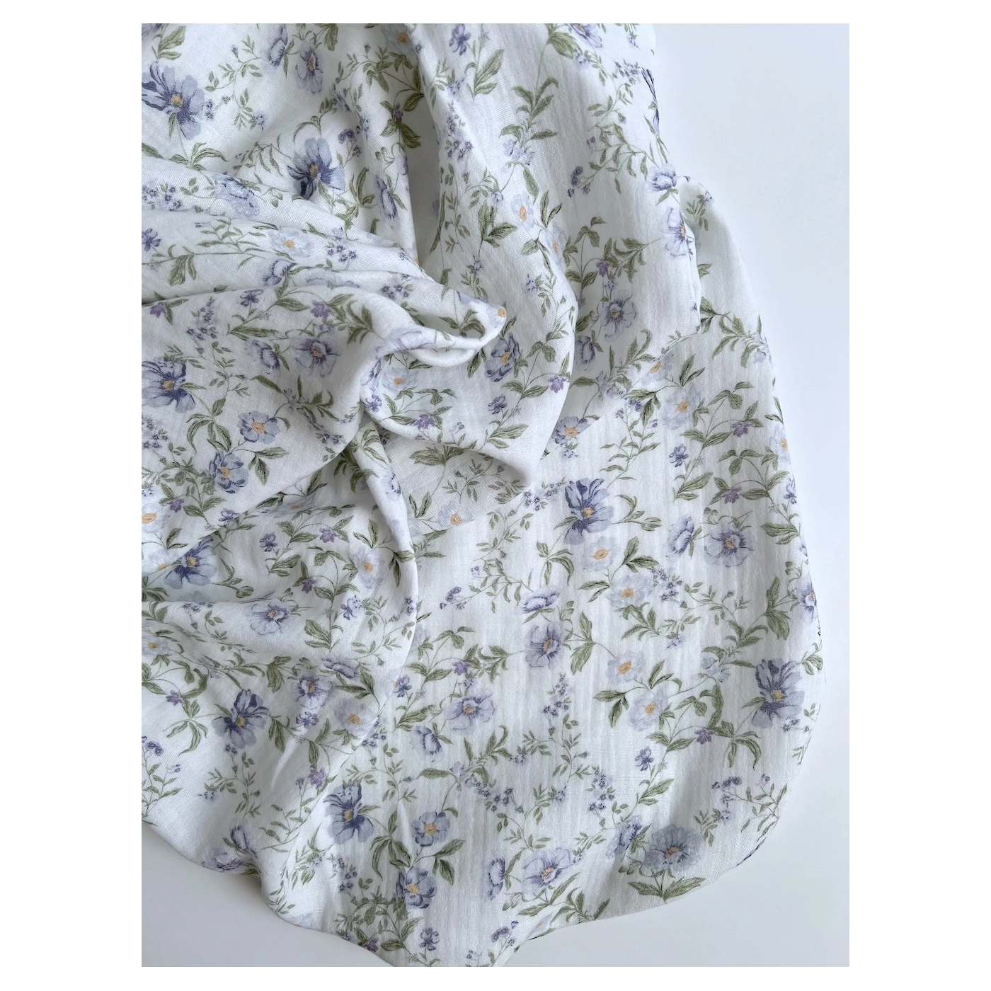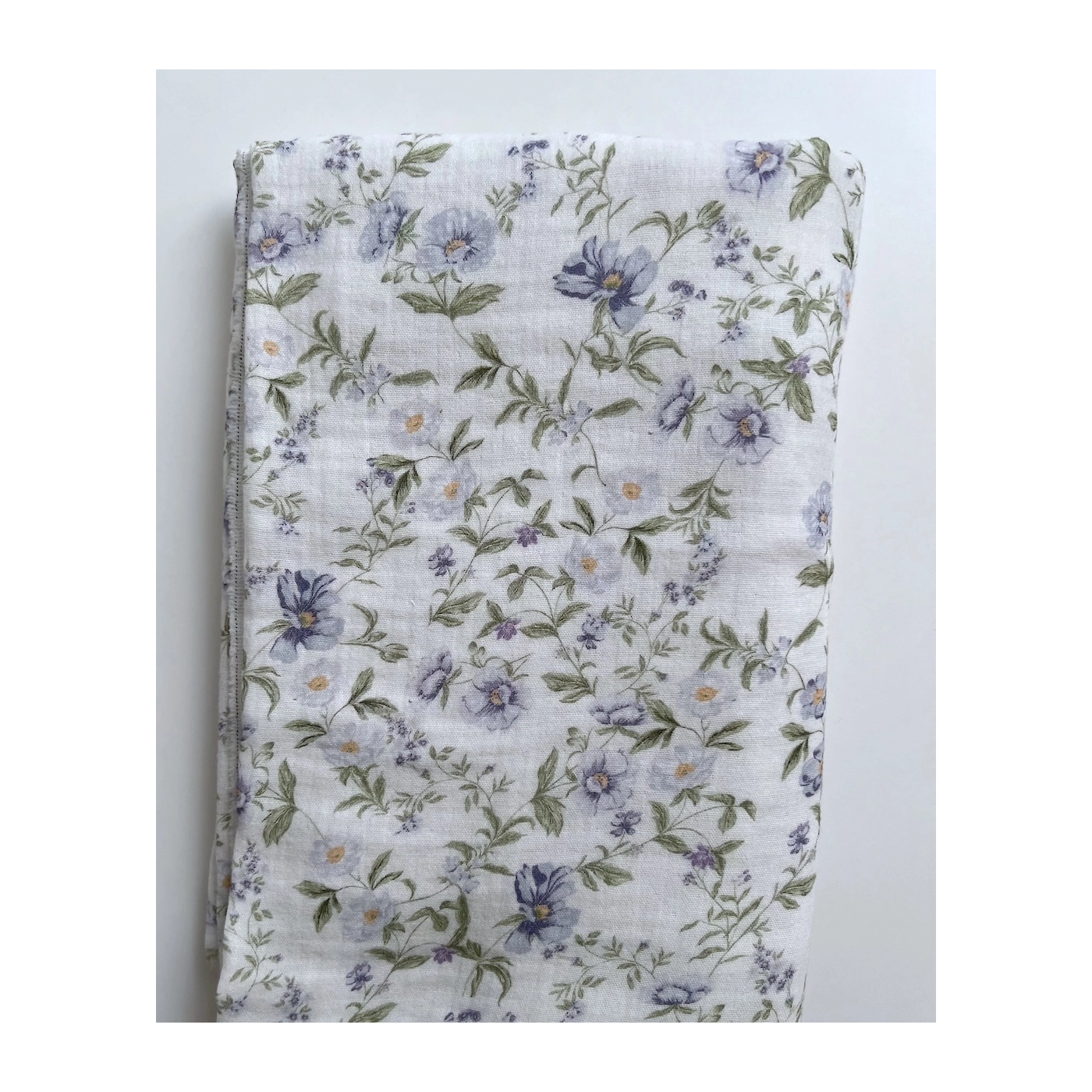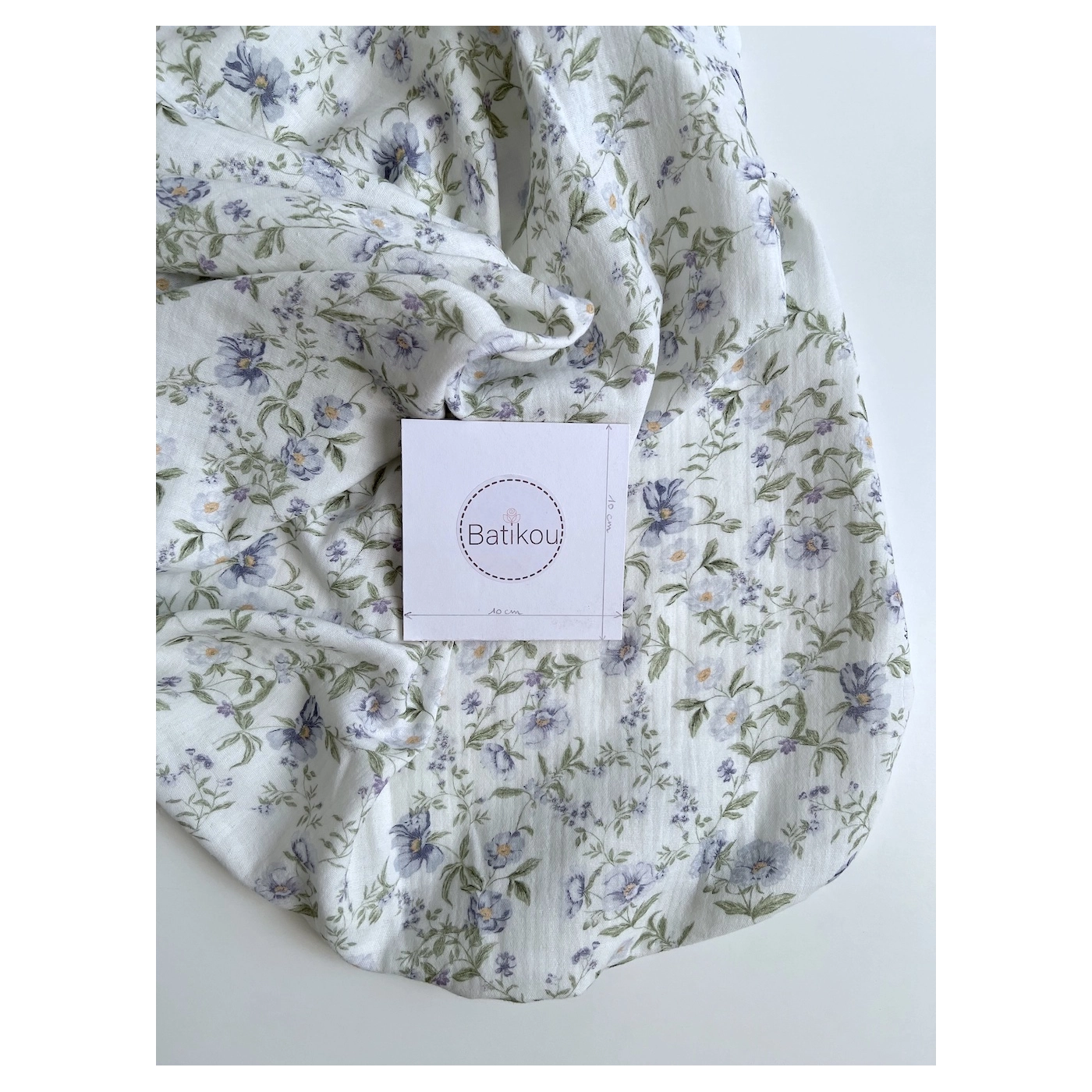 Romy - Double gaze de coton BIO blanc motif bleu poudré et vert