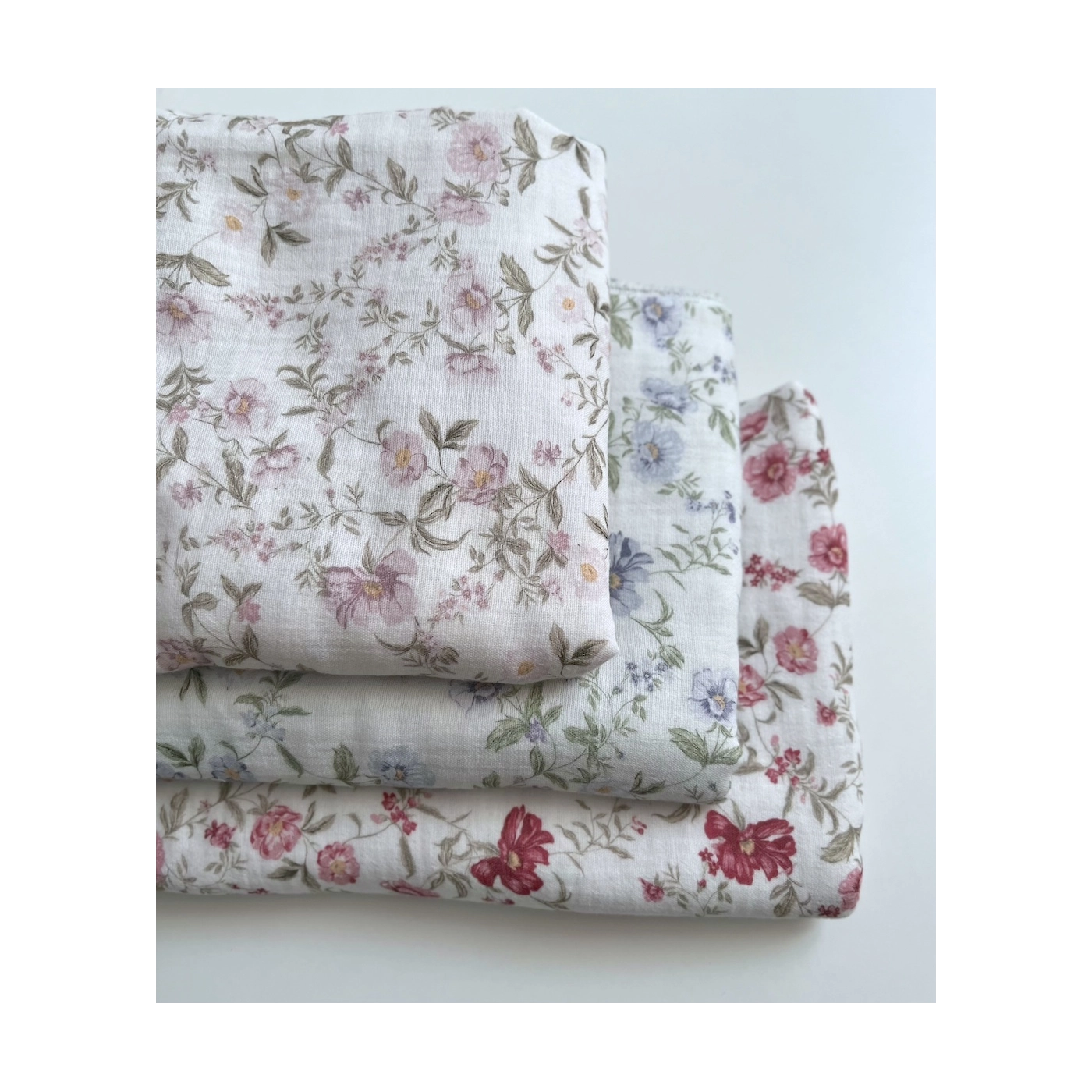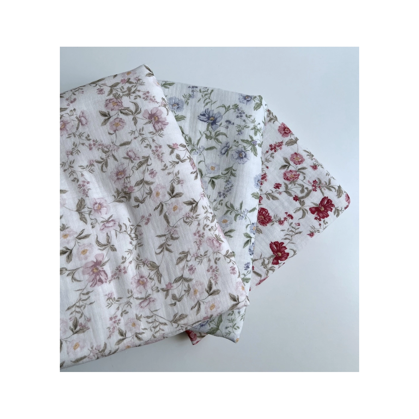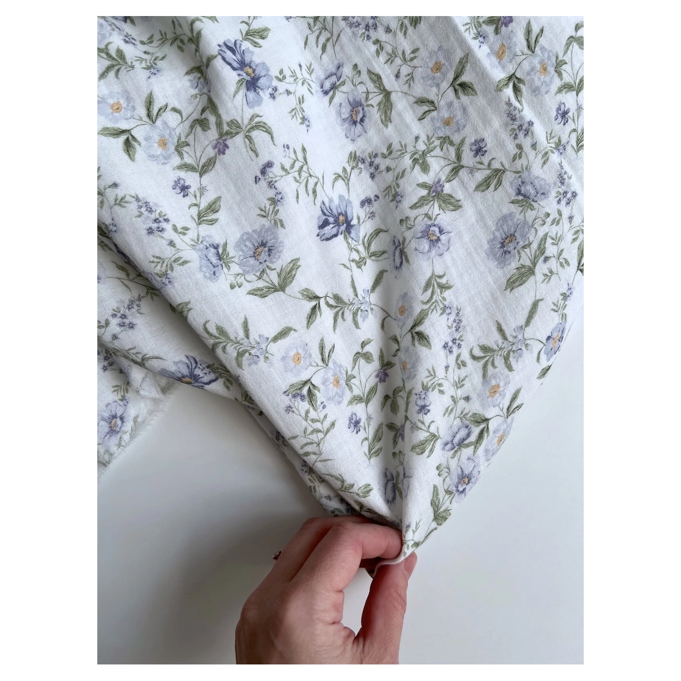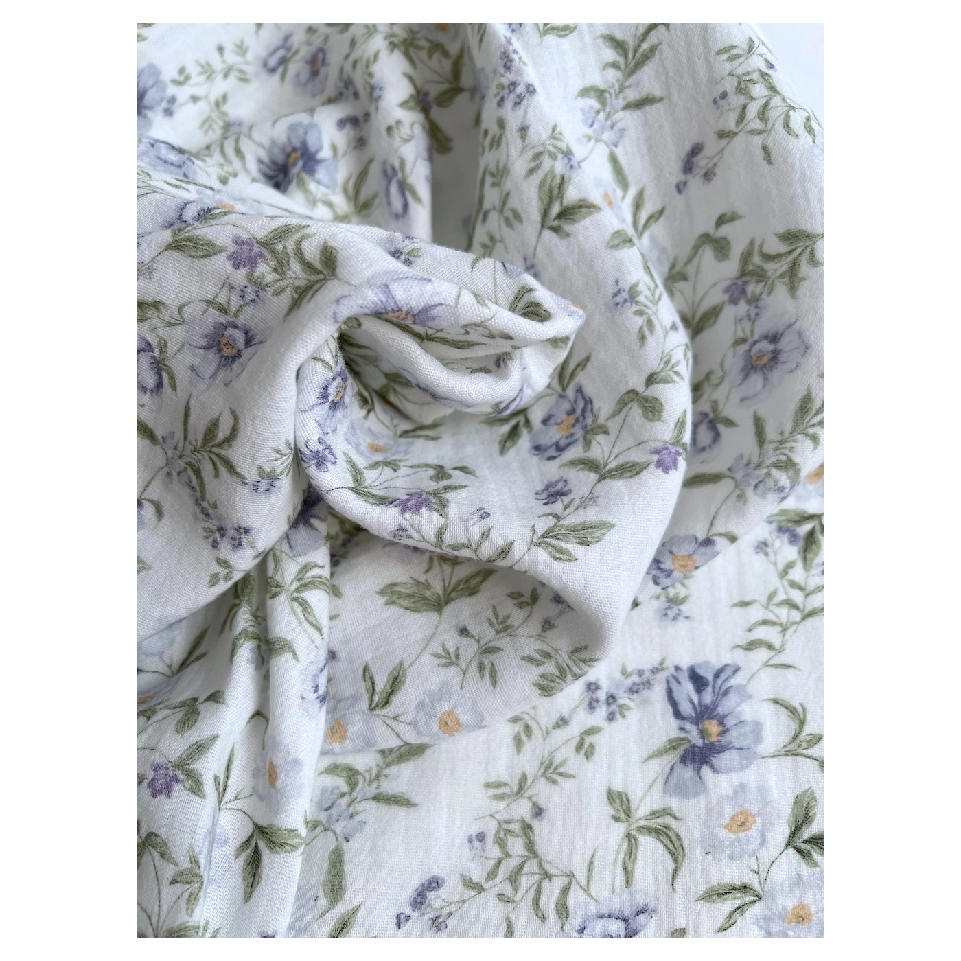 Romy - Double gaze de coton BIO blanc motif bleu poudré et vert