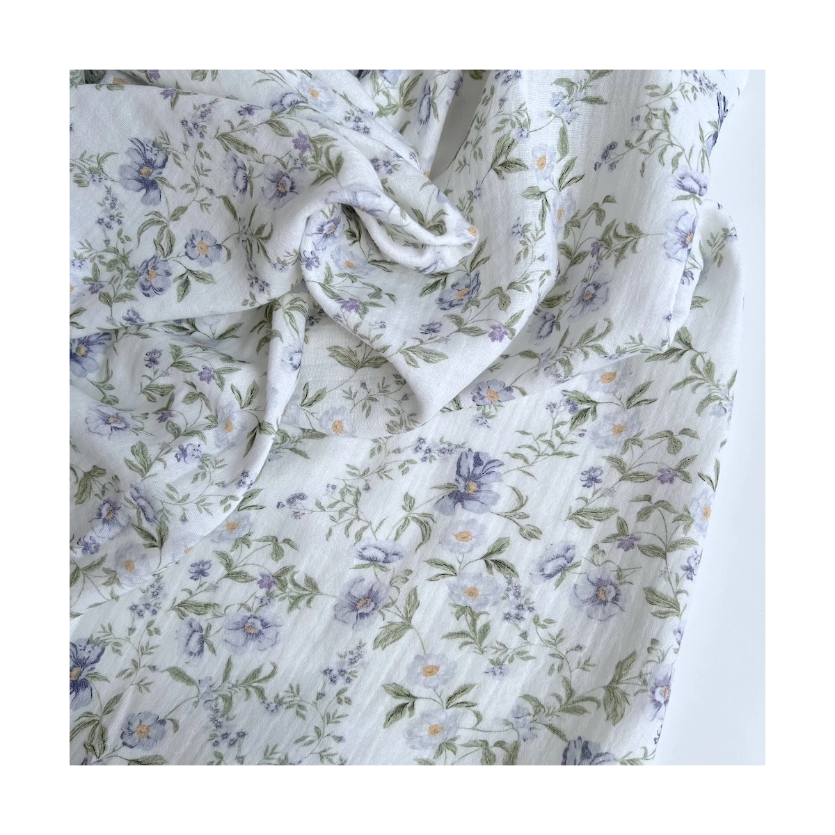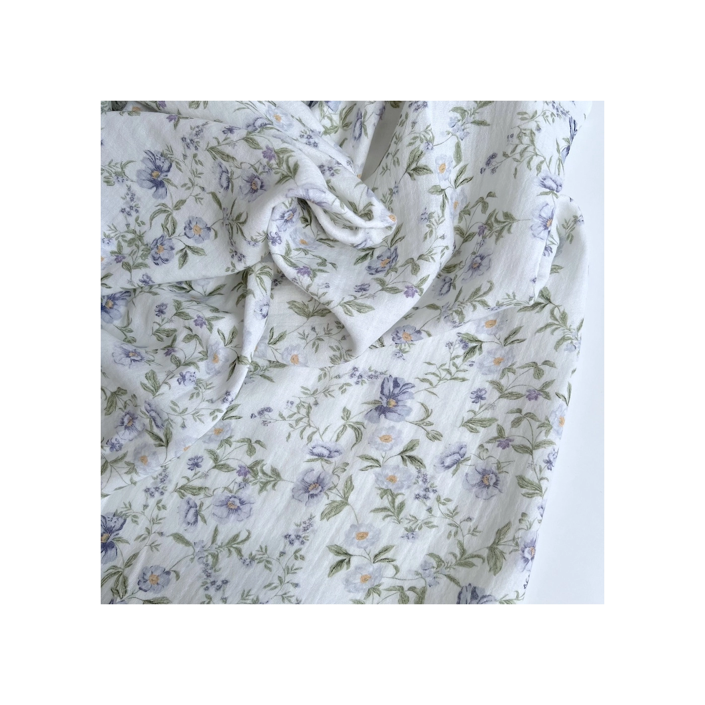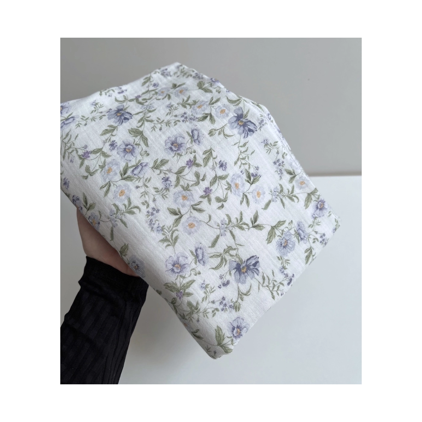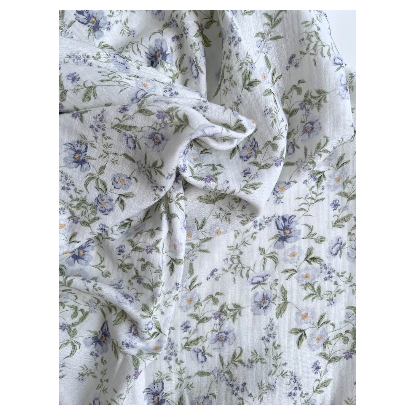 Romy - Double gaze de coton BIO blanc motif bleu poudré et vert