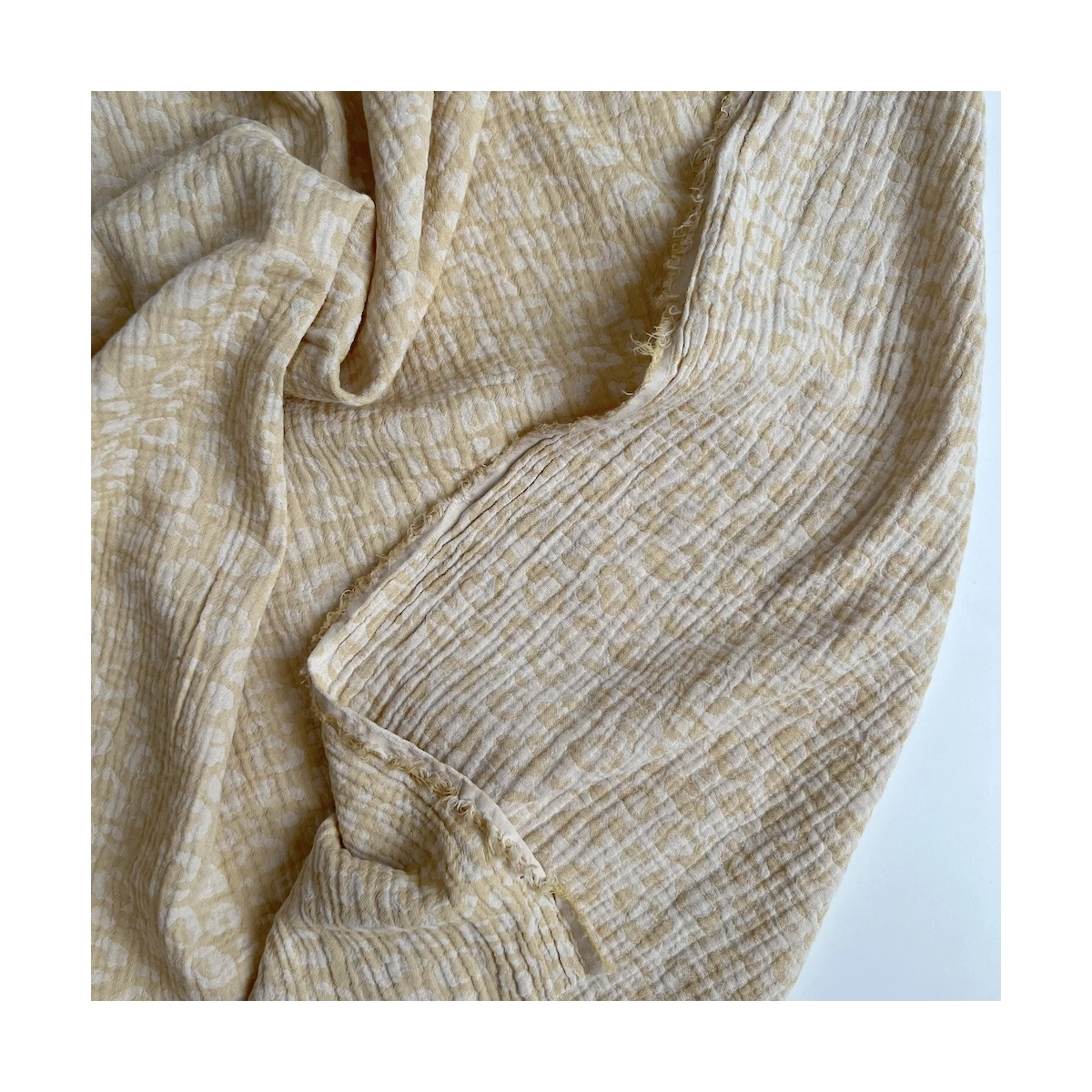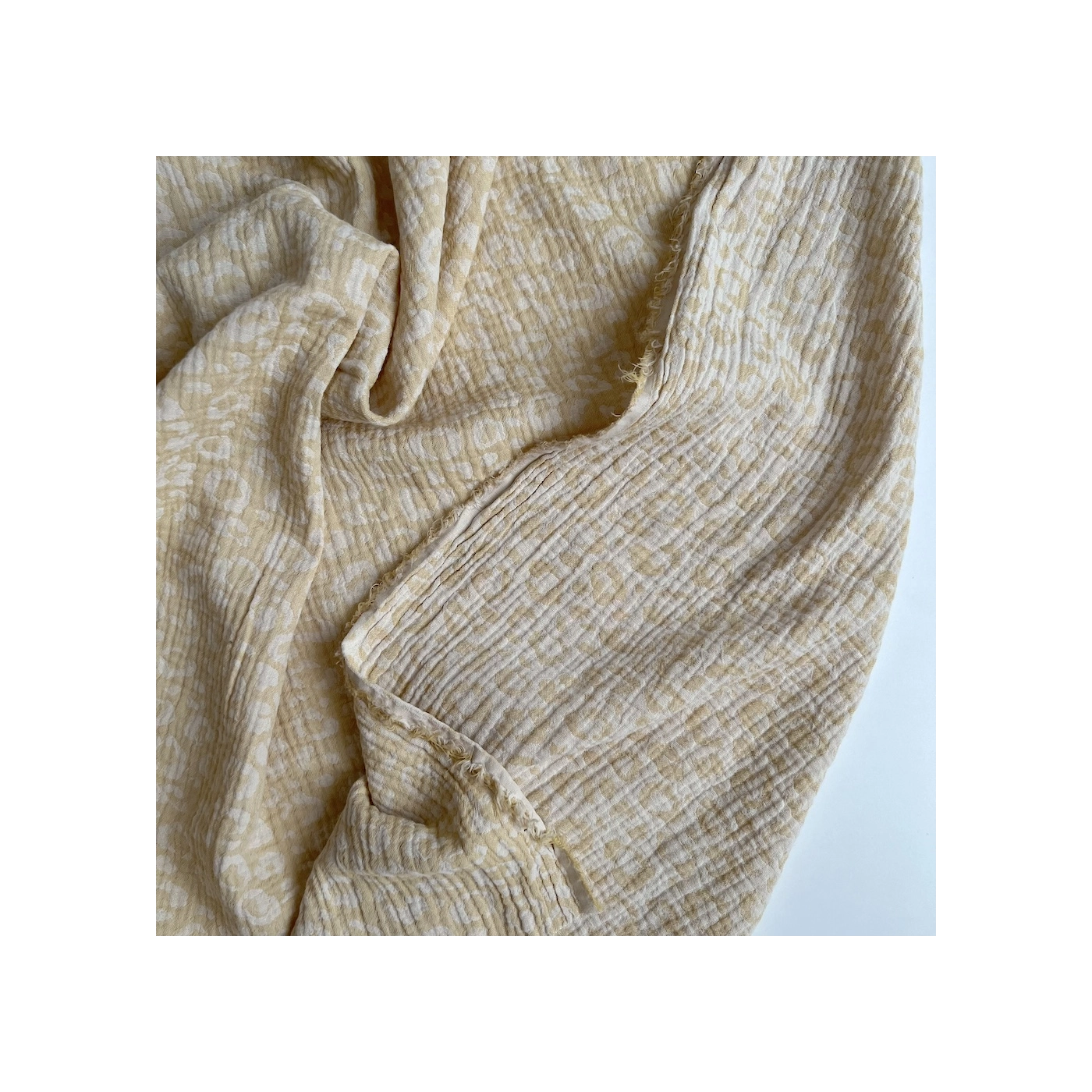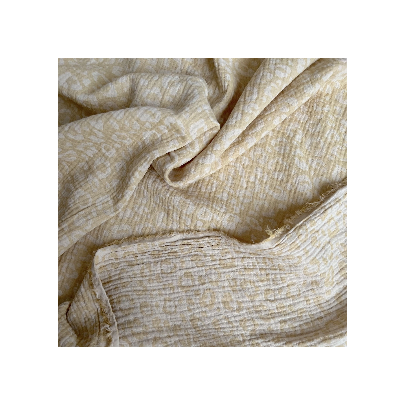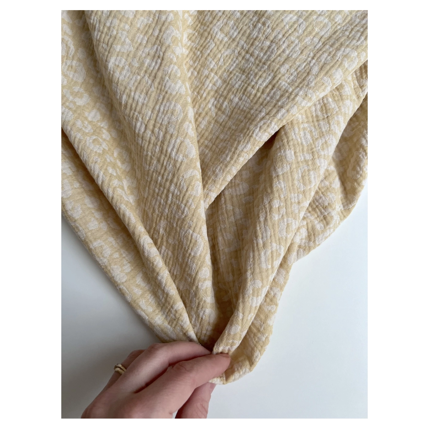 Livia - Double gaze de coton jacquard graou jaune tendre et écru réversible