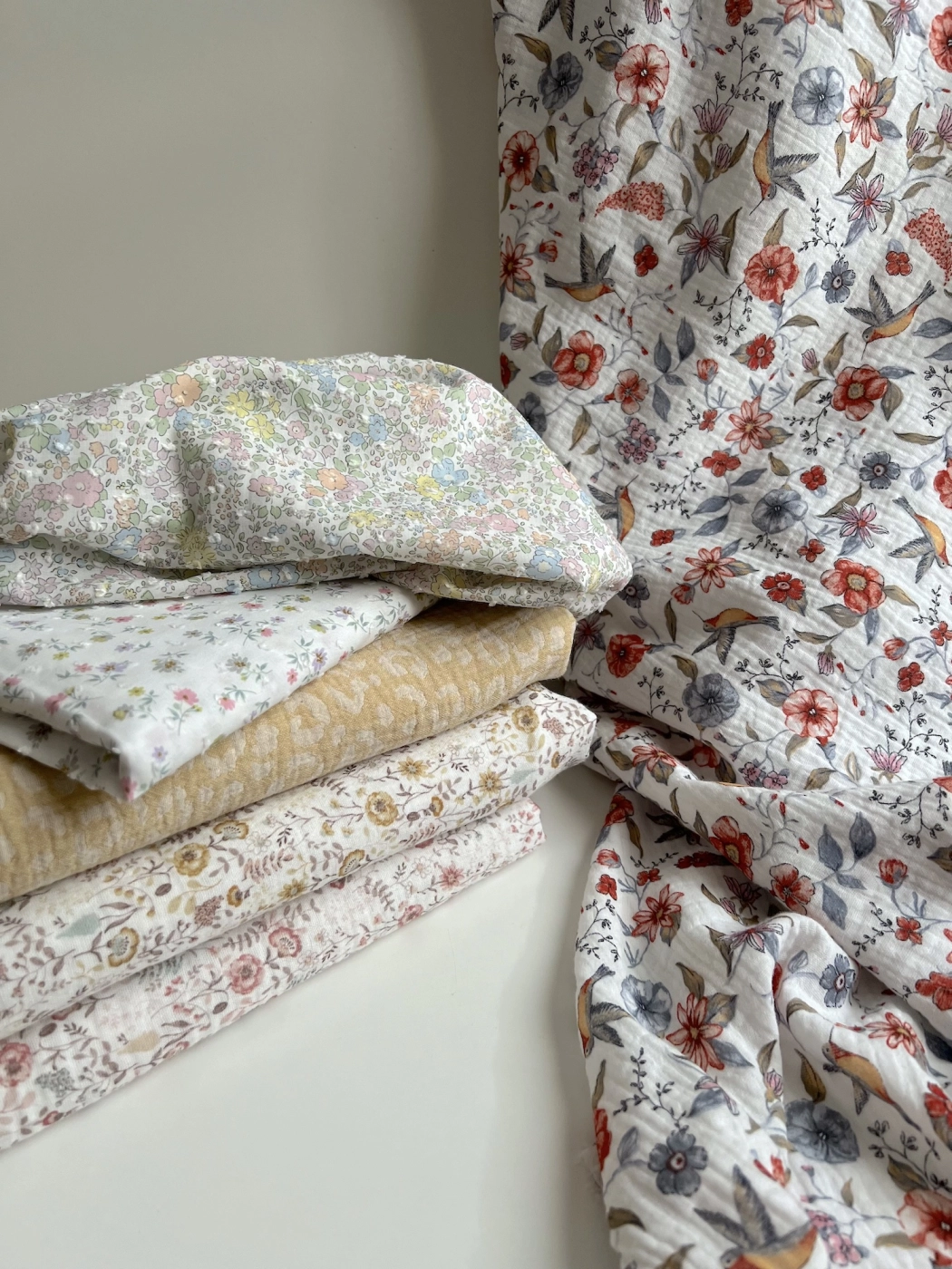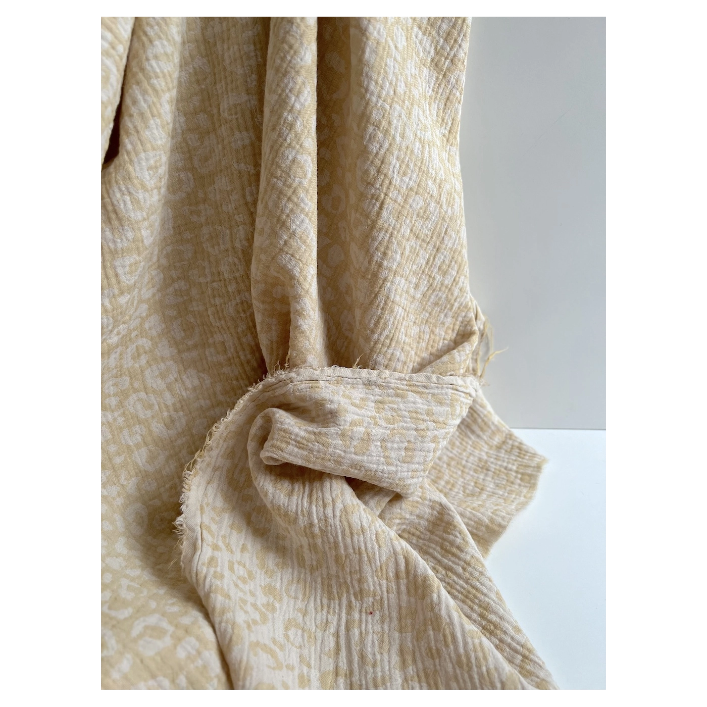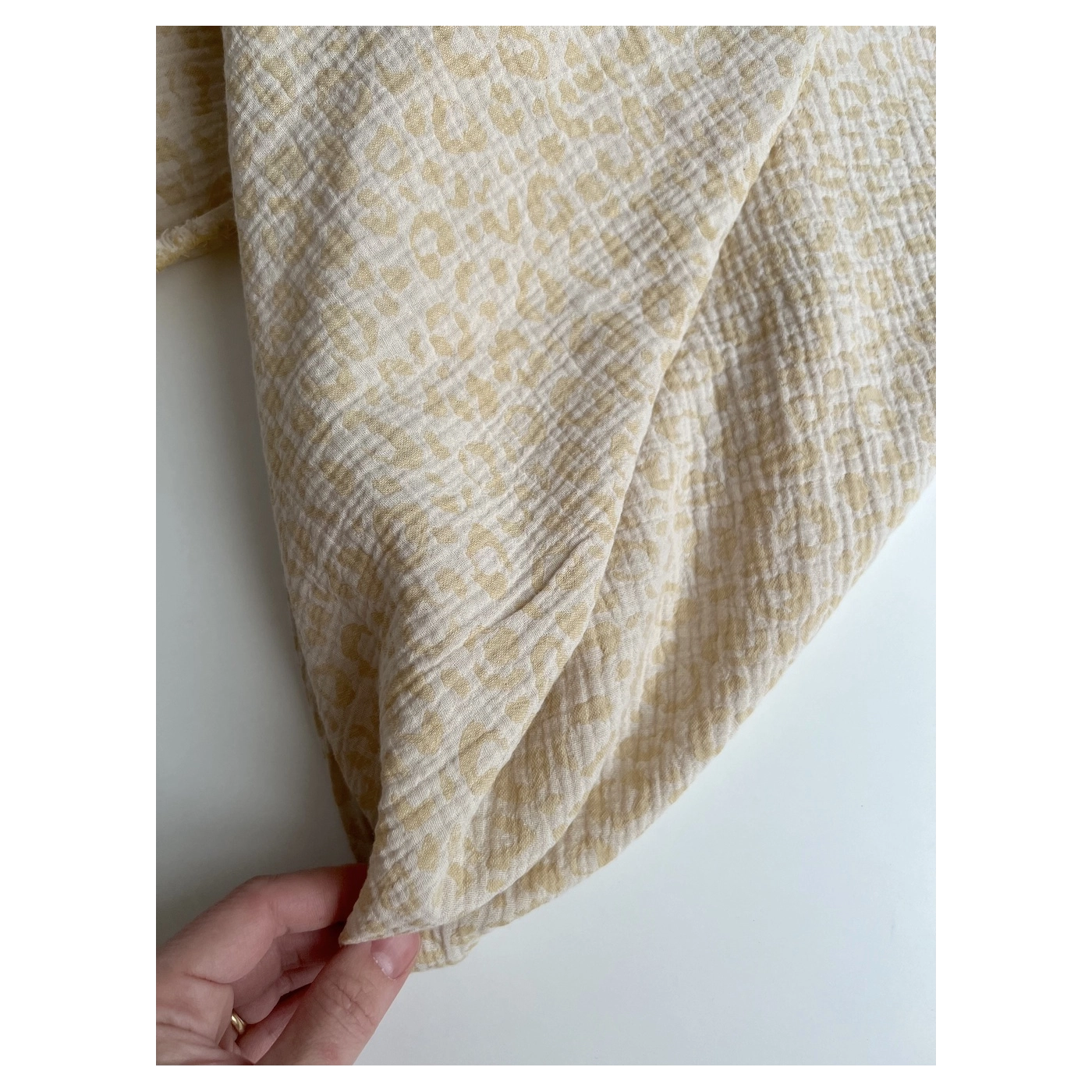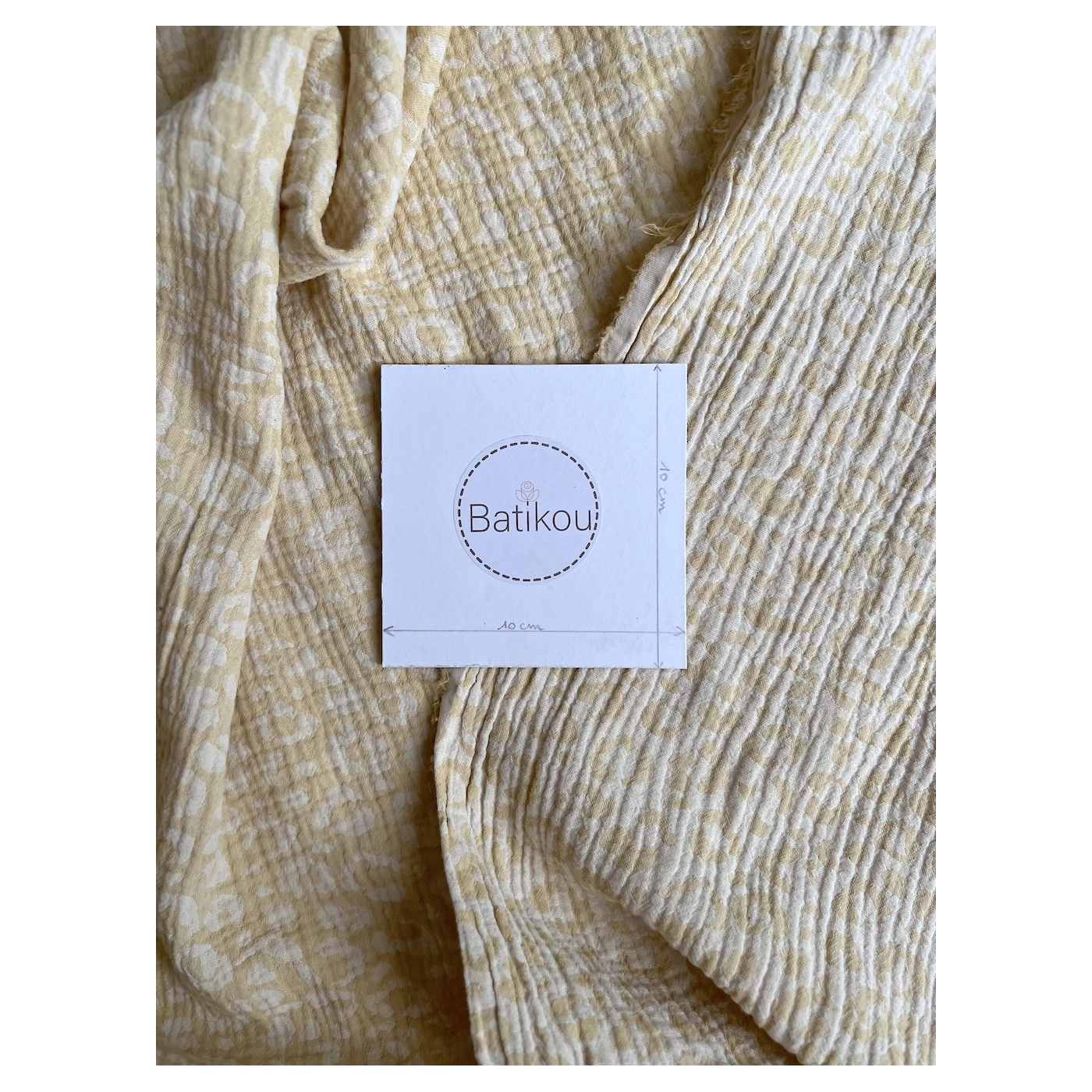 Livia - Double gaze de coton jacquard graou jaune tendre et écru réversible