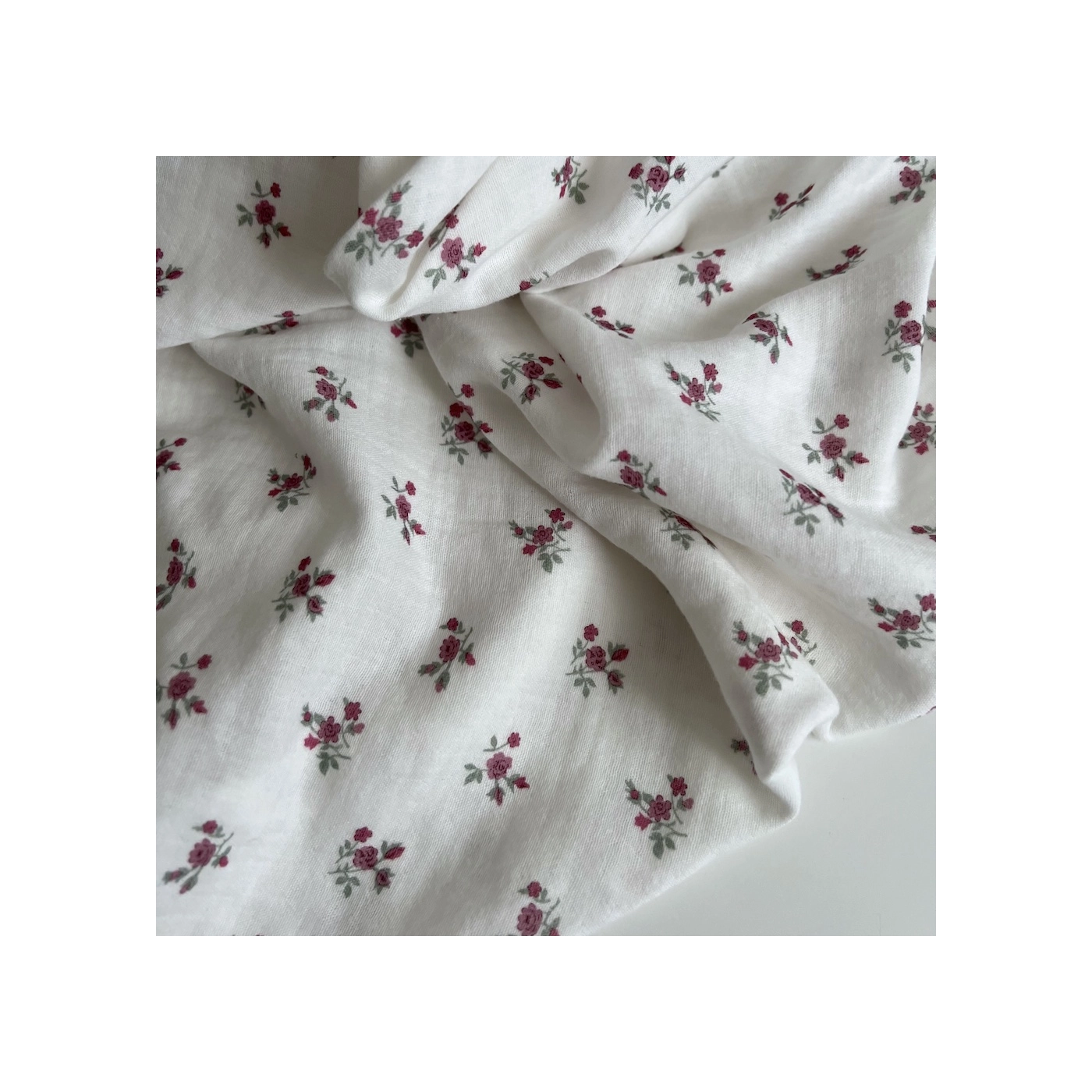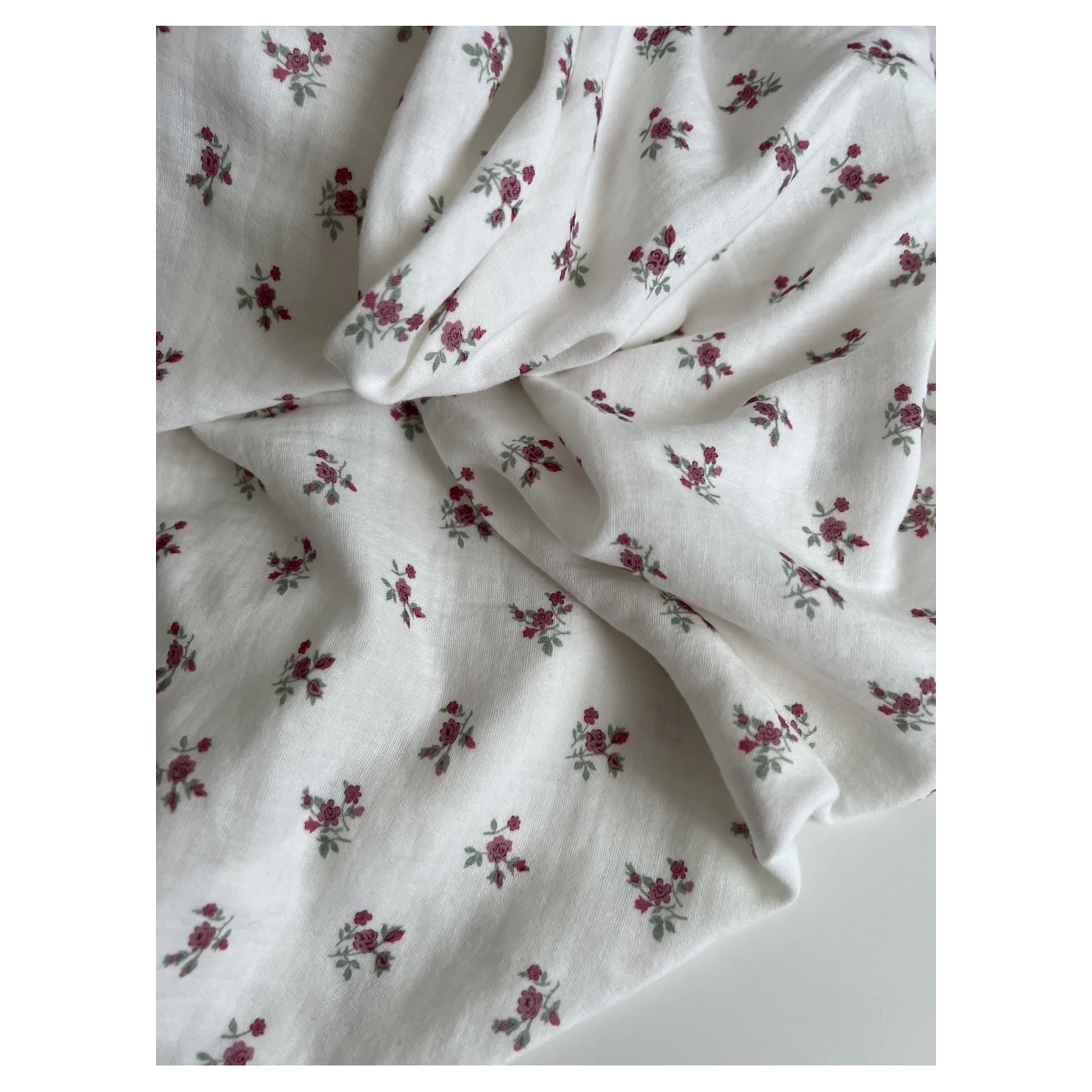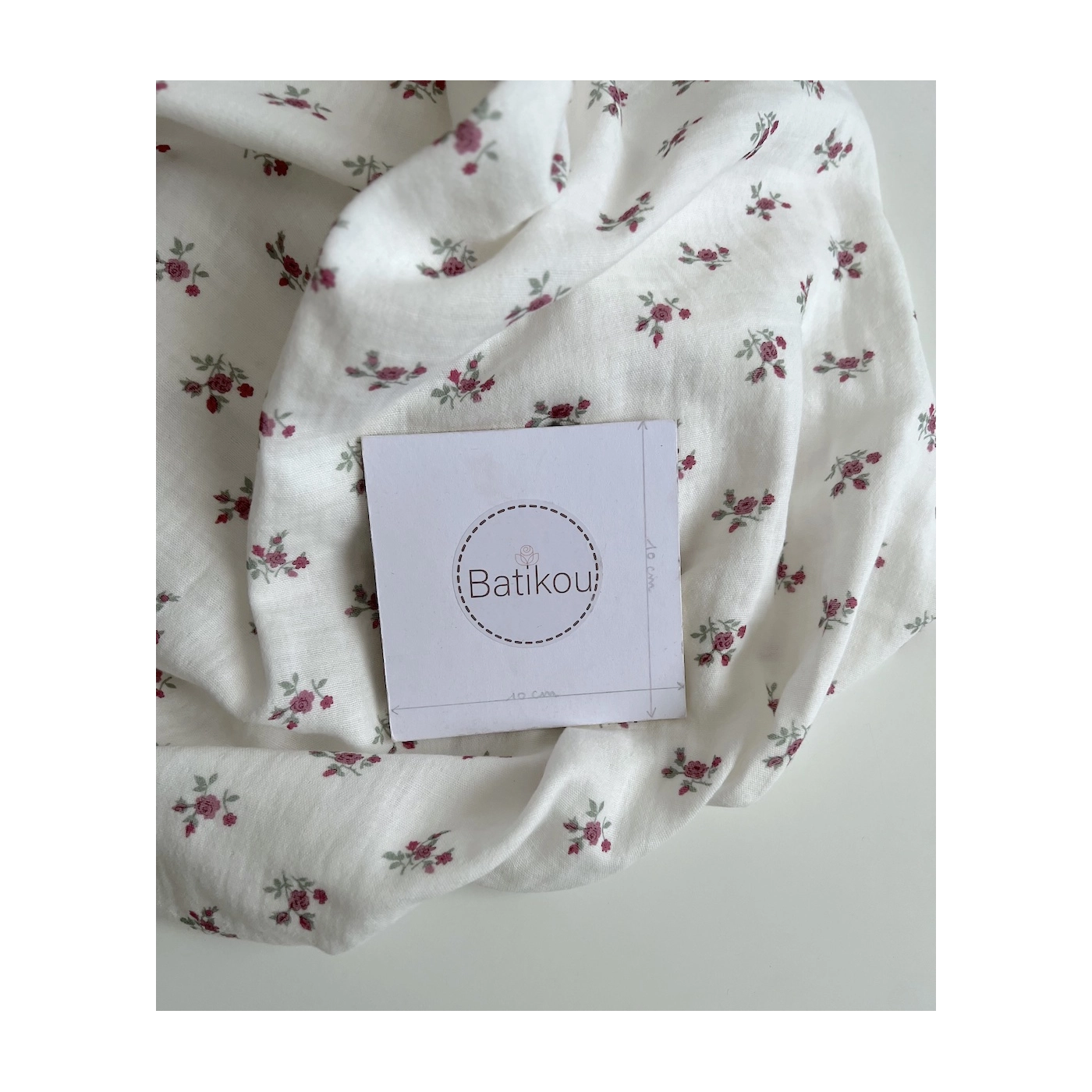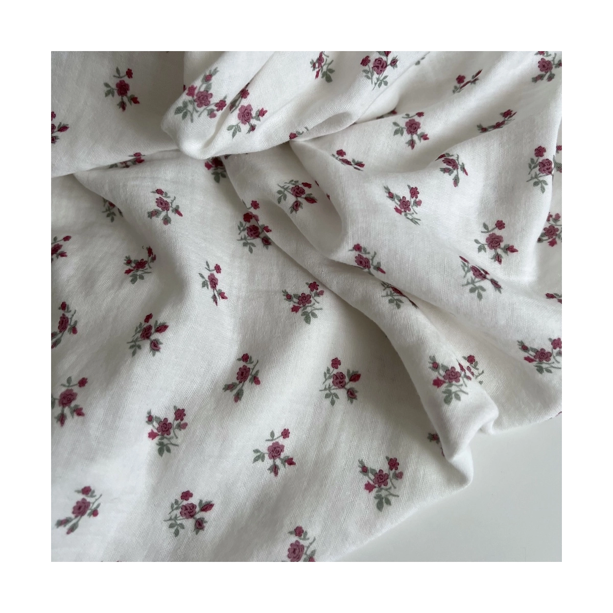 Celine - Double gaze de coton BIO blanc motif fleuri coloris figue