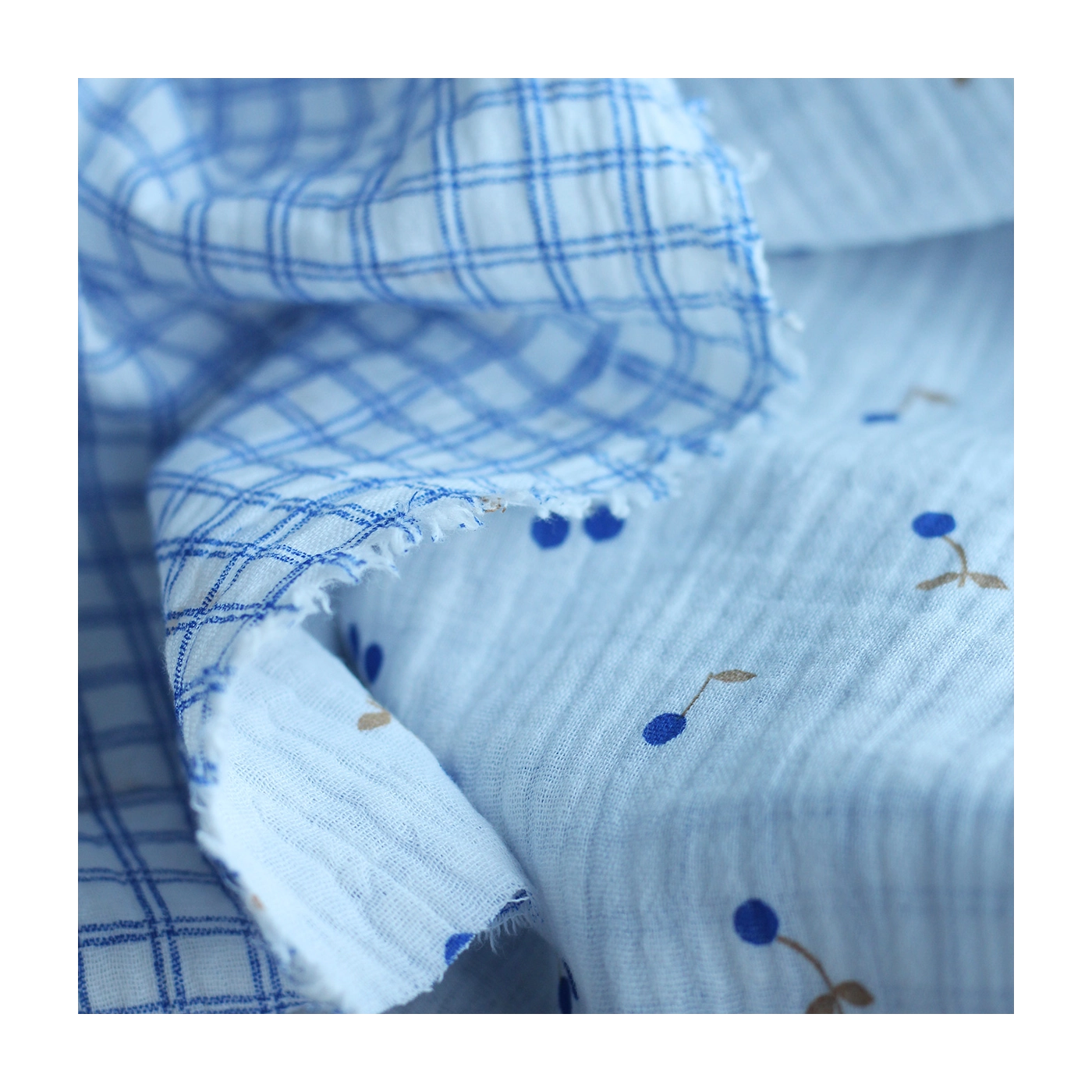 Cherry - Double gaze de coton BIO à motifs imprimés