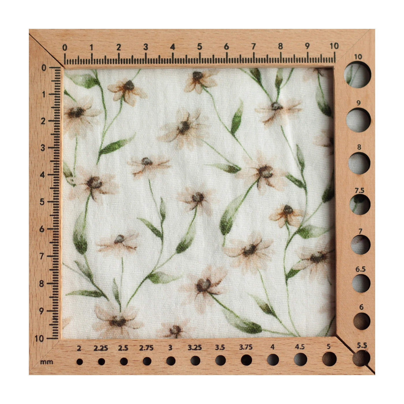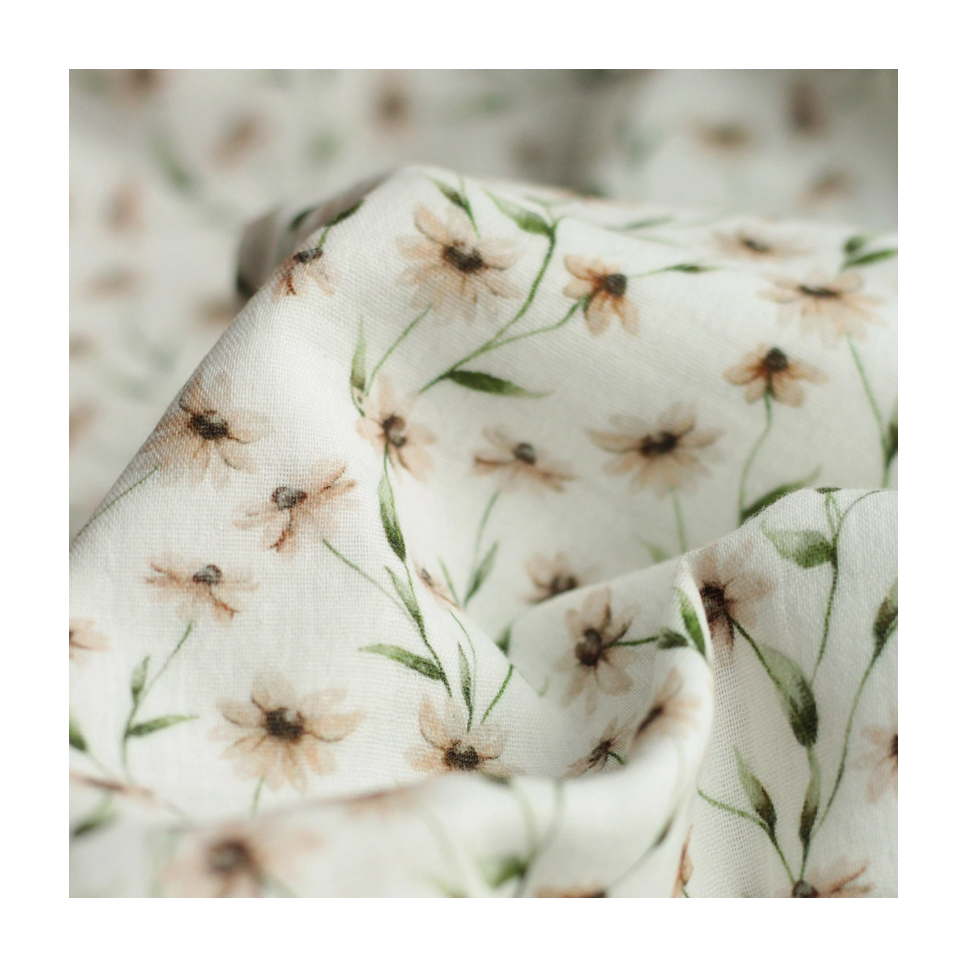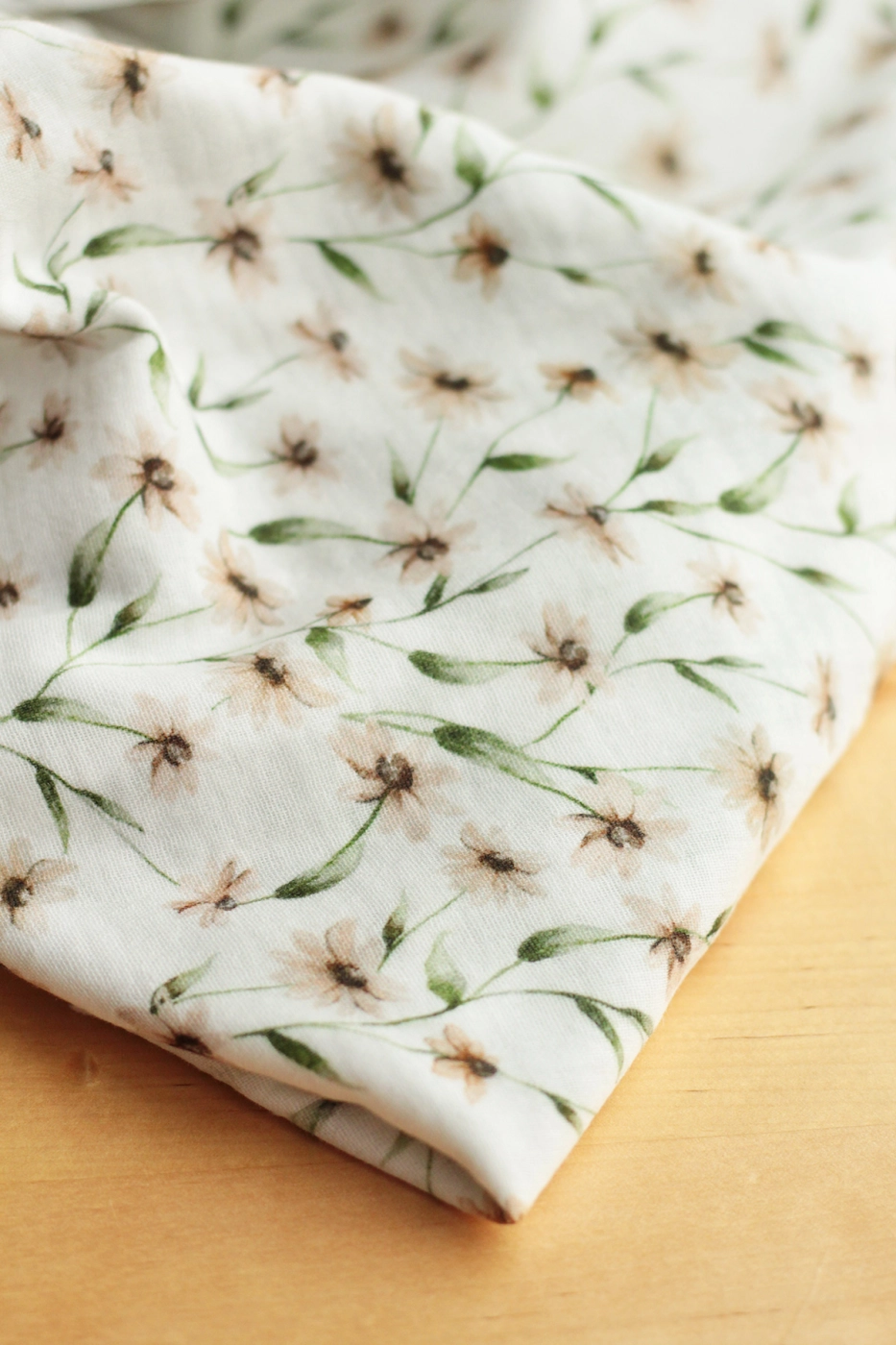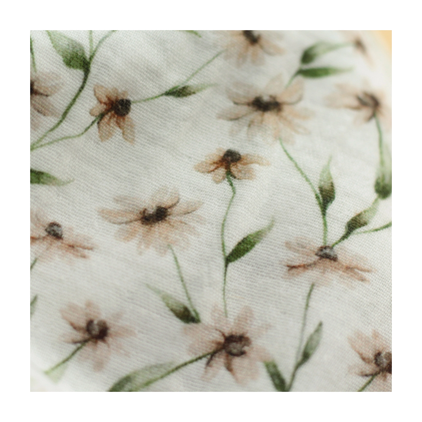 Helene - Double gaze de coton BIO blanc imprimé fleuri ocre
