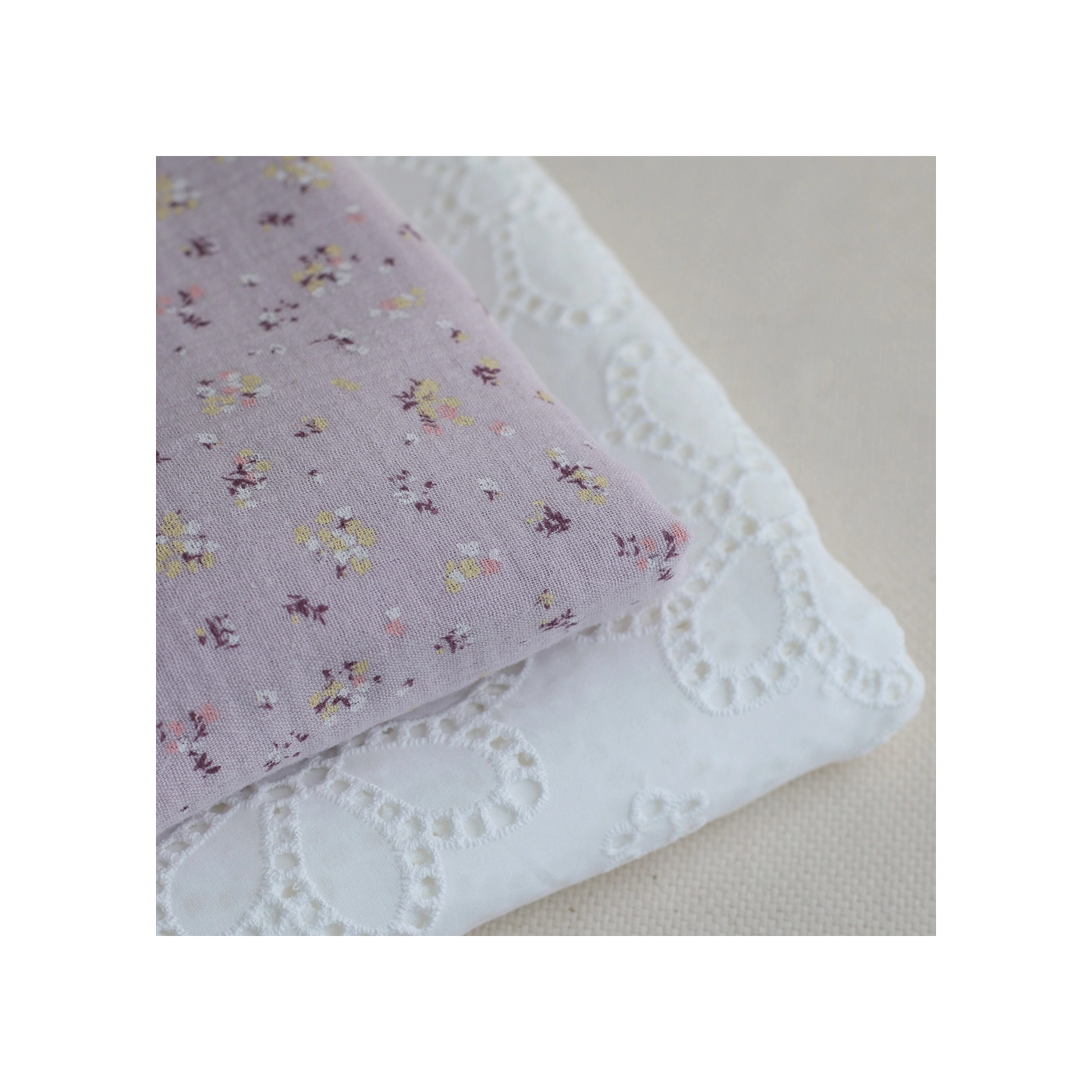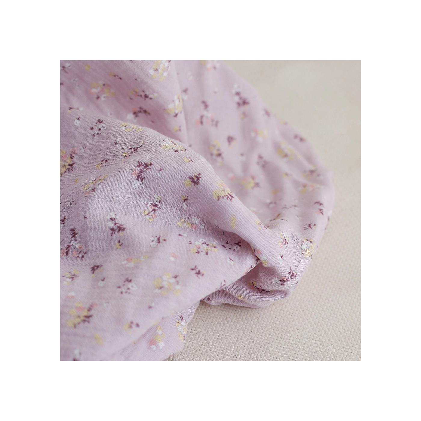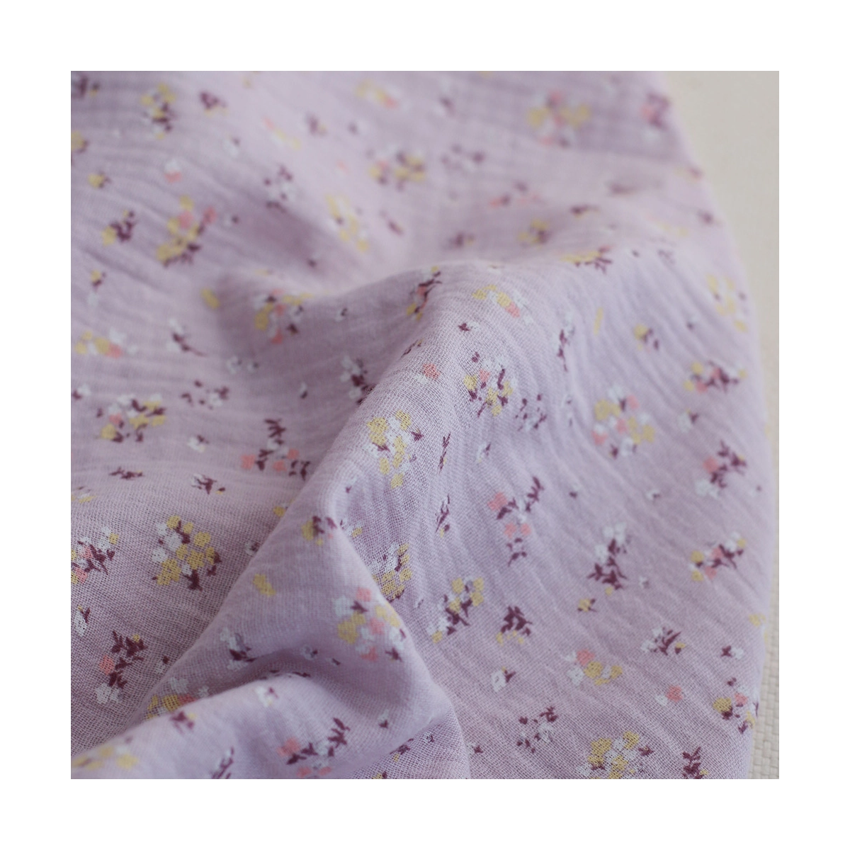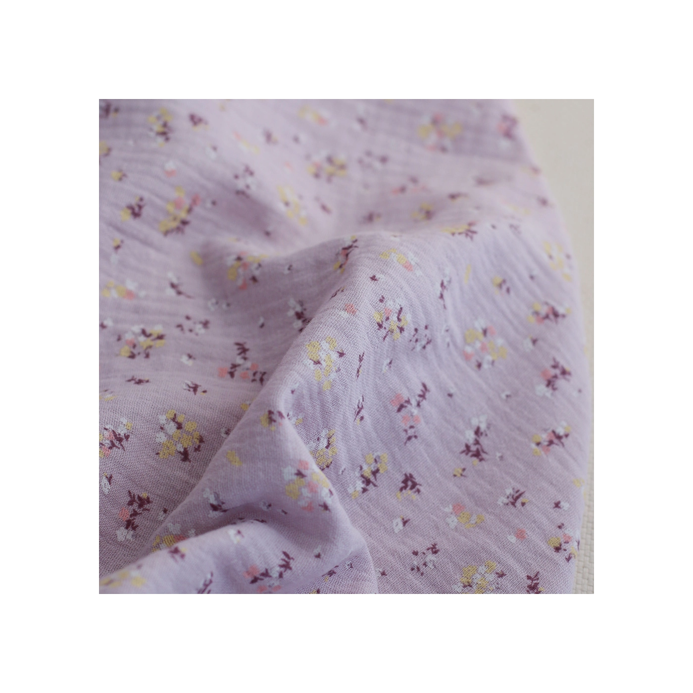 Margot - Double gaze de coton coloris fond parme motif fleuri