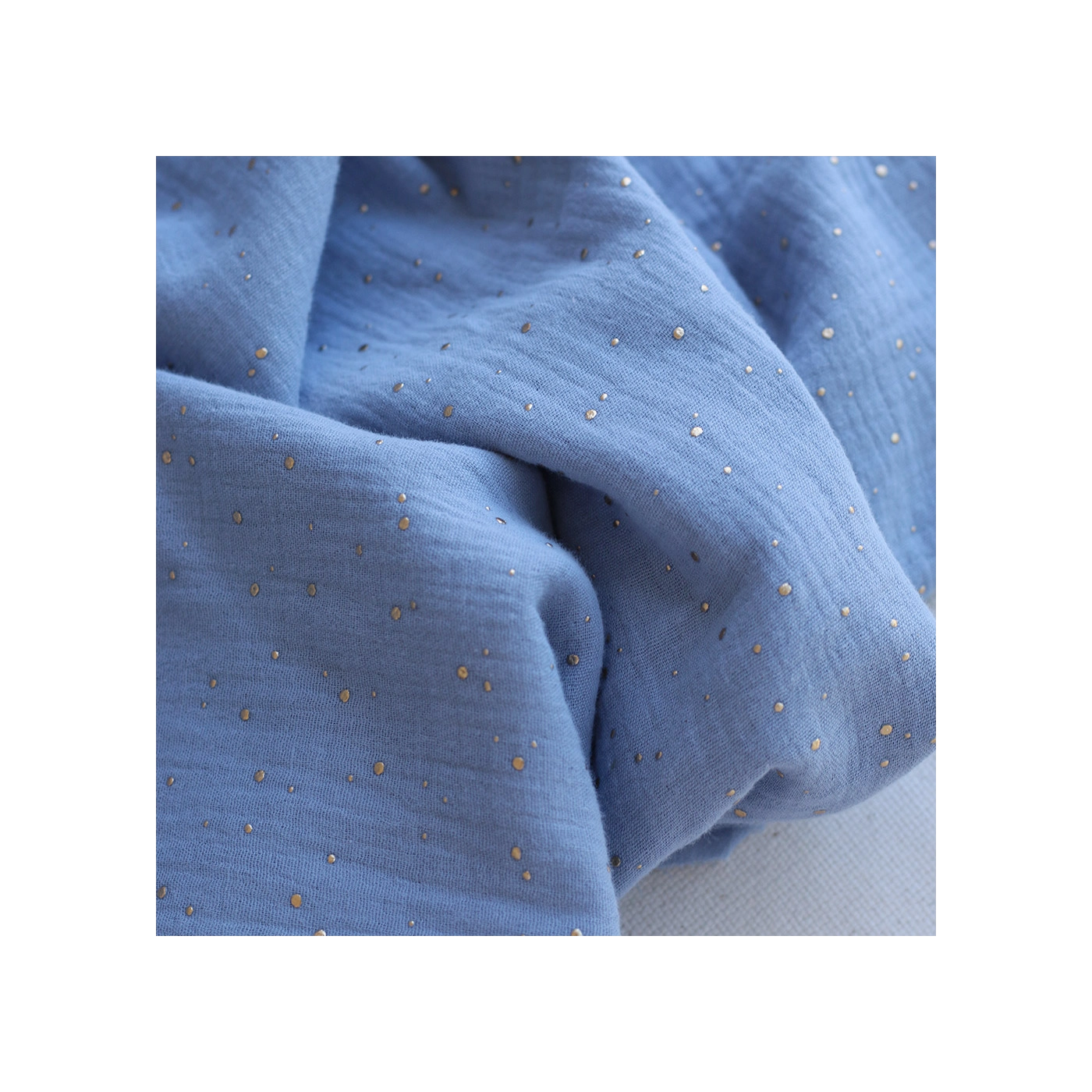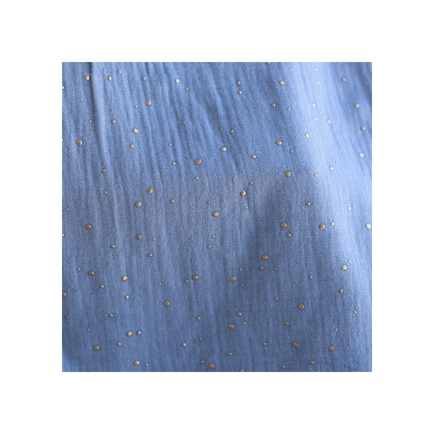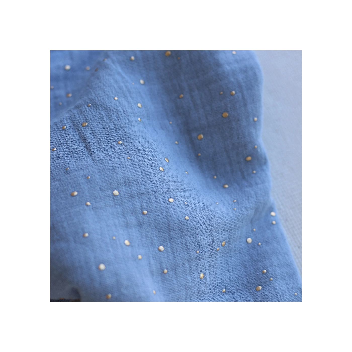 Double gaze de coton pois dorés fond bleu nuage
