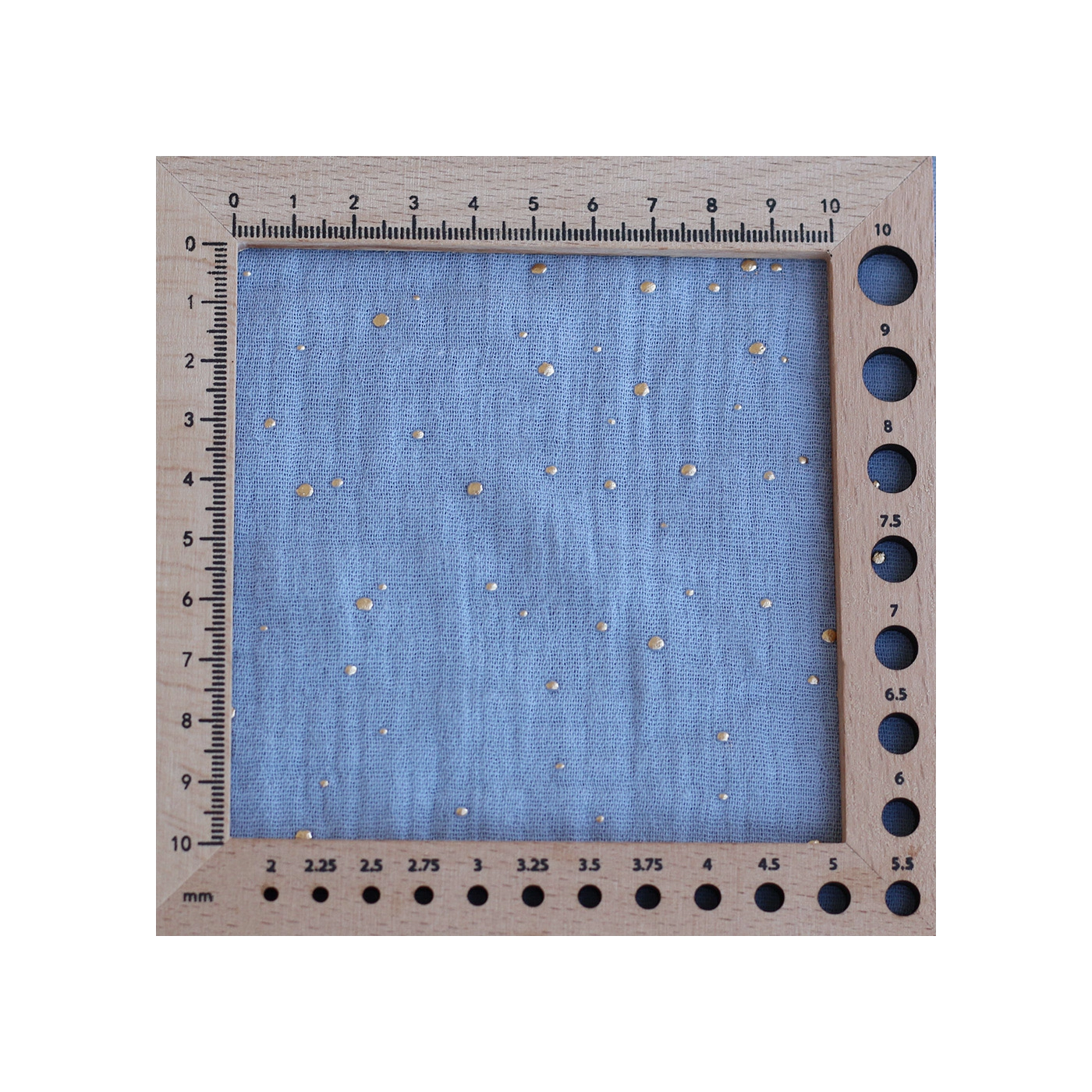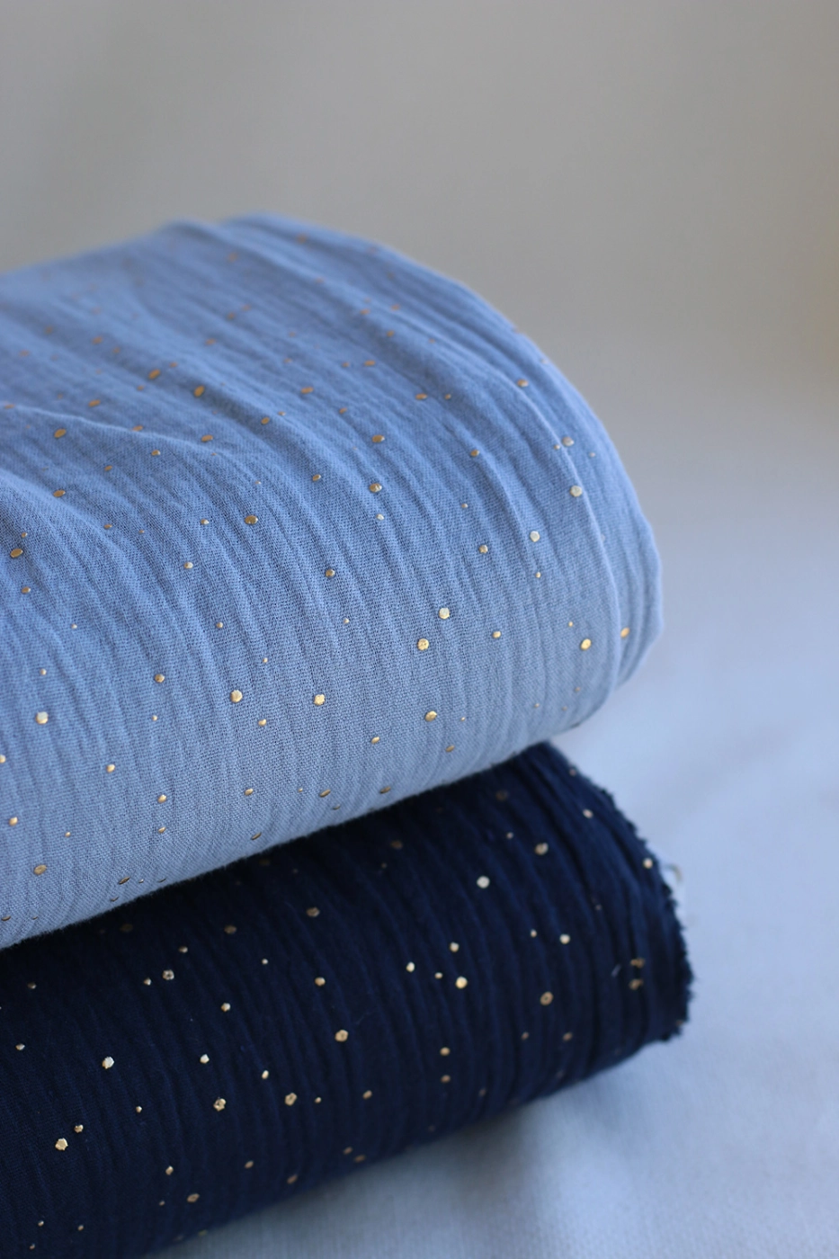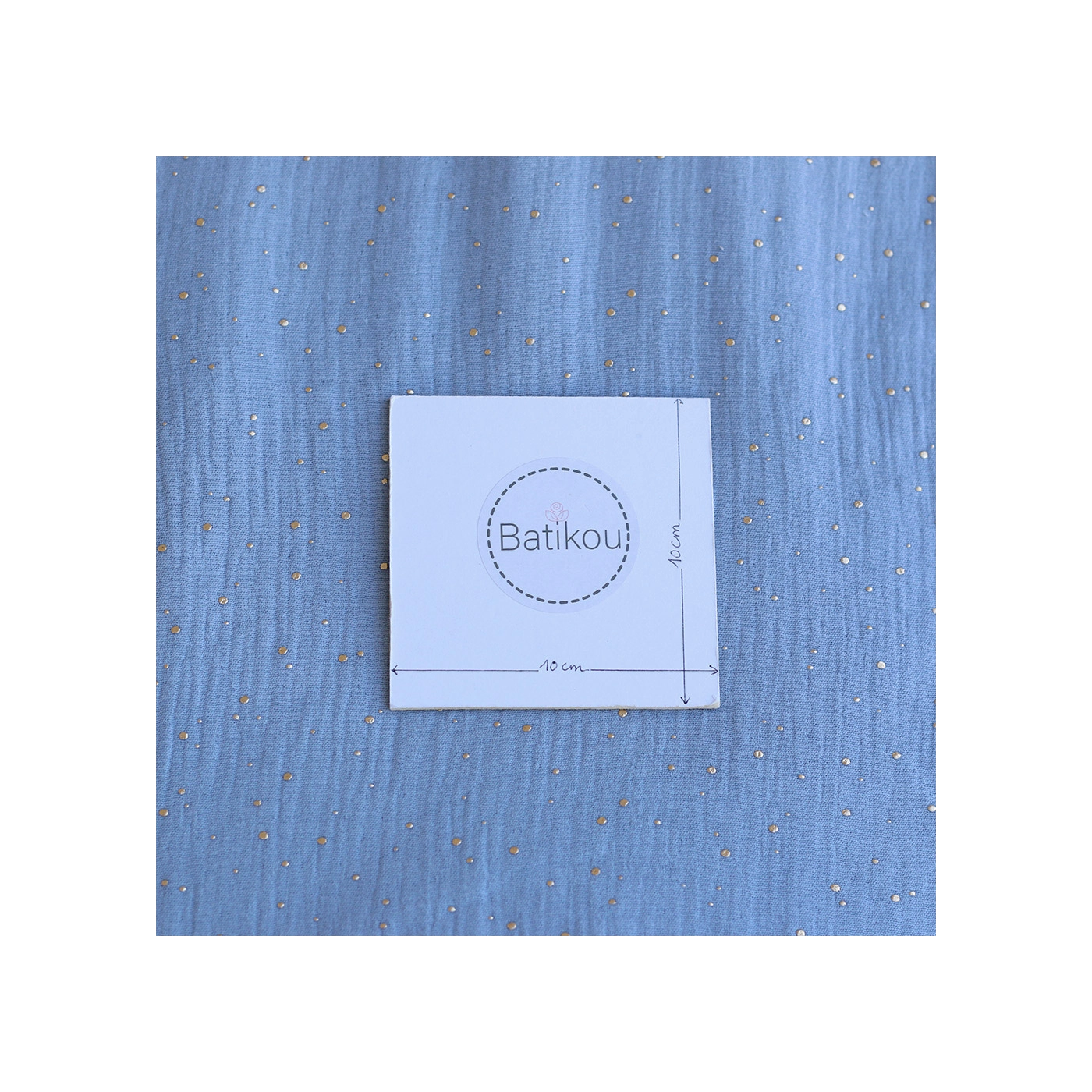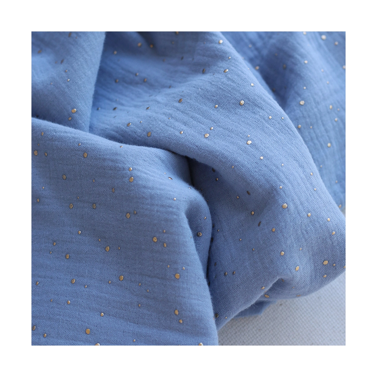 Double gaze de coton pois dorés fond bleu nuage