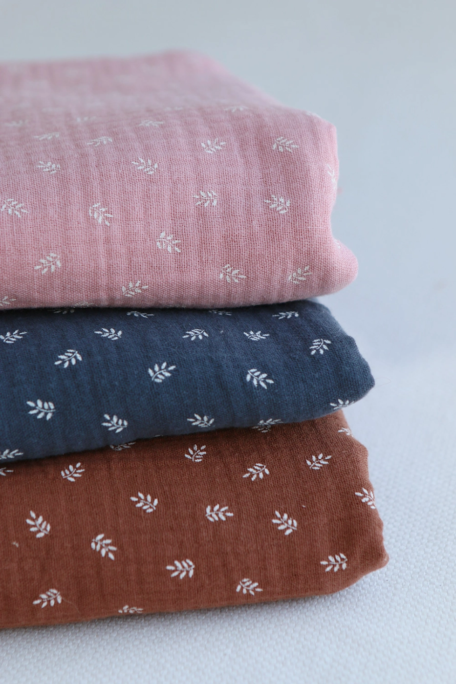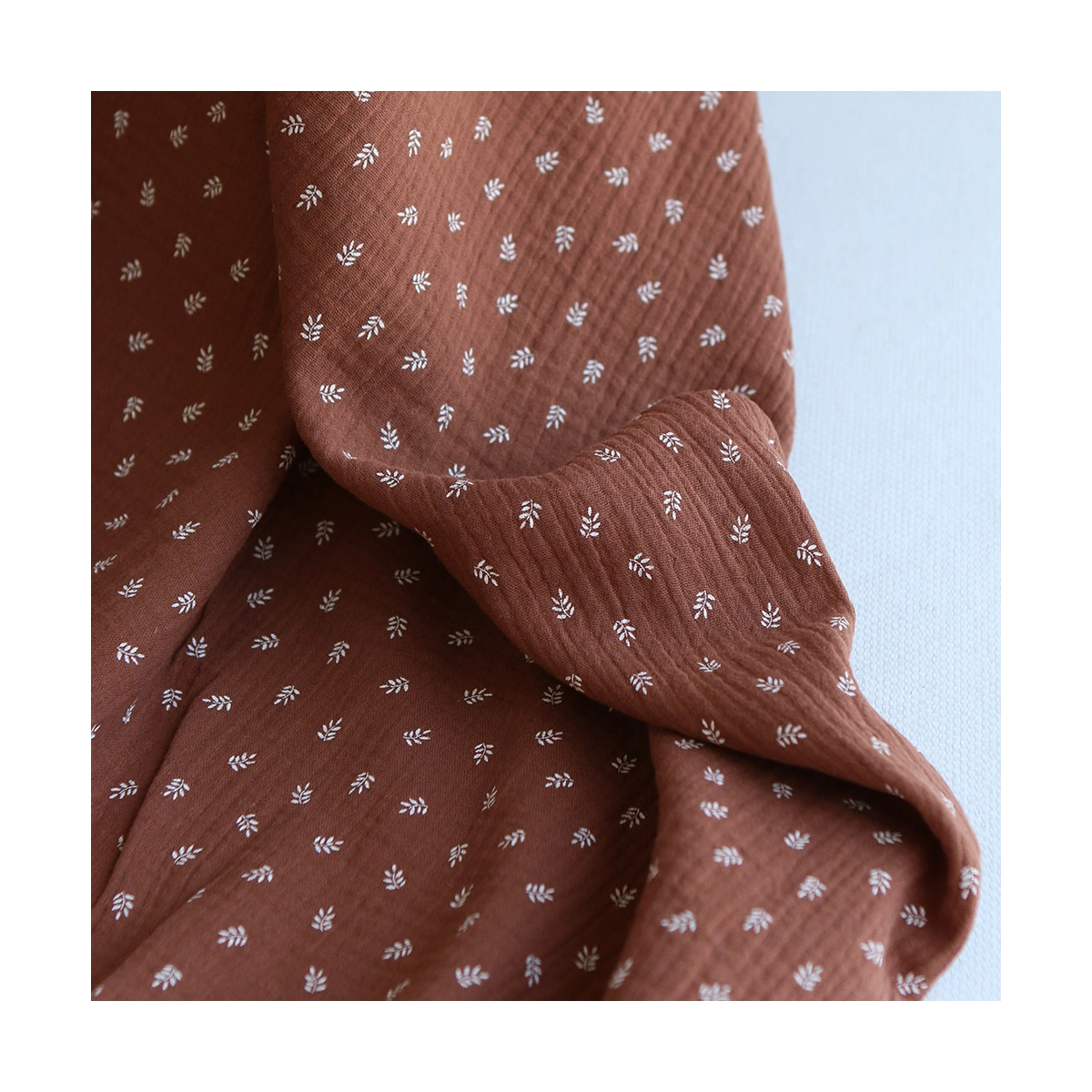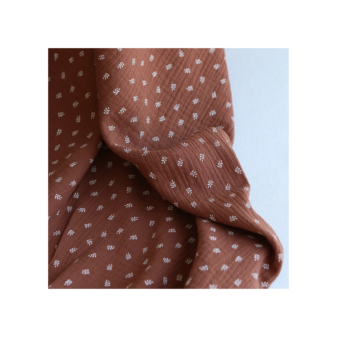 Sacha - Double gaze de coton motif feuilles fond noisette