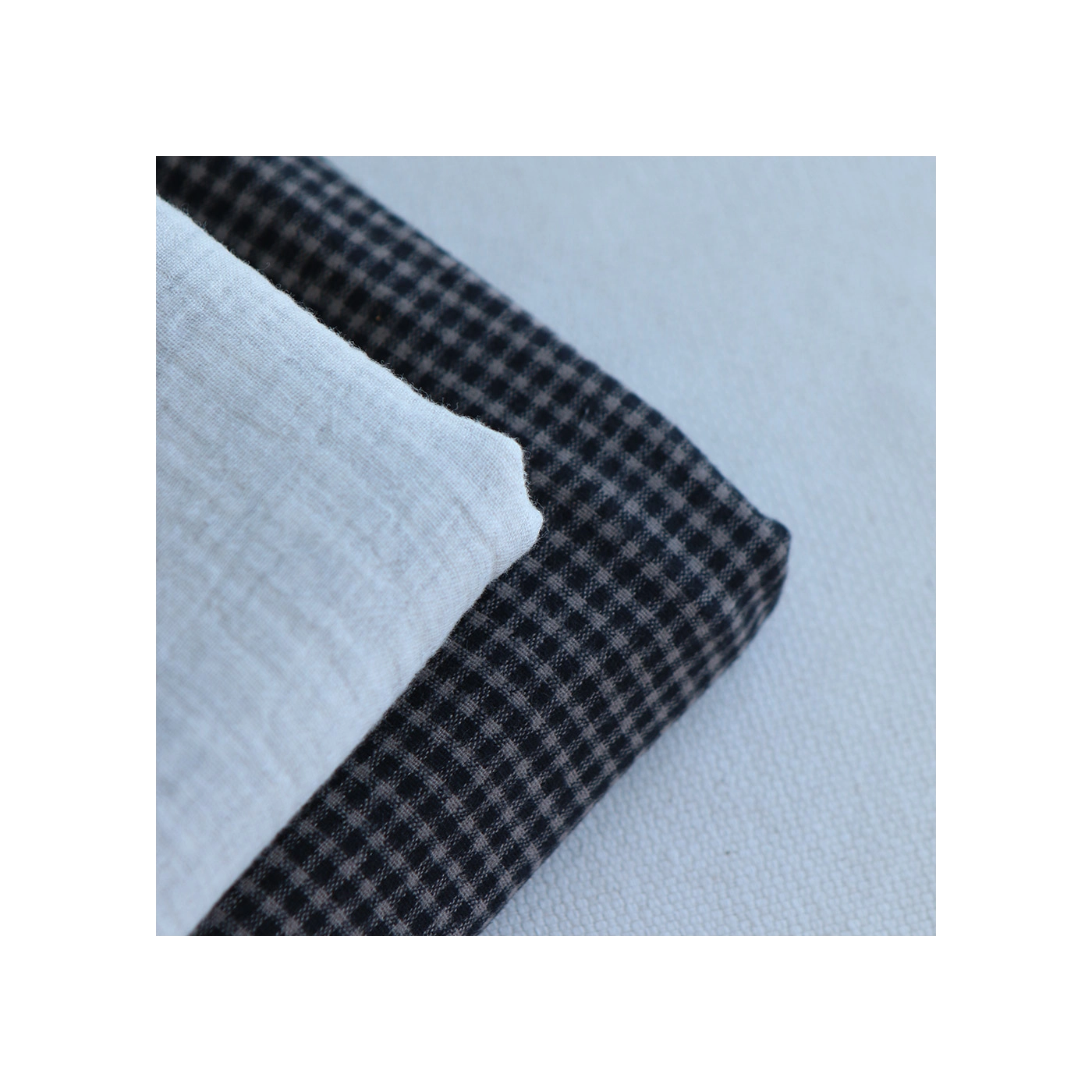 La photo avec le carré blanc permet d'avoir un repère de mesure (le carré fait 10cm de côté) et de couleur, en effet il est blanc optique. Cette indication peut vous permettre de mieux percevoir le rendu du tissu.