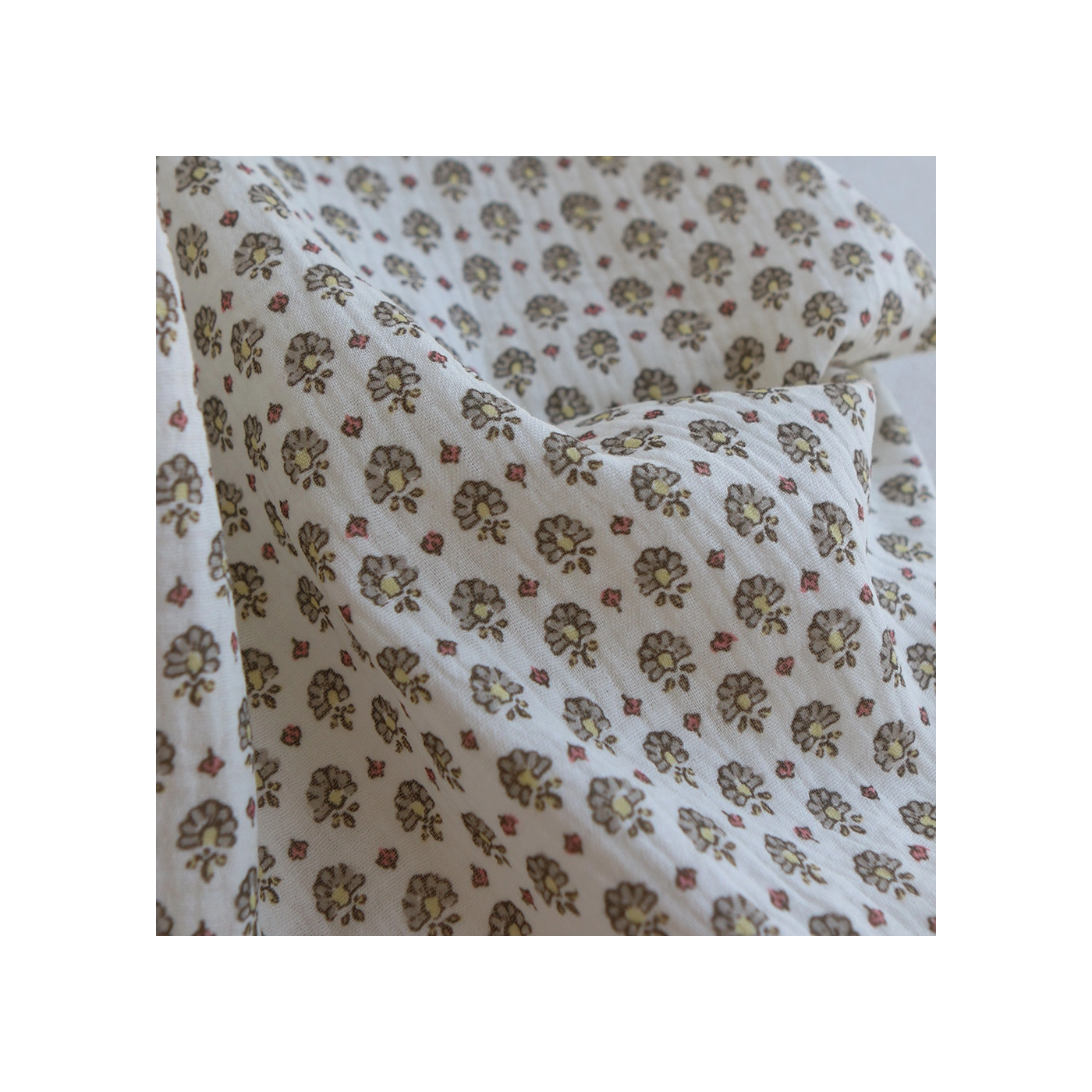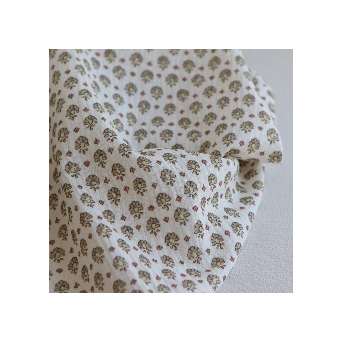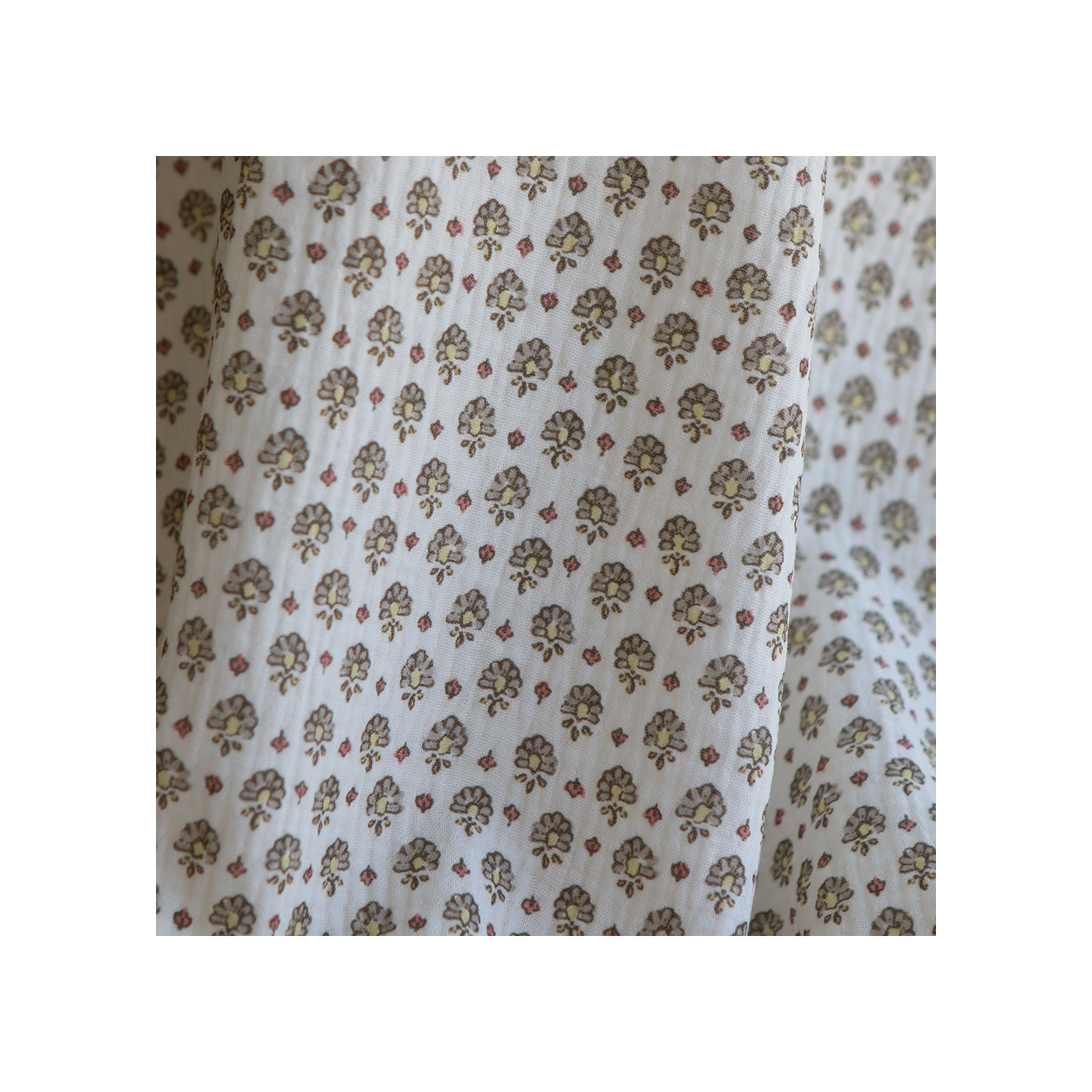 Leela - Double gaze de coton motif fleuri fond blanc cassé