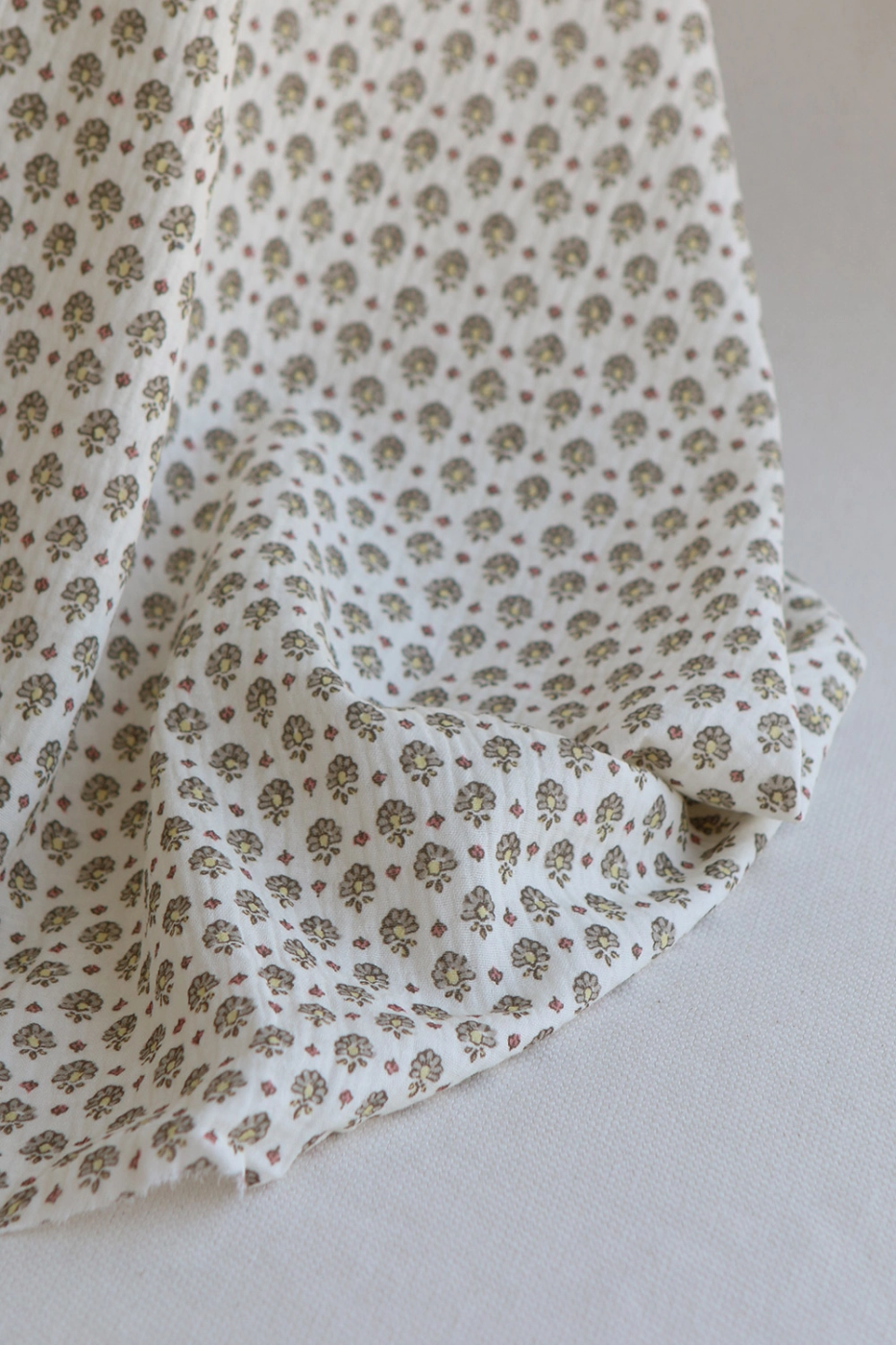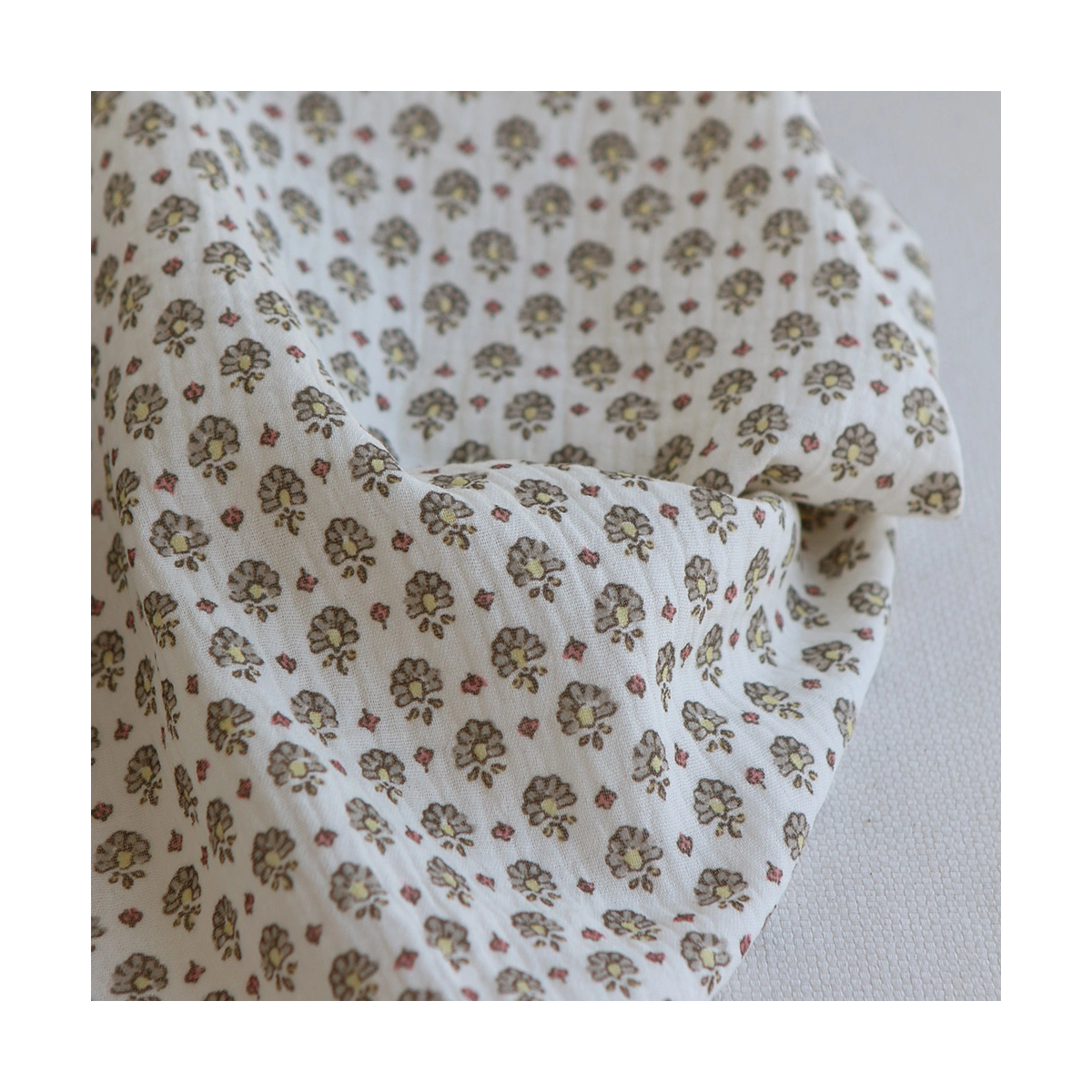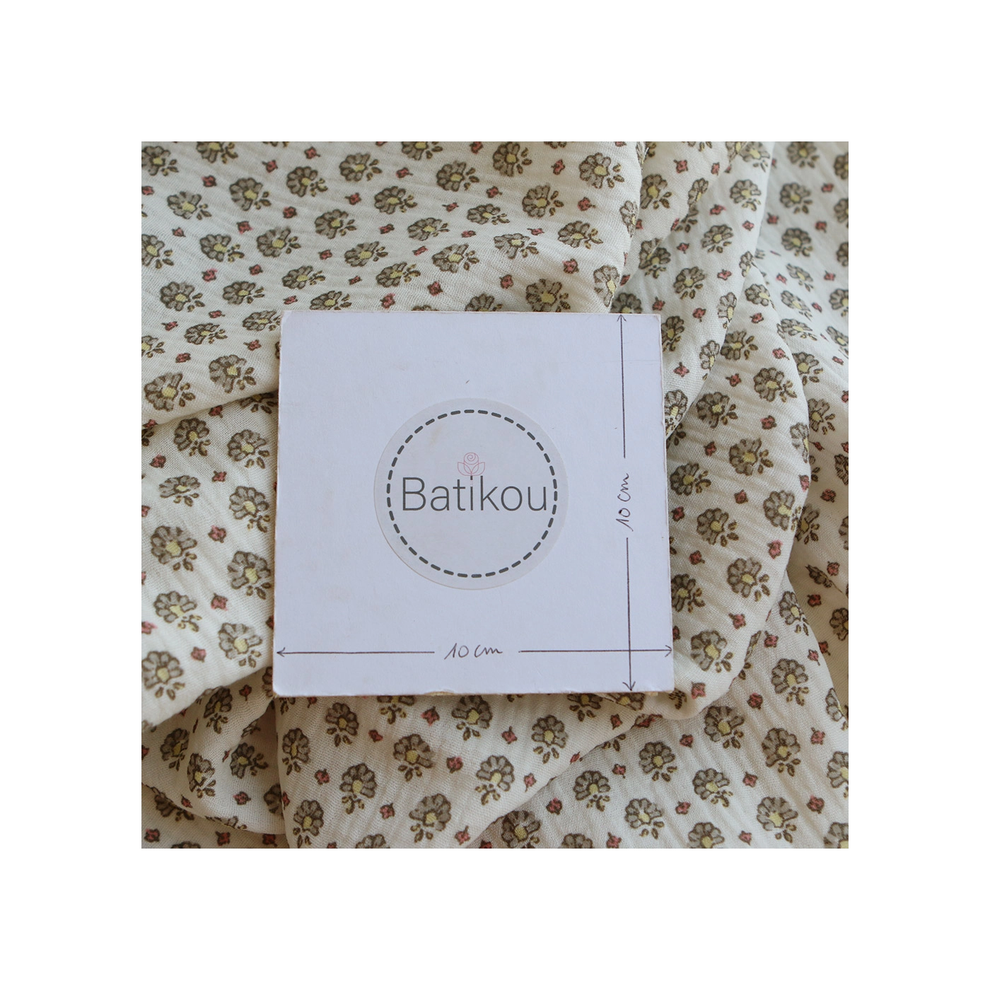 Leela - Double gaze de coton motif fleuri fond blanc cassé