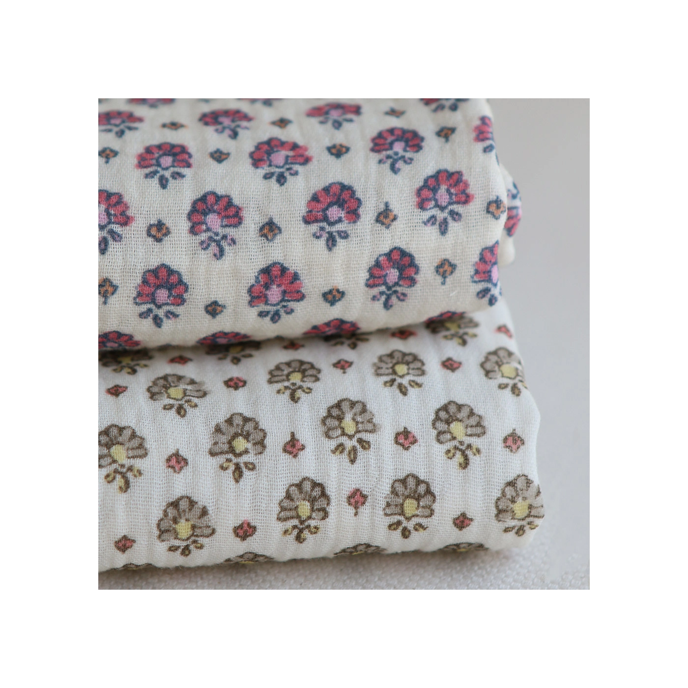 Leela - Double gaze de coton motif fleuri fond écru