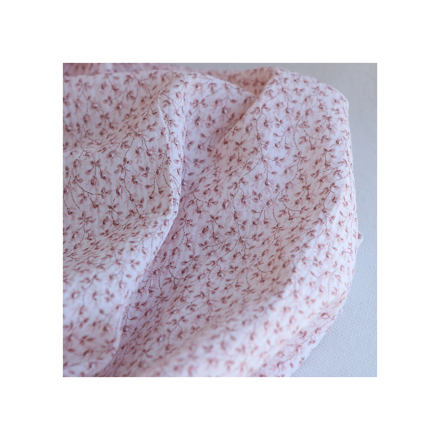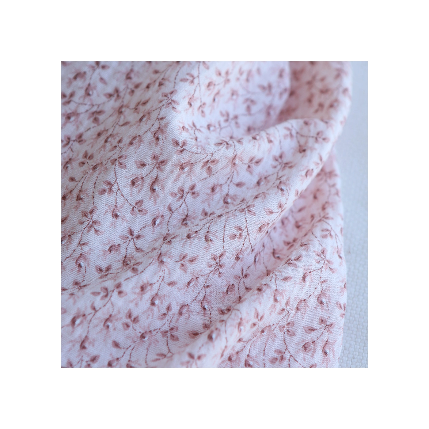 Harper - Double gaze de coton motif fleuri fond rose clair