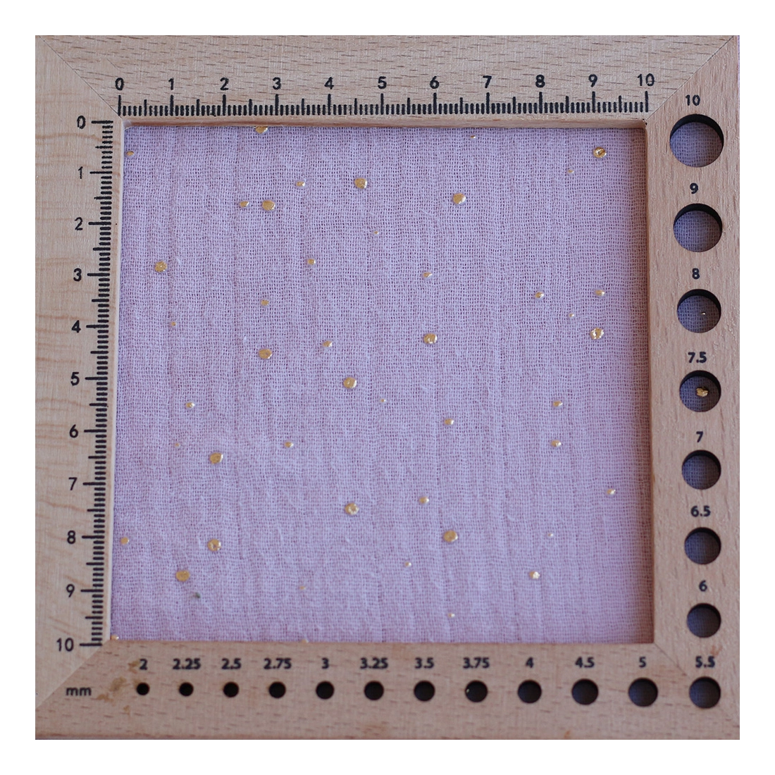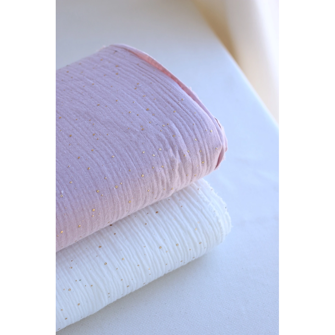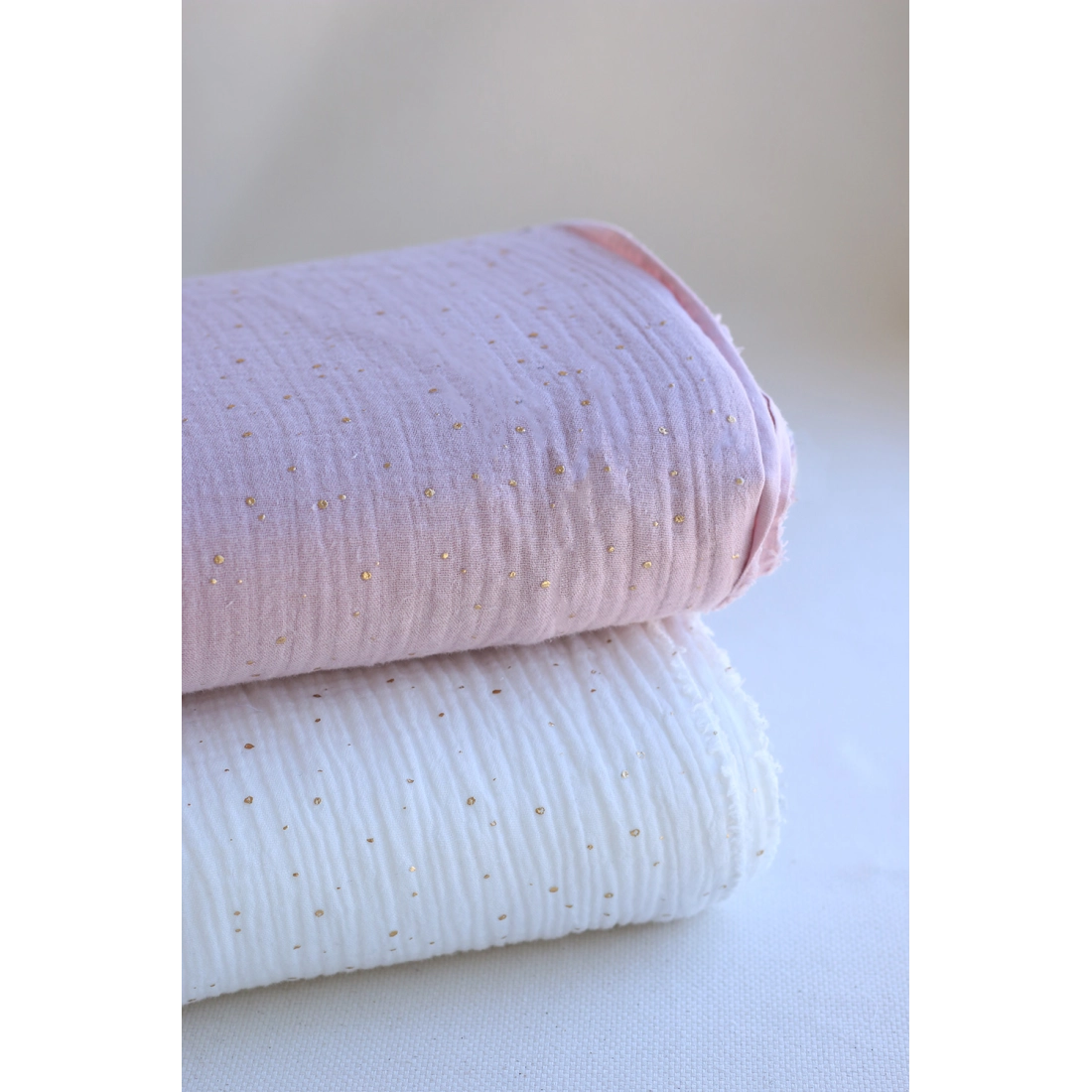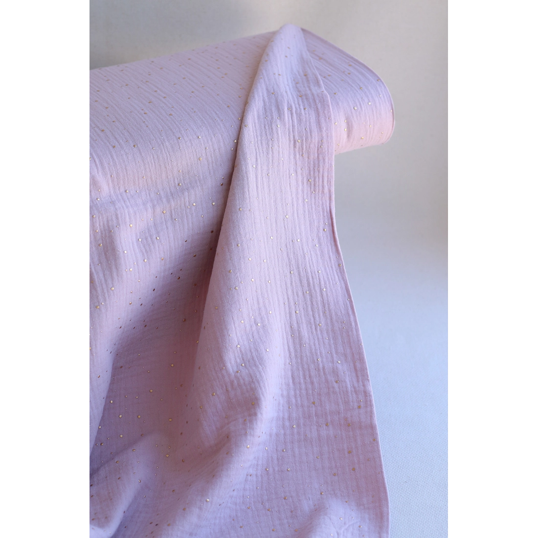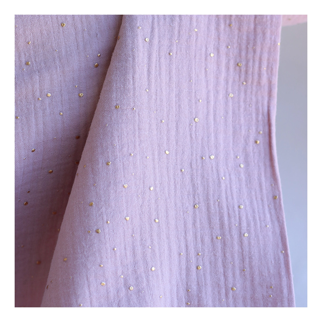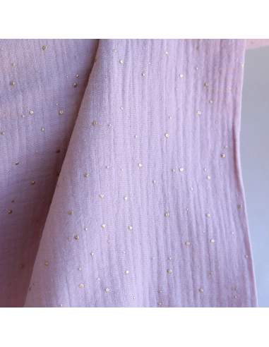 Double gaze de coton pois dorés fond vieux rose