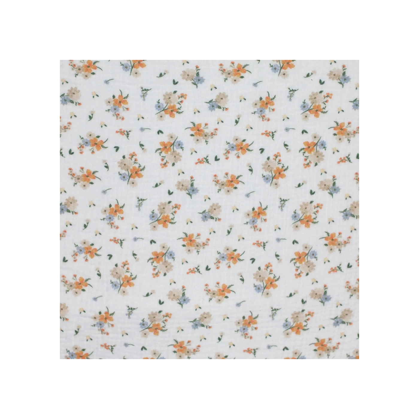 Coloris : Fond blanc lait imprimé fleuri bleu et orange