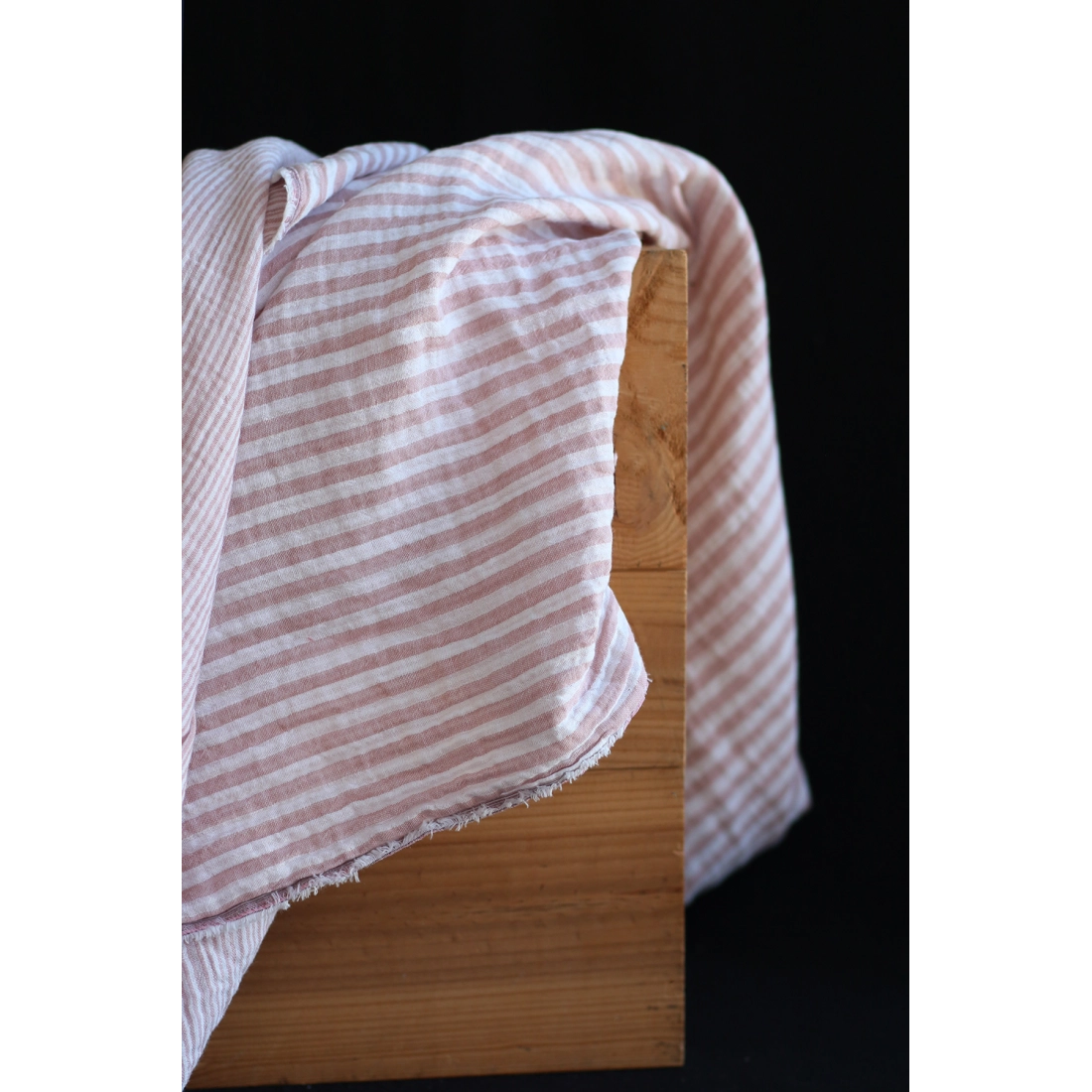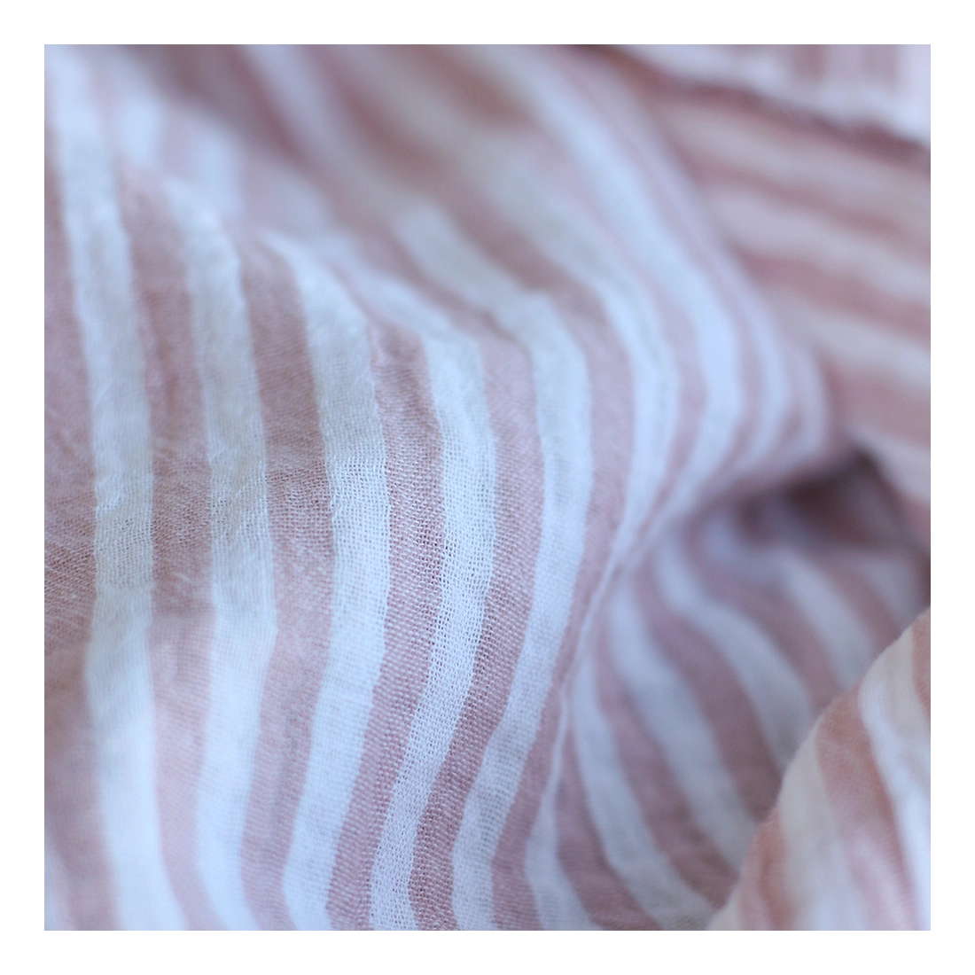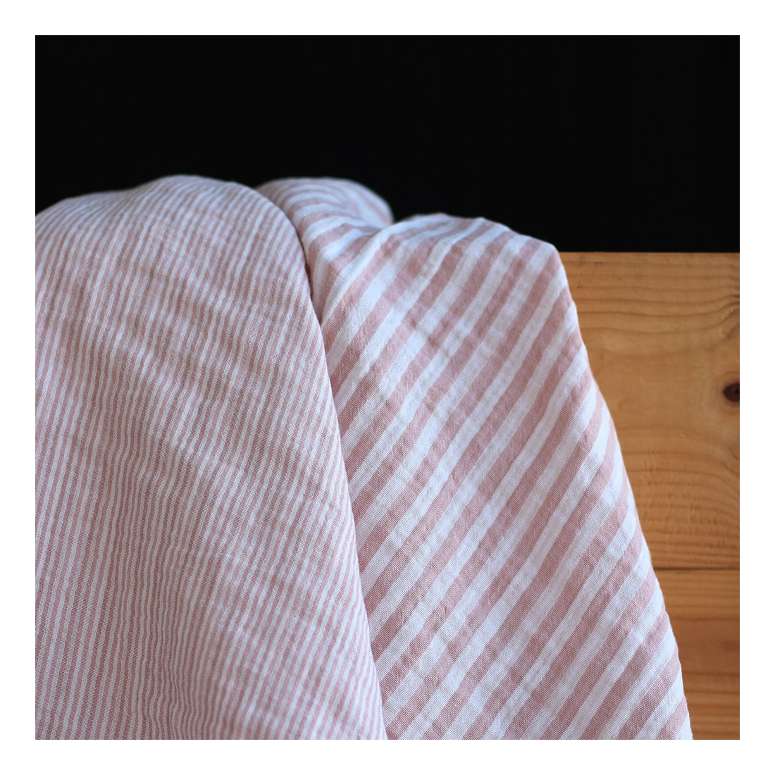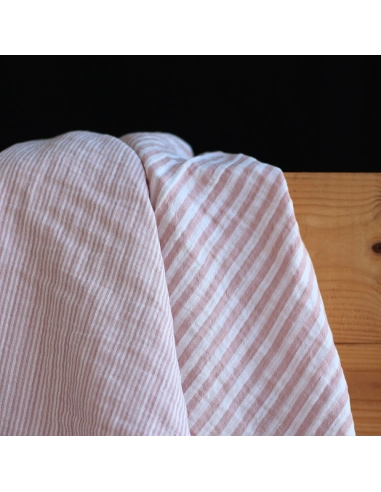 Double gaze de coton réversible rayures vieux rose