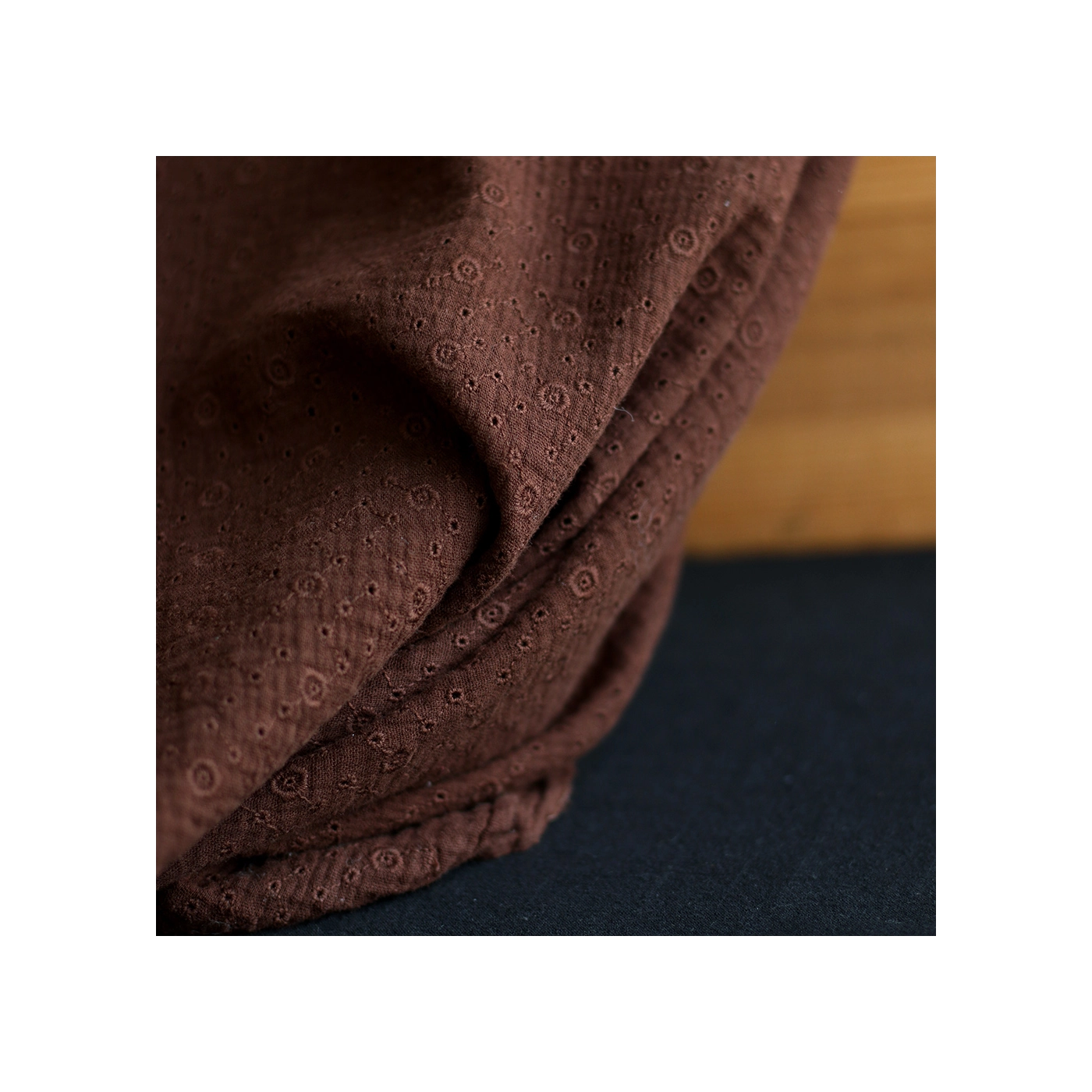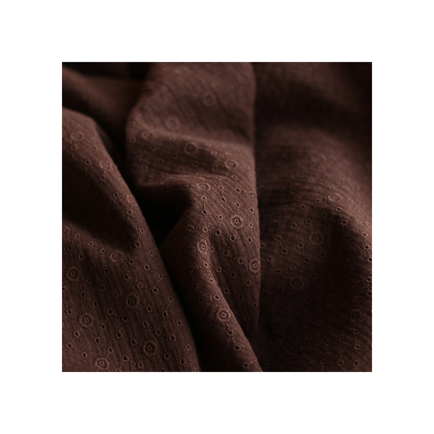 Double gaze de coton Agnes brodée coloris marron