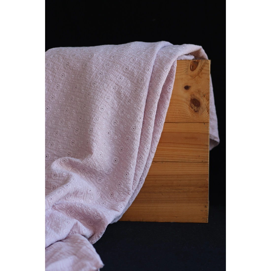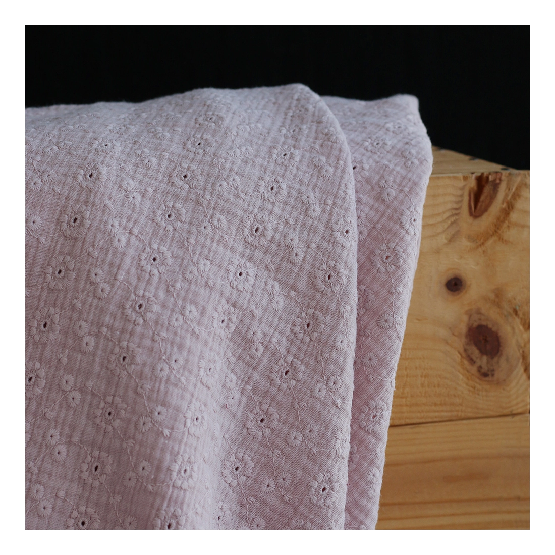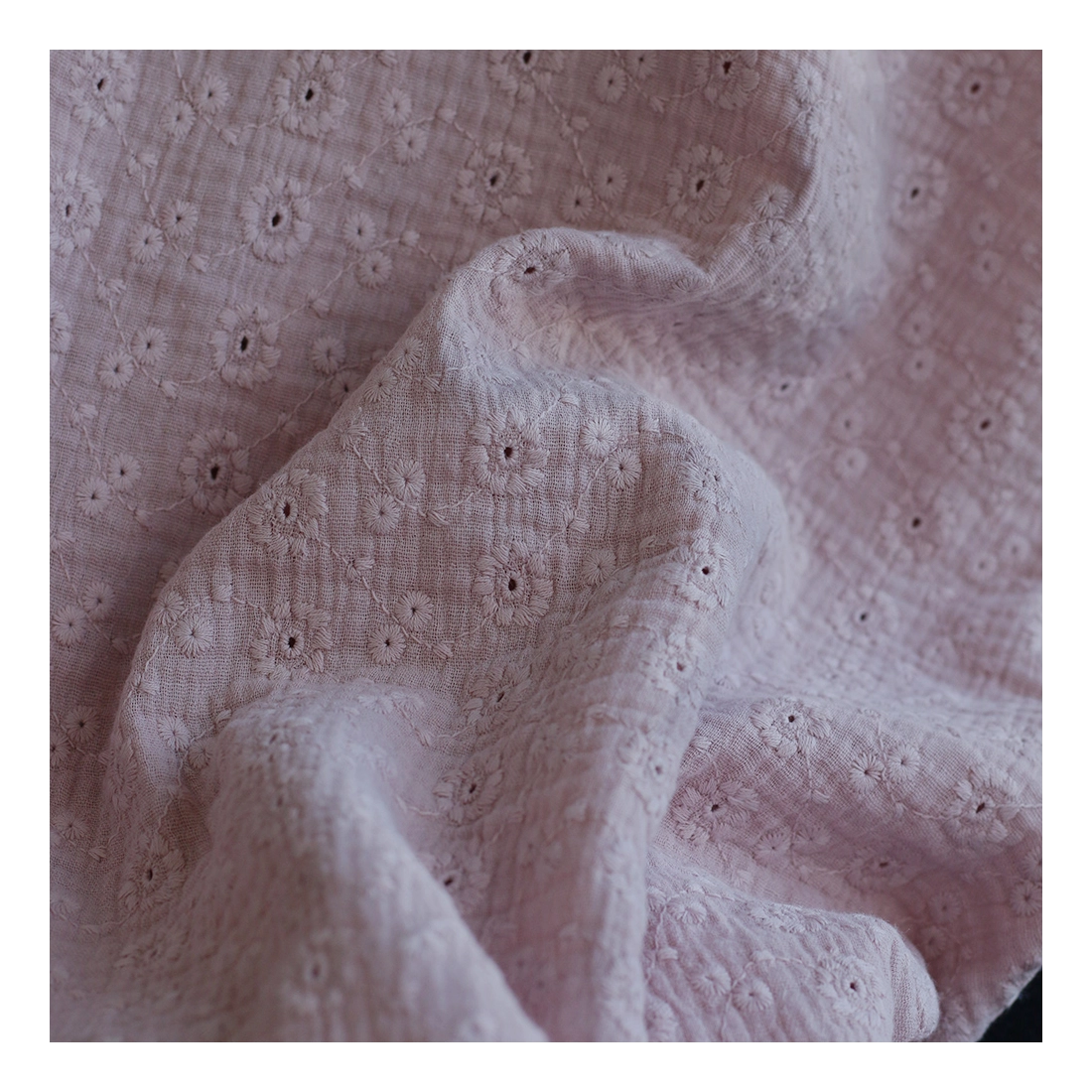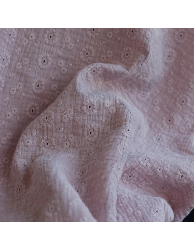 Double gaze de coton Suzy brodée coloris rose pétale