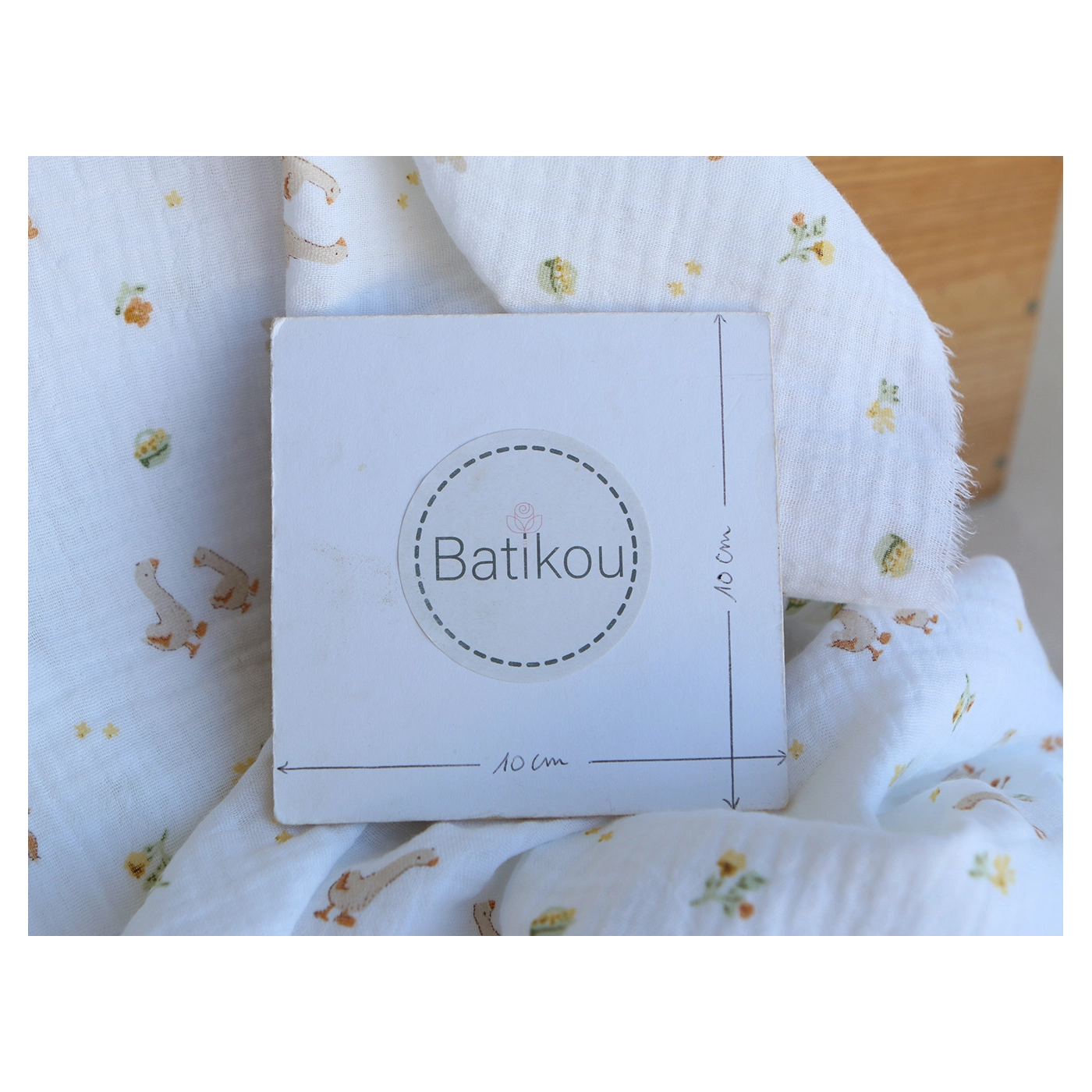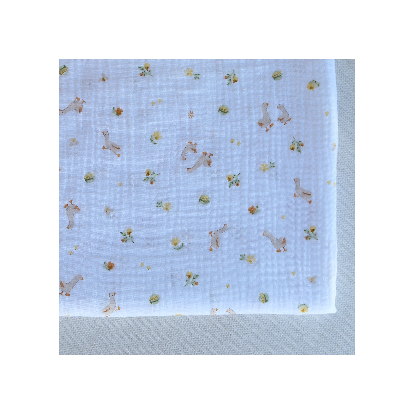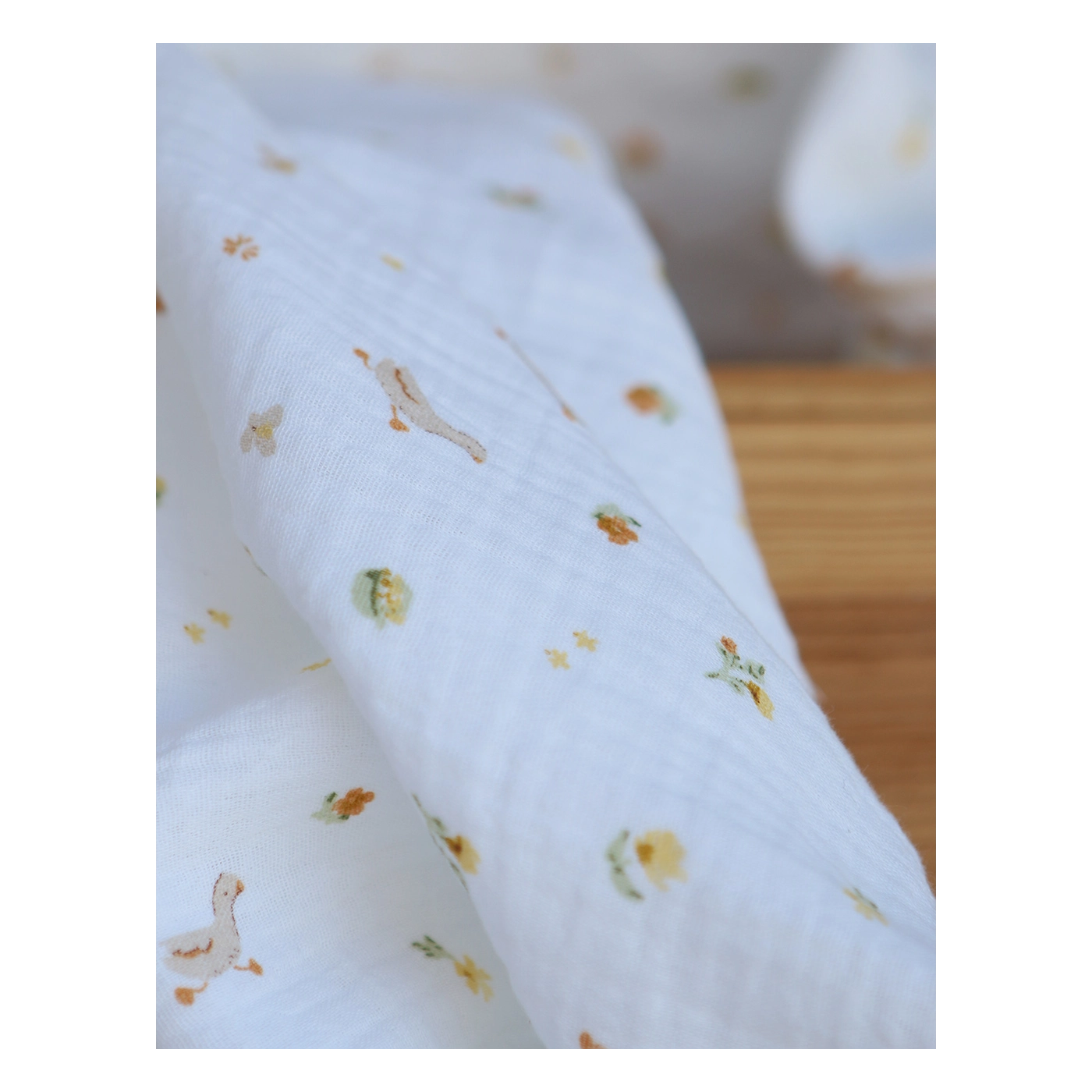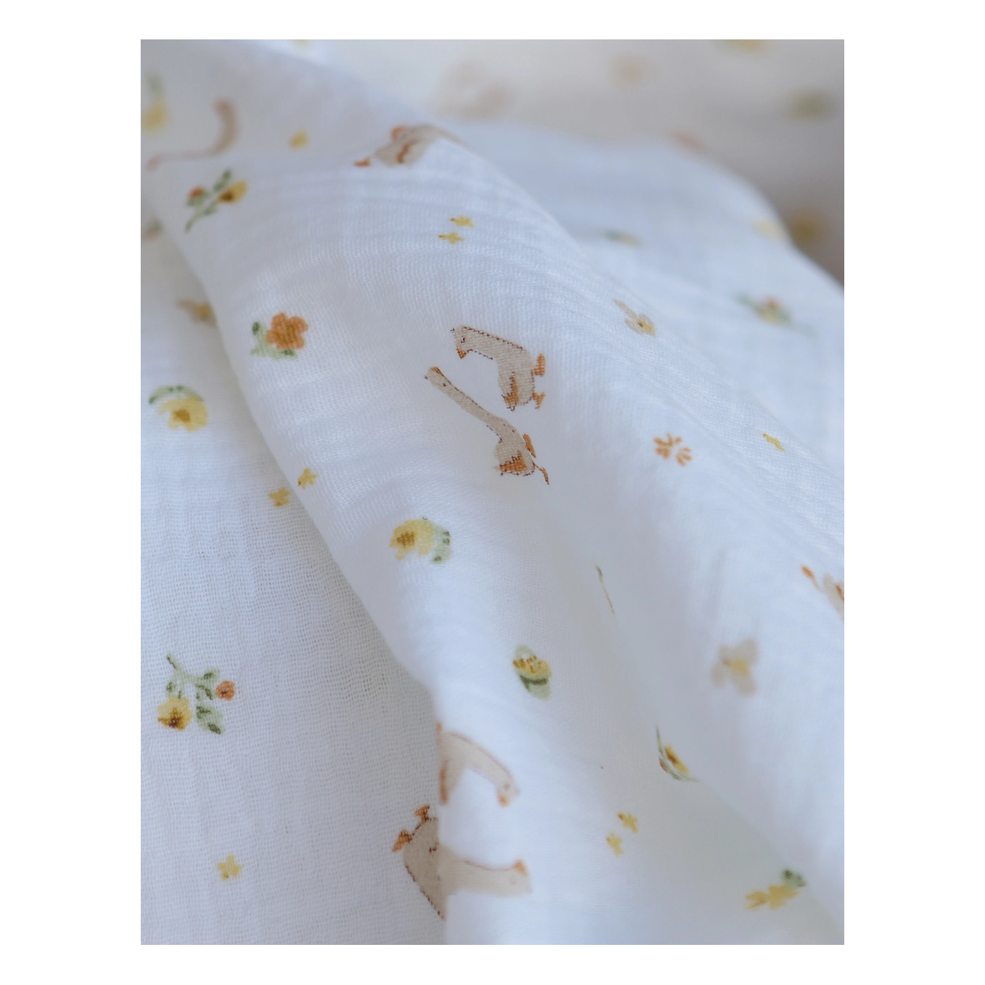 Octave - Double gaze de coton BIO blanc motif petites oies