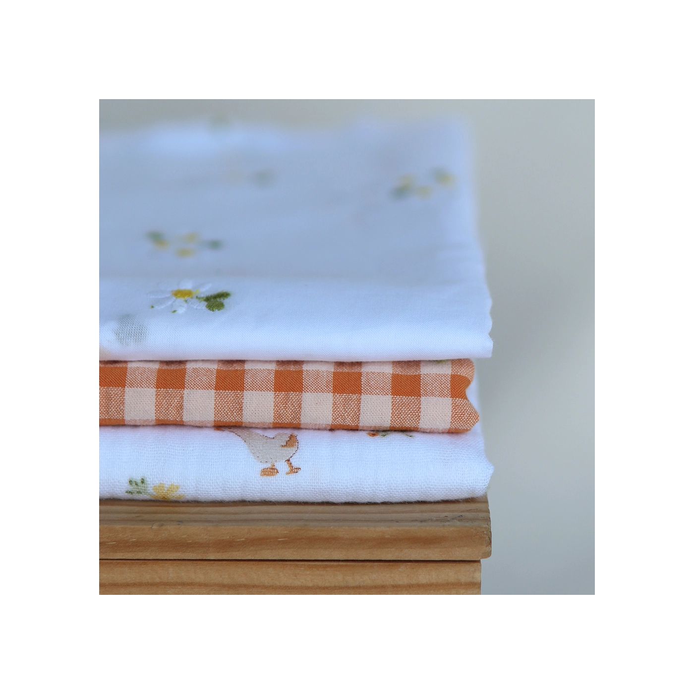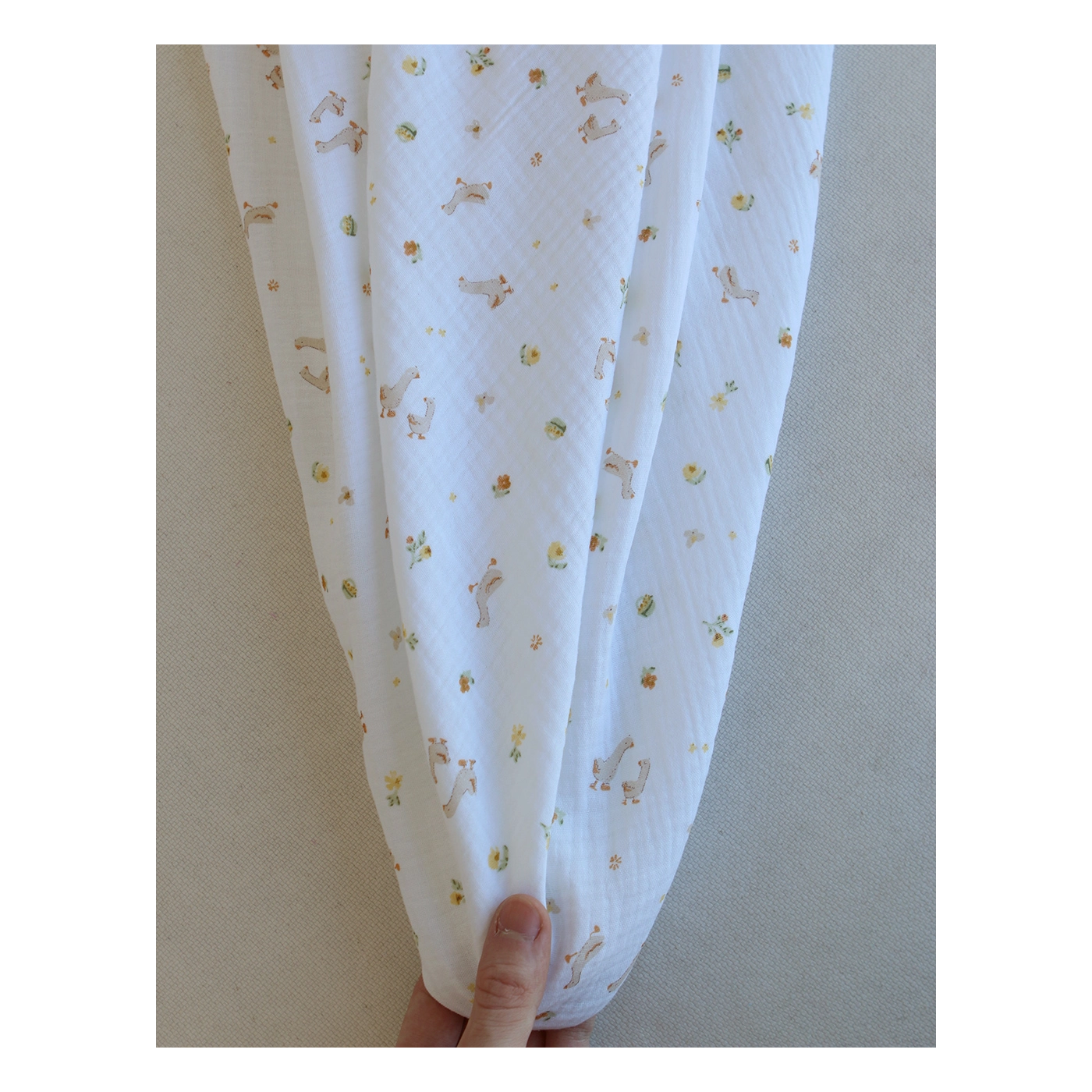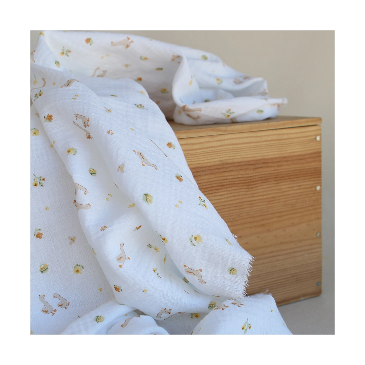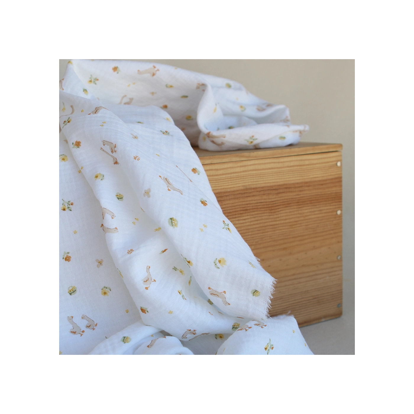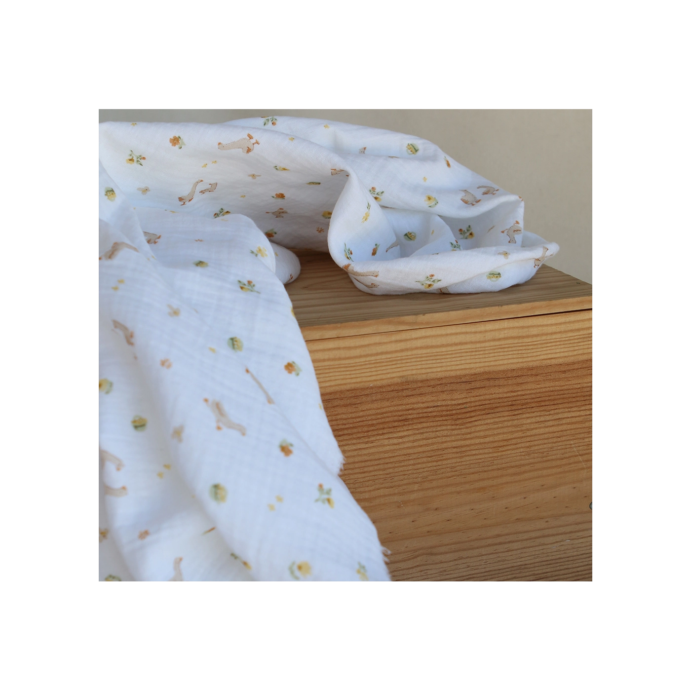 Octave - Double gaze de coton BIO blanc motif petites oies