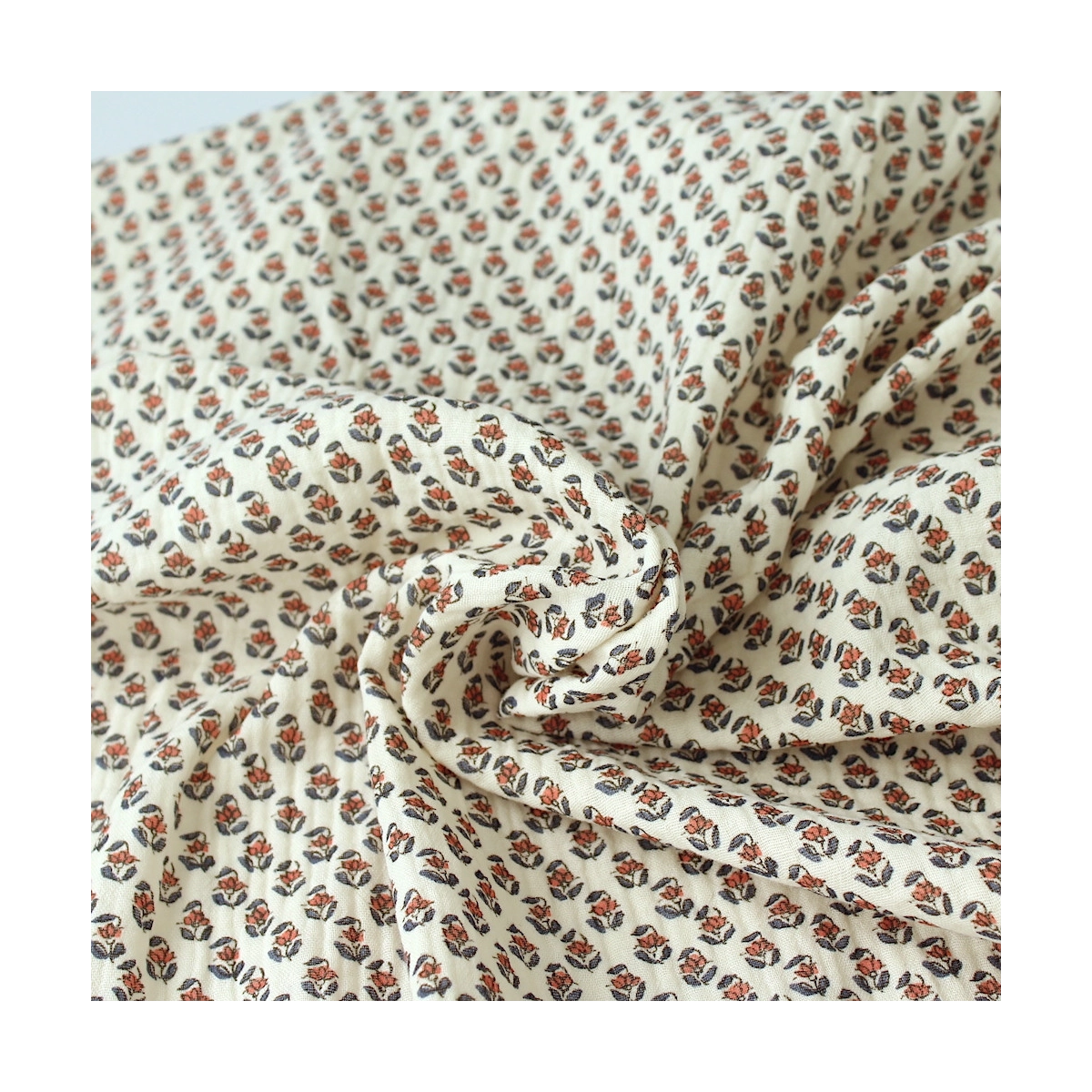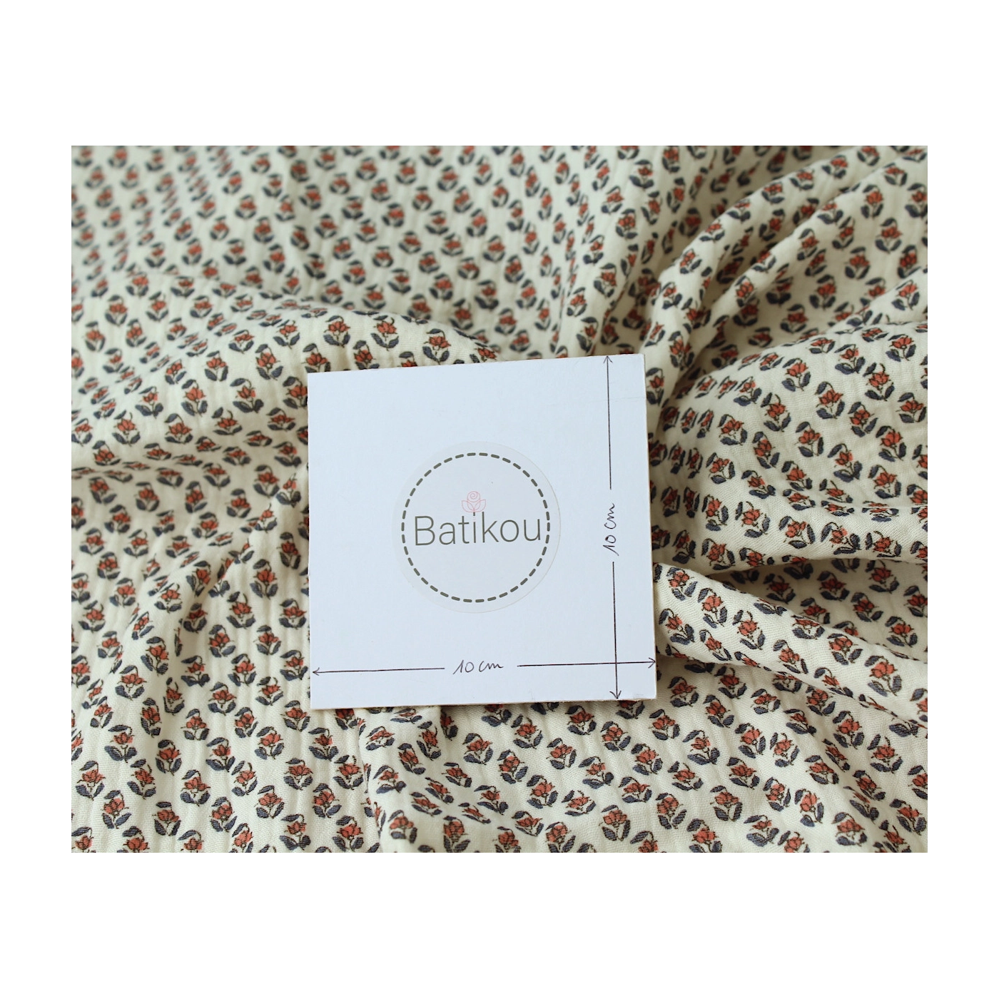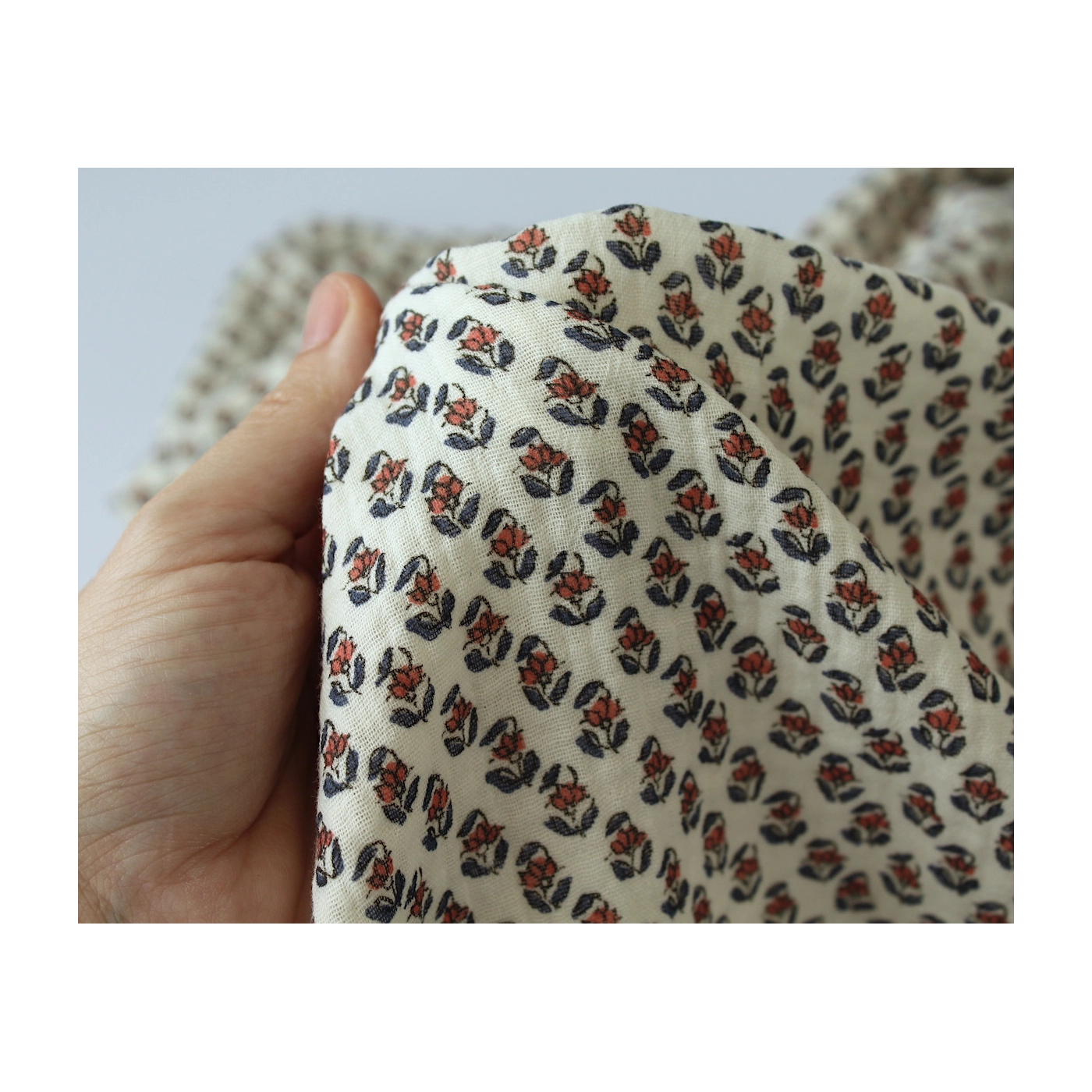 Aria - Double gaze de coton écru à motifs petites fleurs façon hand block