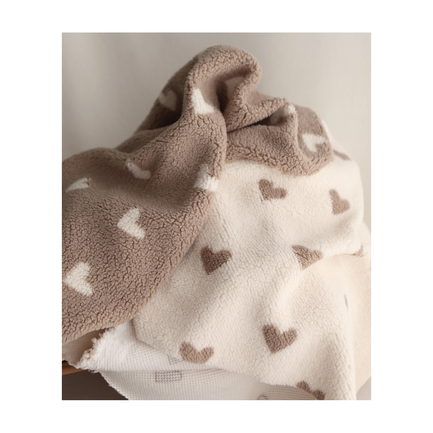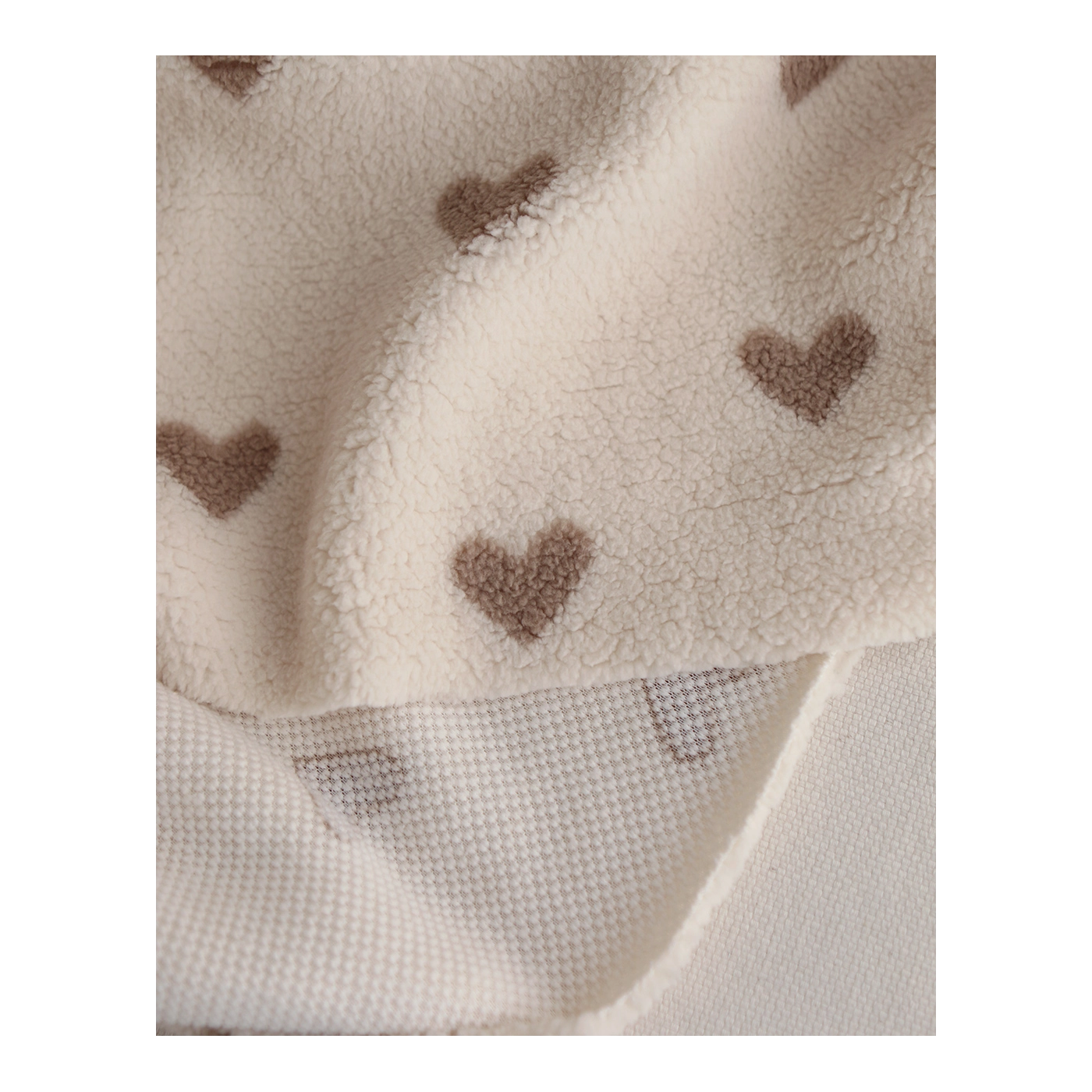 Teddy / moumoute bouclé fond lait motif coeurs